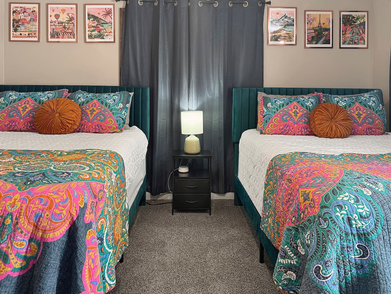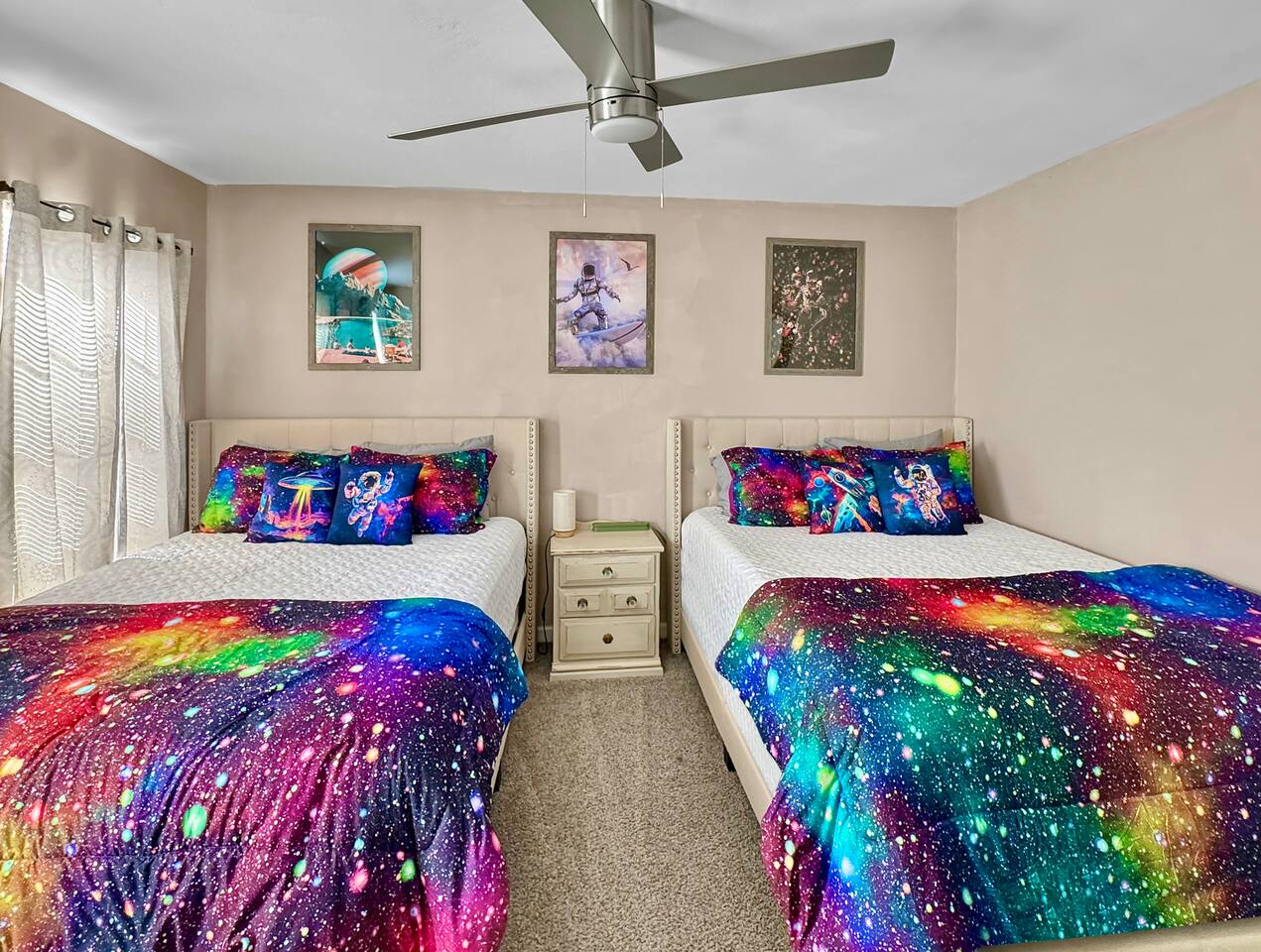 offers 2 Queen Beds, a Crib for little ones, and a Queen