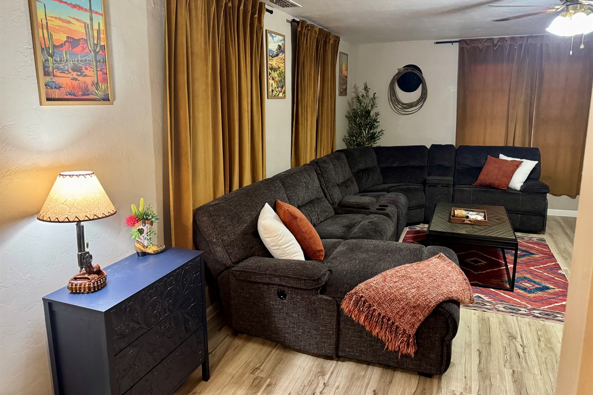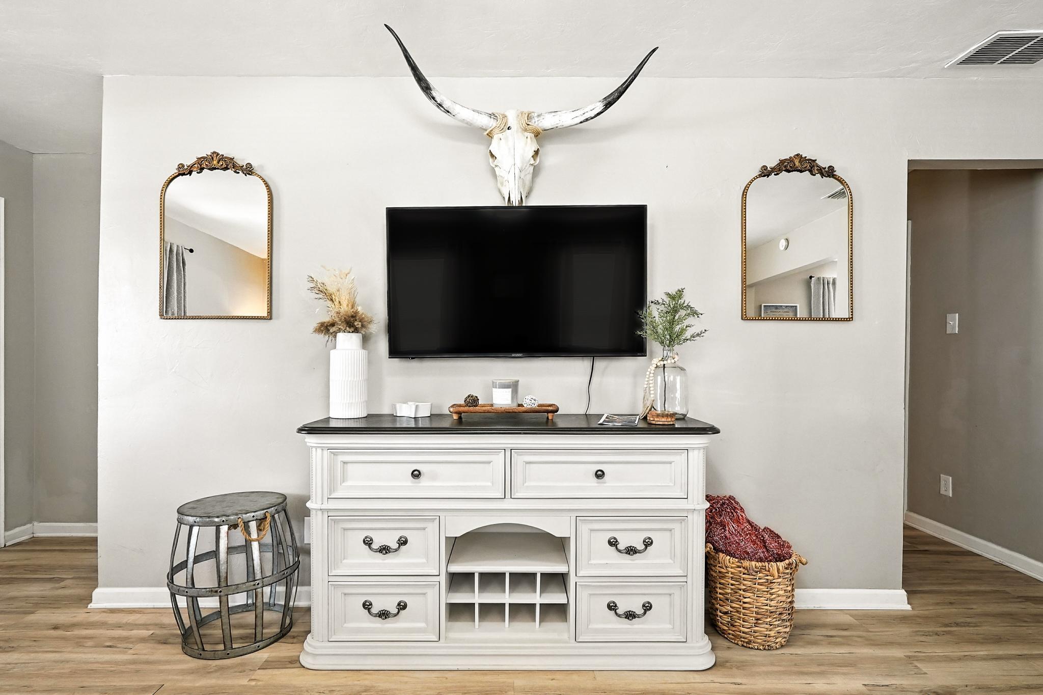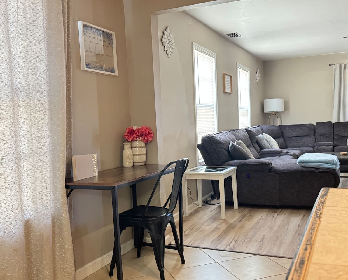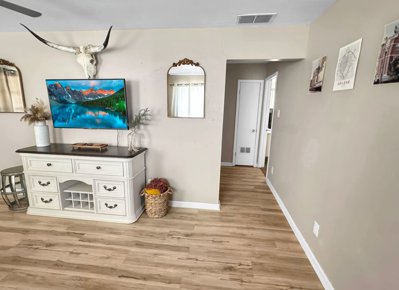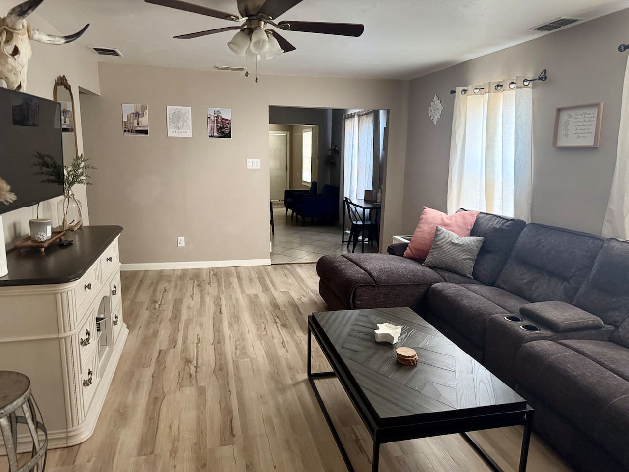 3 Bedrooms • 2 Bathrooms 2 Baths • Sleeps 7-13Spacious 3-bed, 2-bath home in Central Abilene, ideal for families, worker crews, military, and college guests! Just 5 minutes from historic downtown, 10 minutes from Dyess AFB, airport, zoo, and close to local colleges. Family-friendly with a baby bassinet, pack and play, kids’ books, and play area. XL power reclining sectional, fully stocked kitchen, toiletries, and a large fenced yard. Pet-friendly with ample space for all. Enjoy a blend of homey comfort and convenience. Book your stay today!
