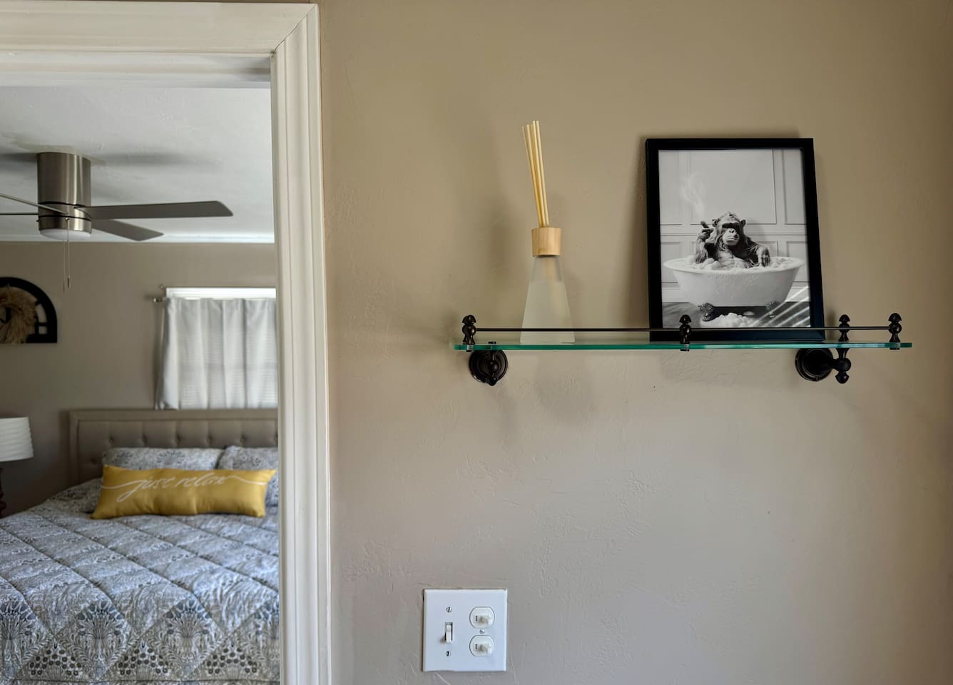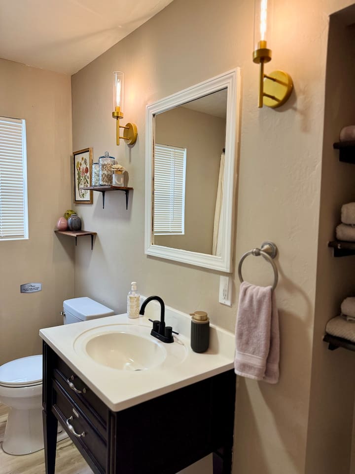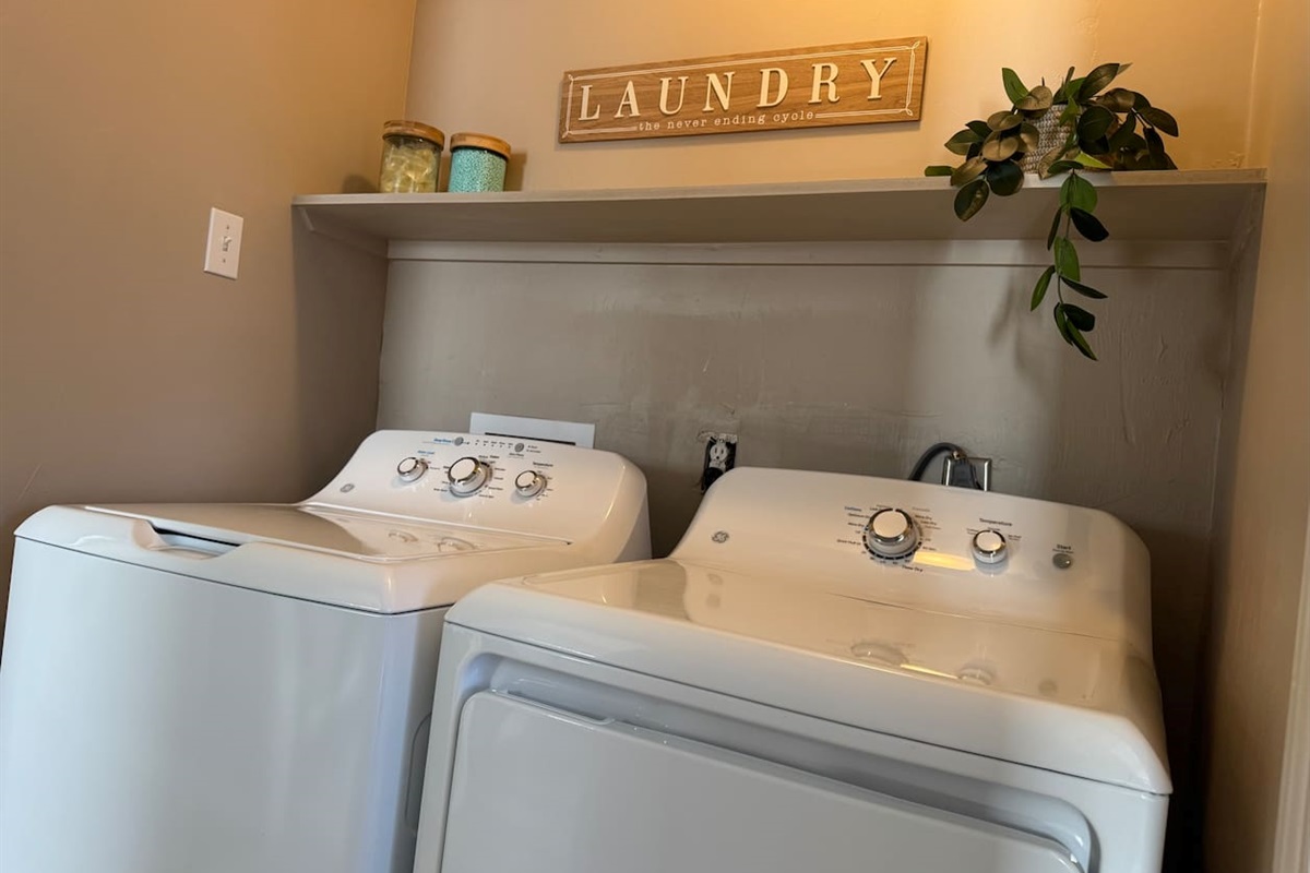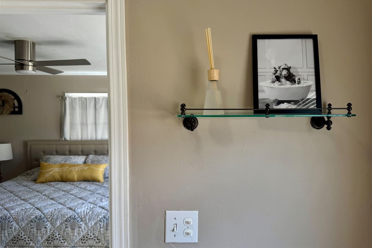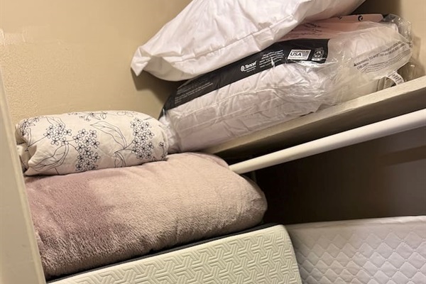 Enjoy the provided soap, soft towels, shampoo, essentials, and a hair