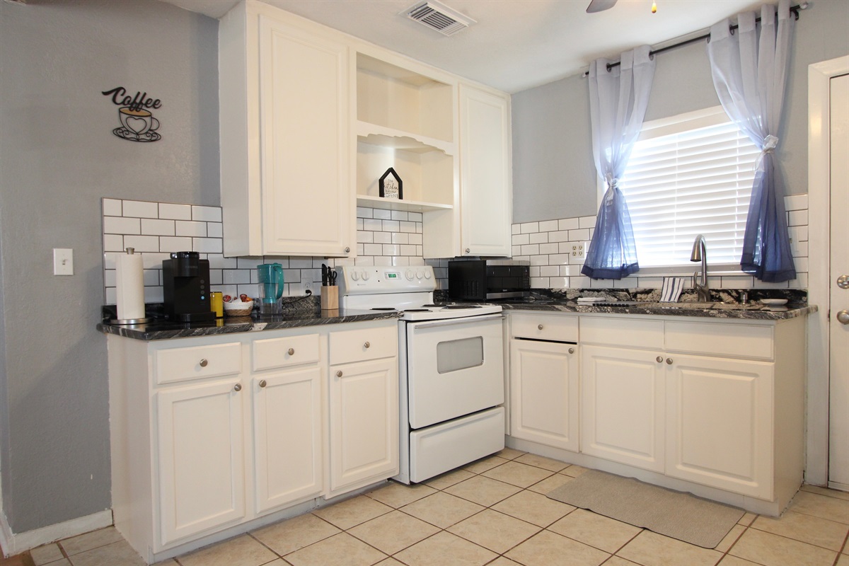 The kitchen is fully equipped for everyday meals or extended stays.