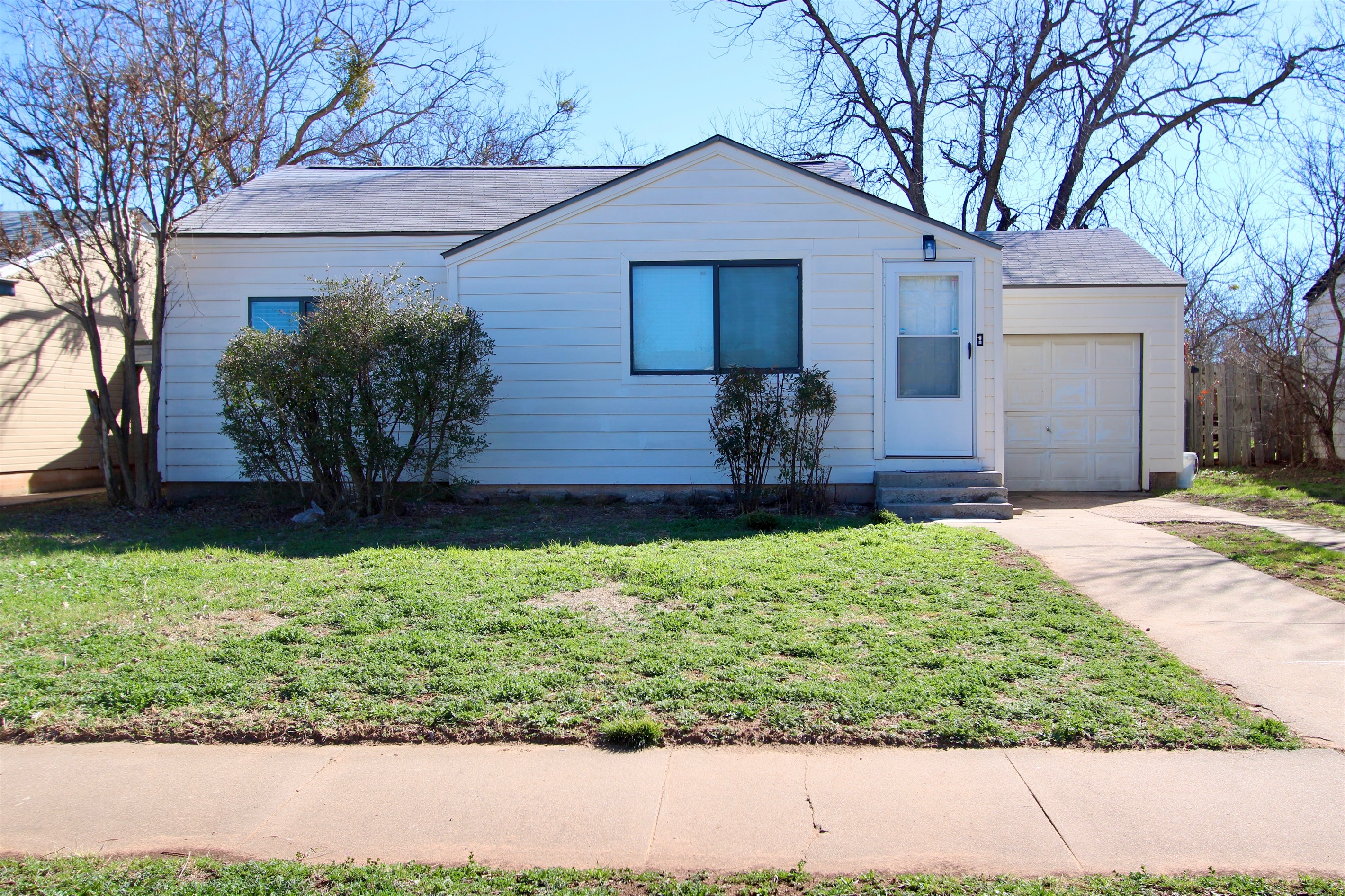 The property features a private driveway and attached garage, plus a front yard that gives the home classic neighborhood charm.