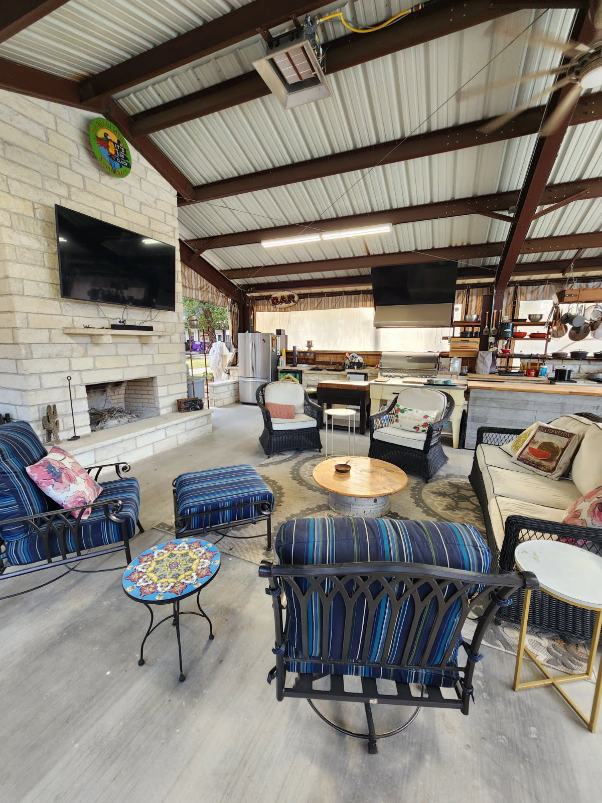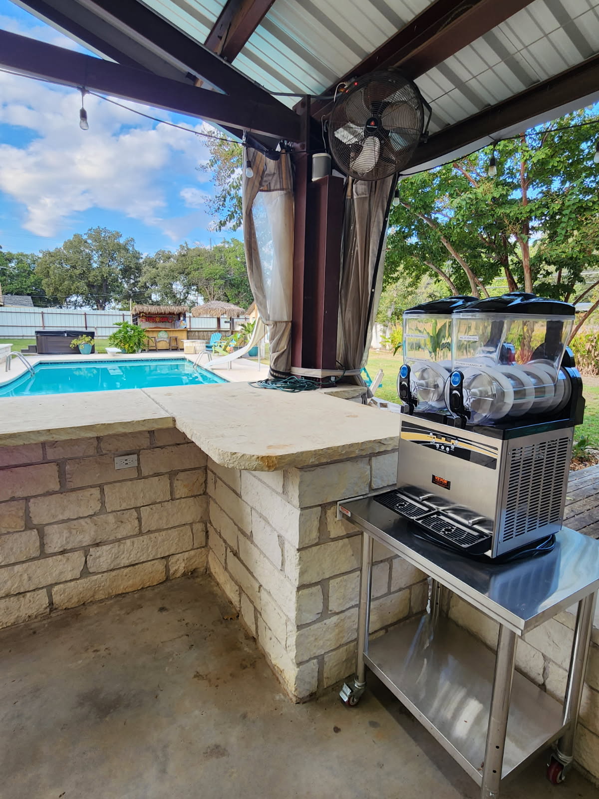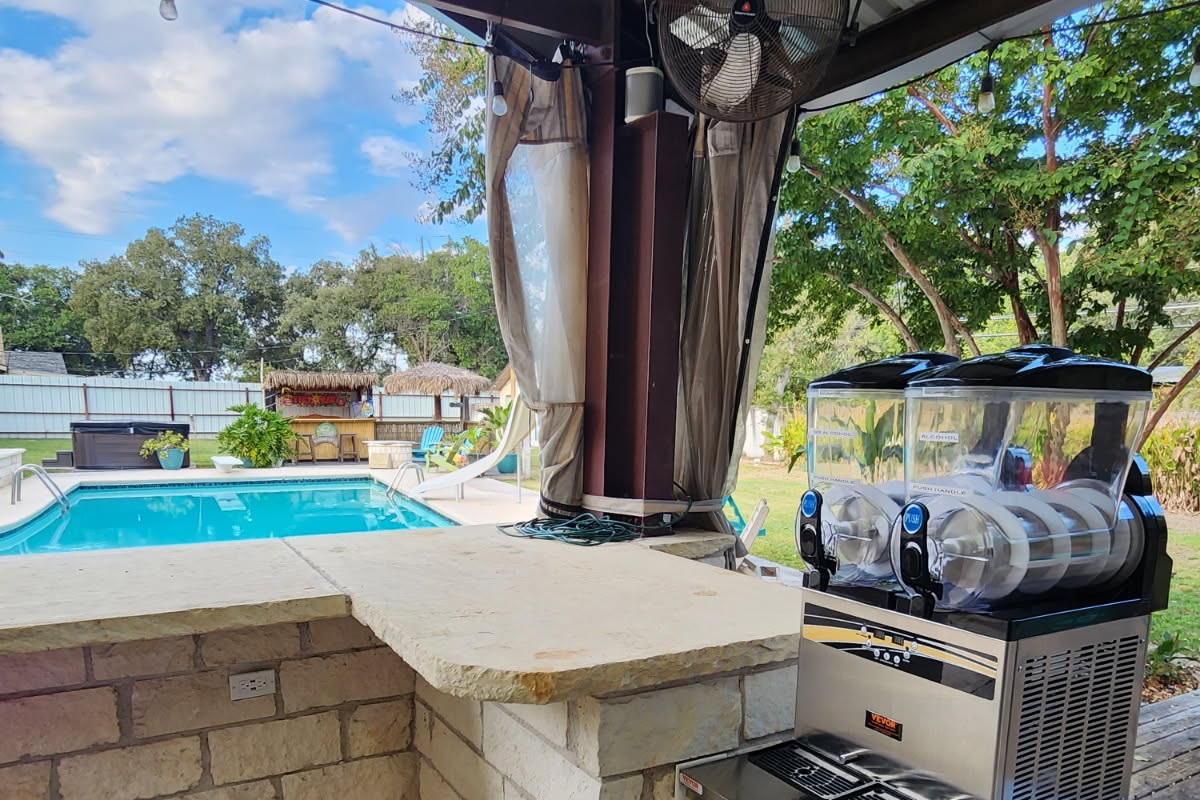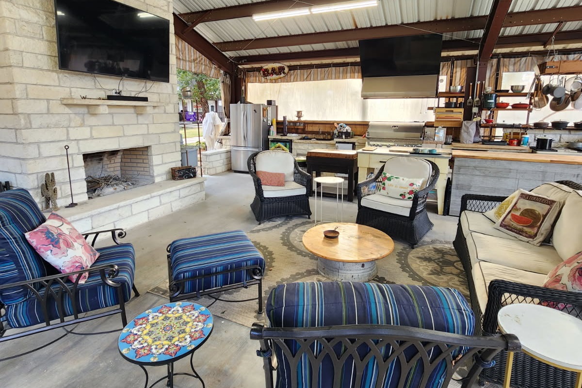Featured Add-On Amenities: Heated Pool! - $500 for up to 4-nights; $150 additional nights ***24-hours notice required Cigar and Bourbon Room! - $250 Includes: **16oz High End Bourbon (ie Buffalo Trace, Weller, EH Taylor, Eagle Rare, Blanton's, and more!) **6 Cigars $300 total value! Margarita Machine! - $200 **Includes 2 mixes **alcohol not included Additional Amenities Climate Control: Central heating and air conditioning throughout Entertainment: Multiple flat-screen TVs Massage Chair: Premium zero-gravity massage chair for ultimate relaxation Wood-Burning Fireplace: For authentic warmth and ambiance Private Cigar Room: Climate-controlled space for cigar enjoyment WiFi: High-speed internet access Parking: Ample on-site parking Linens & Towels: All linens and bath towels provided Outdoor Lighting: Extensive string lighting throughout courtyard Fire Pit: For s'mores and evening gatherings Glassware: Proper whiskey glassware for tastings