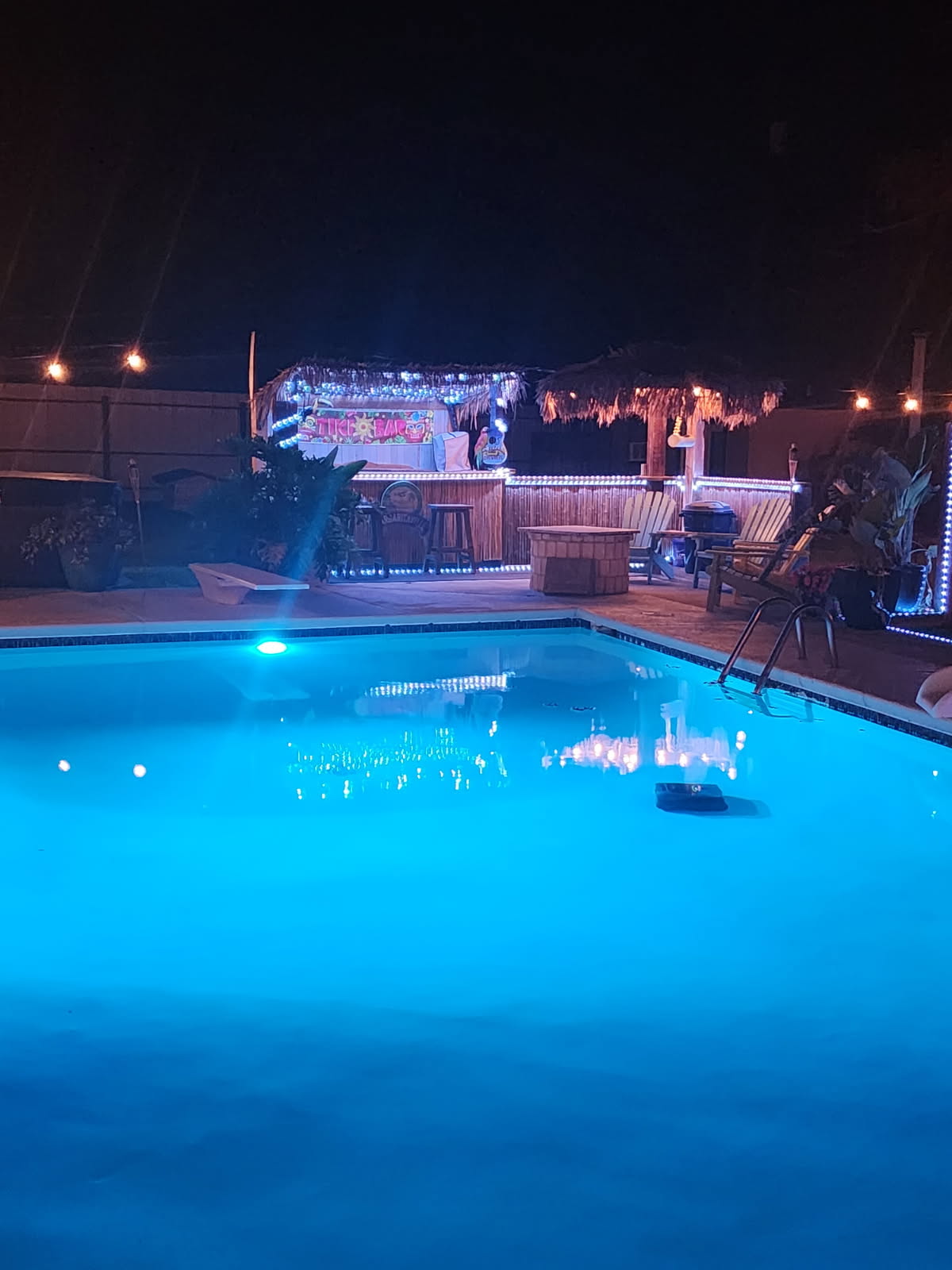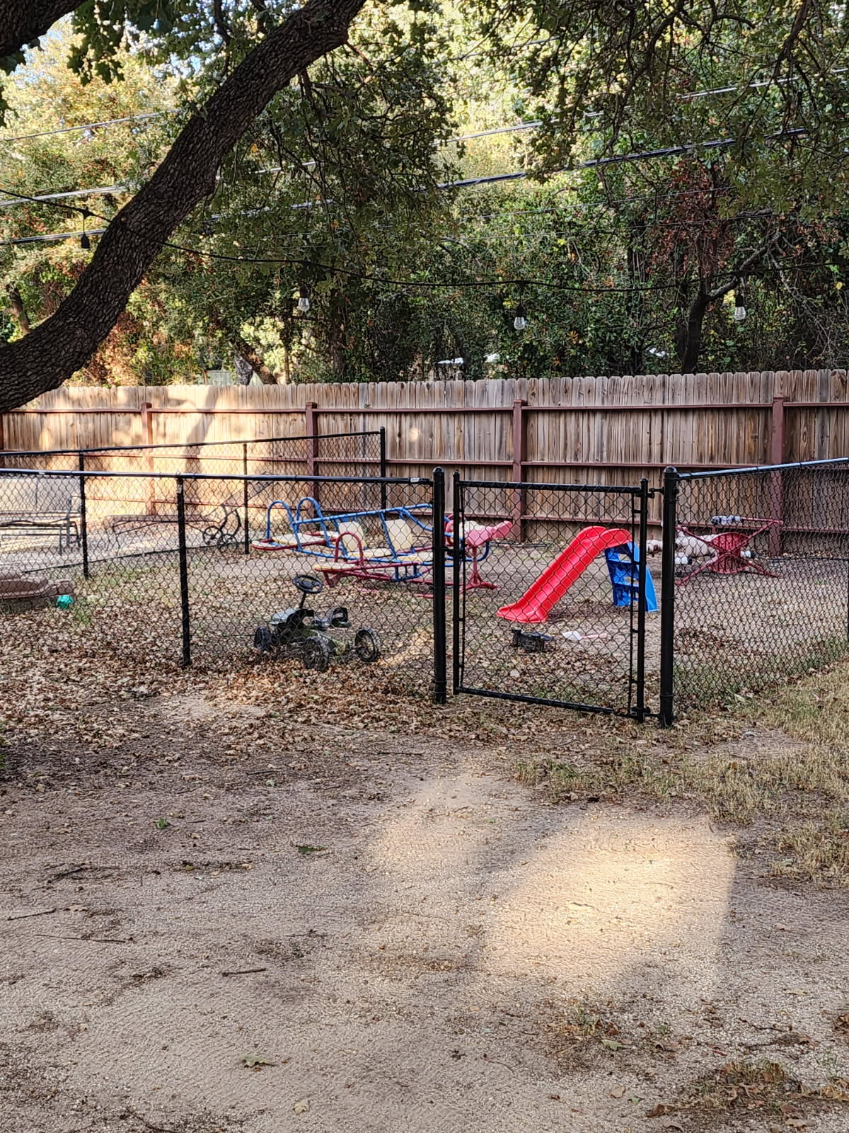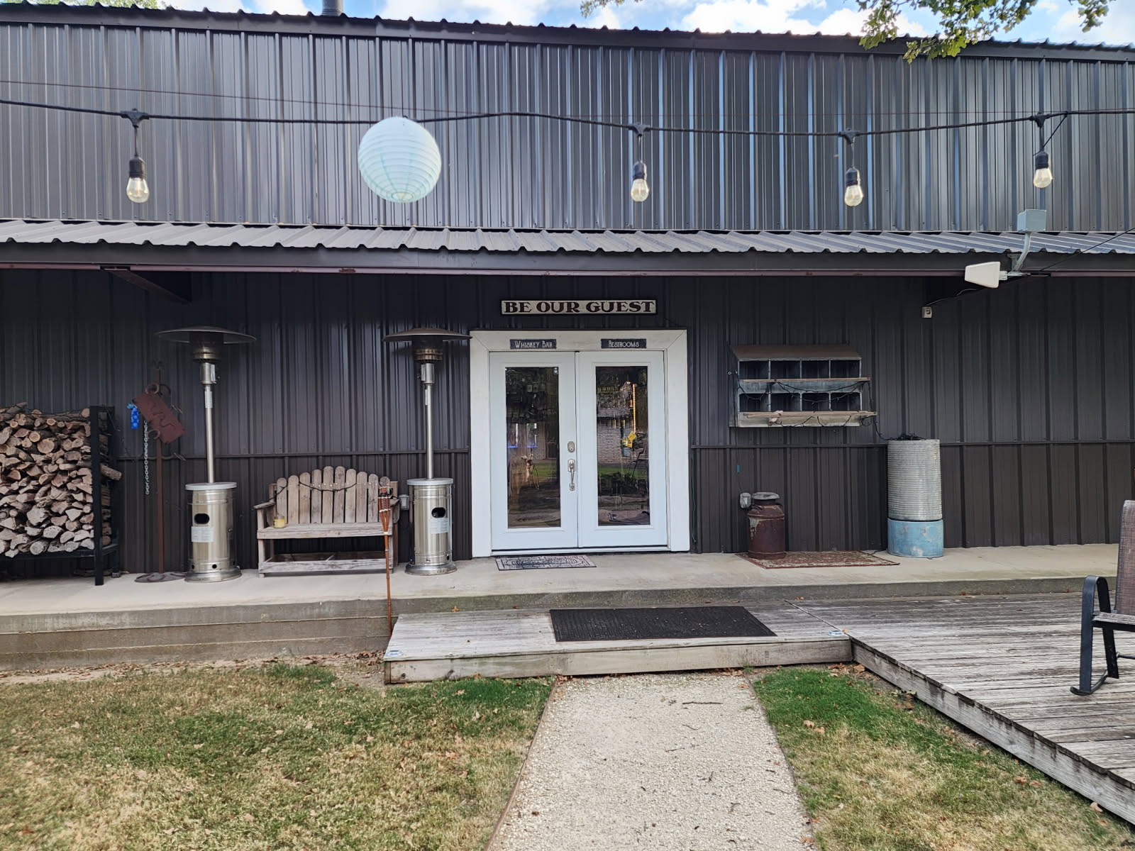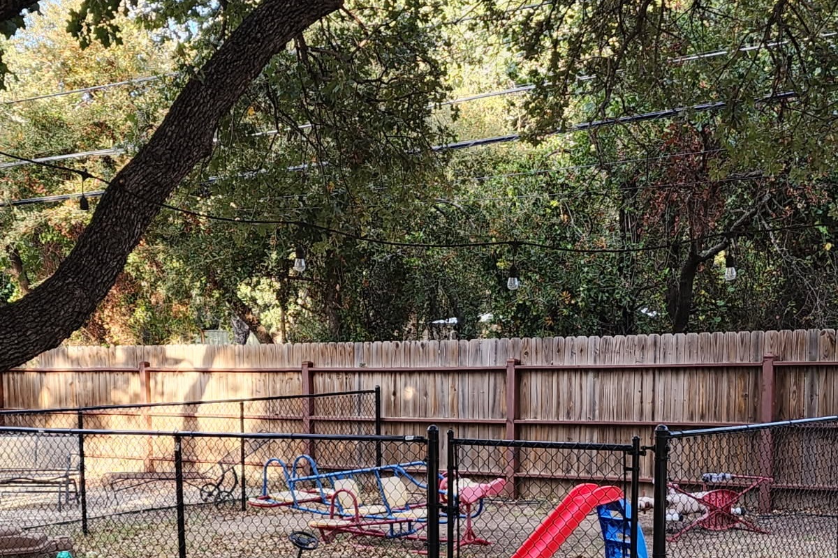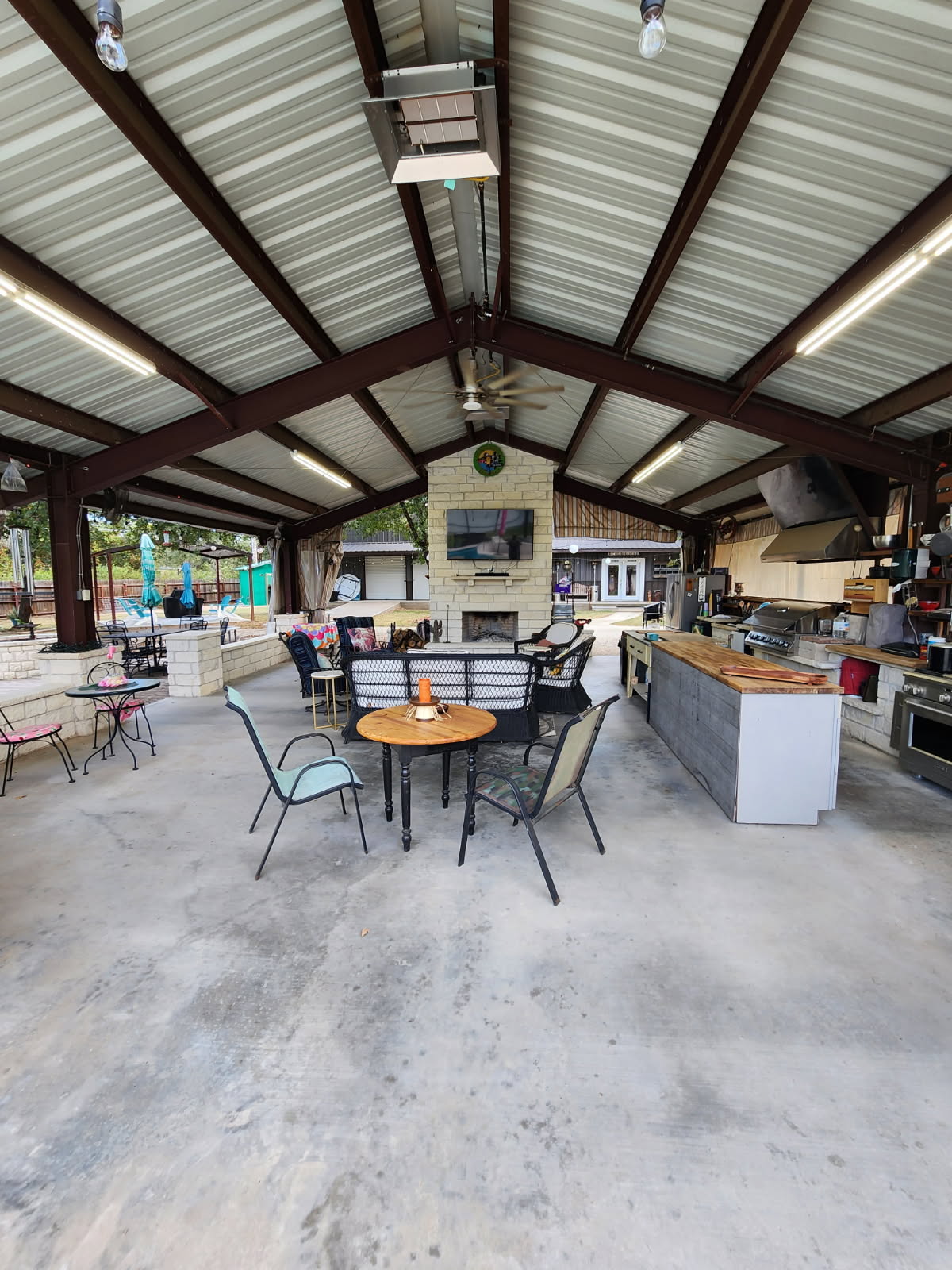 Outdoor Lighting: Extensive string lighting throughout courtyard