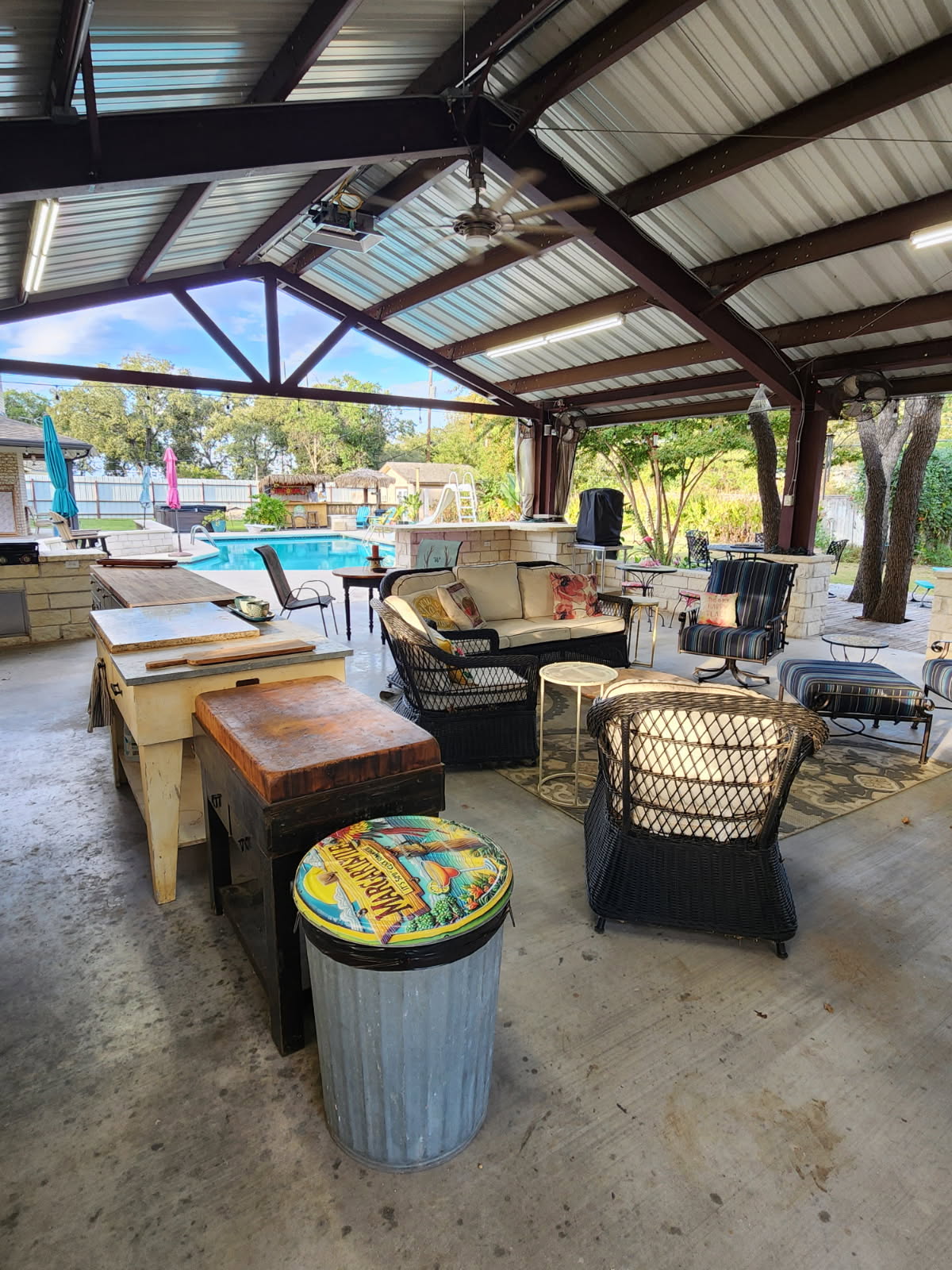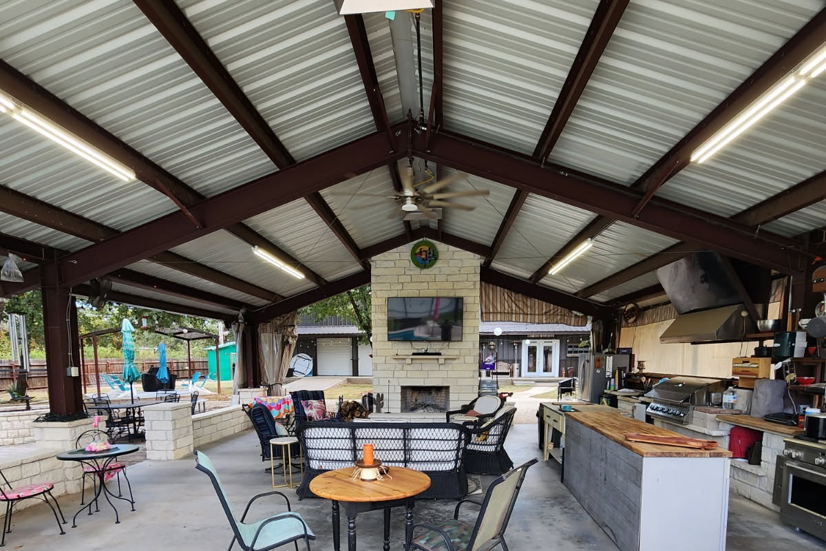 Covered pavilion with outdoor dining table