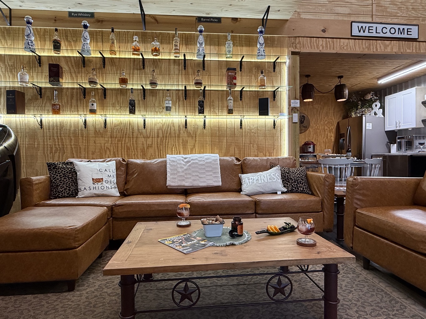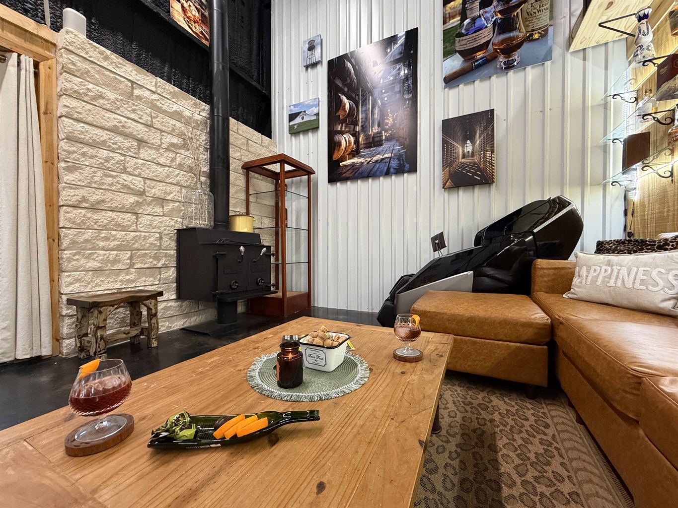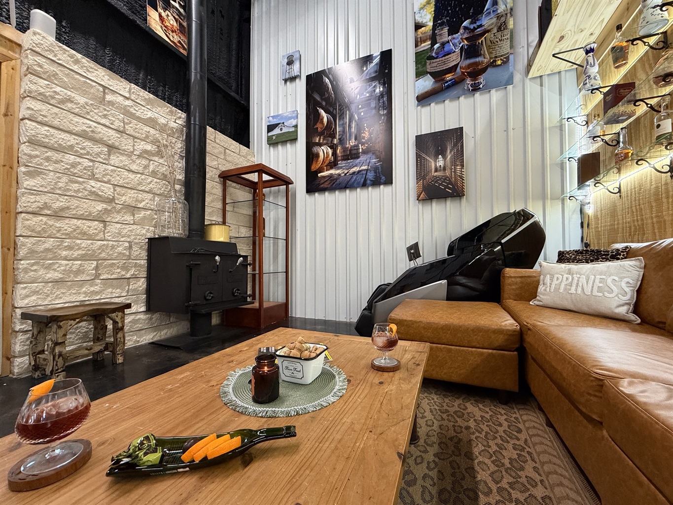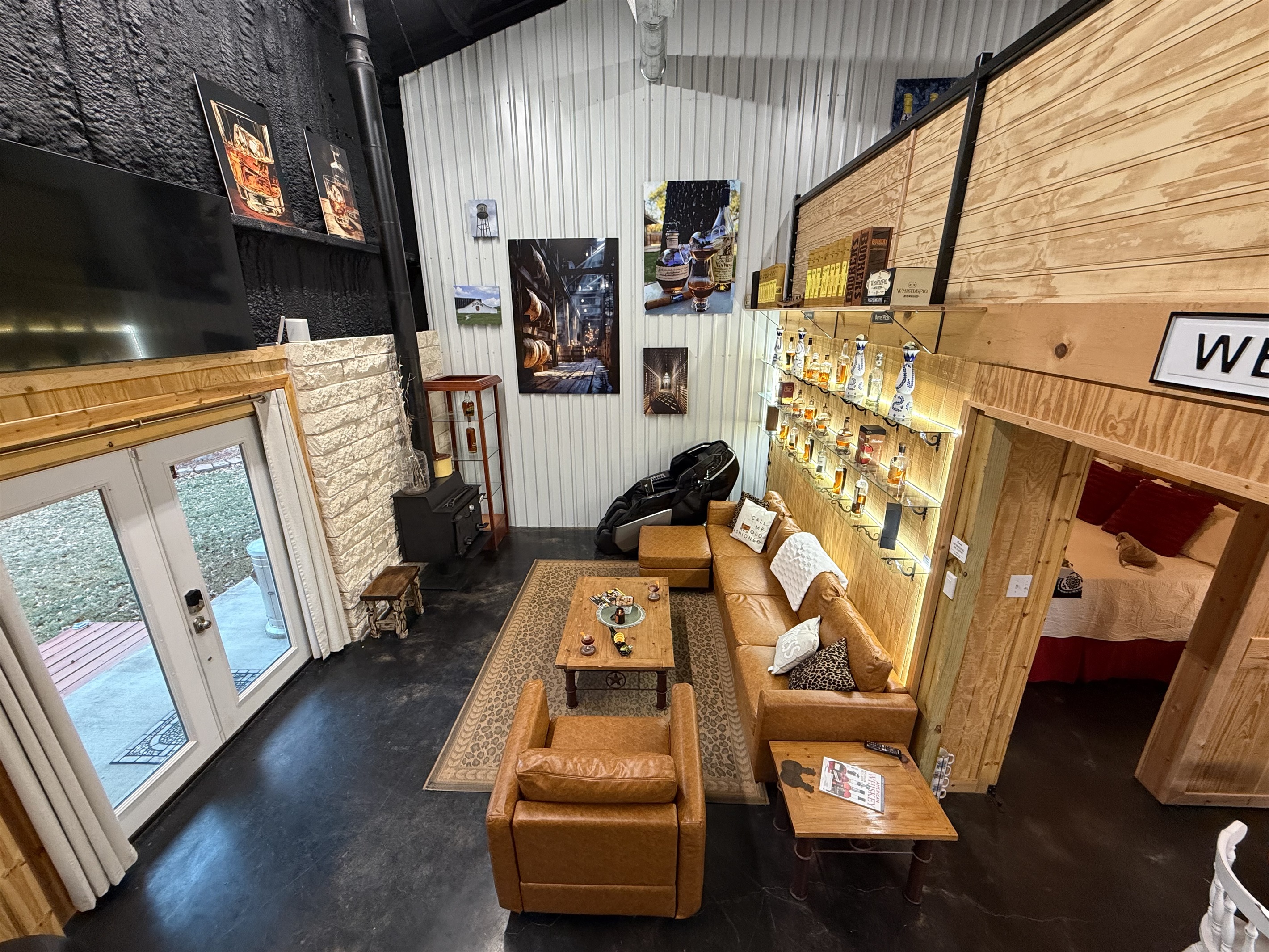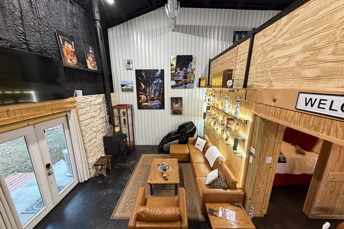 2 Bedrooms • 1 Bathroom 1 Bath • Sleeps 3-6Welcome to Chateau Bourbon - an extraordinary escape for bourbon enthusiasts and those seeking a truly unique Texas getaway! This one-of-a-kind property combines luxurious accommodations with an impressive whiskey lounge experience, complete with a stunning backlit bourbon display, private cigar room, massage chair, and outdoor relaxation spaces. Perfect for couples, small groups, or anyone looking for an elevated, experiential stay.