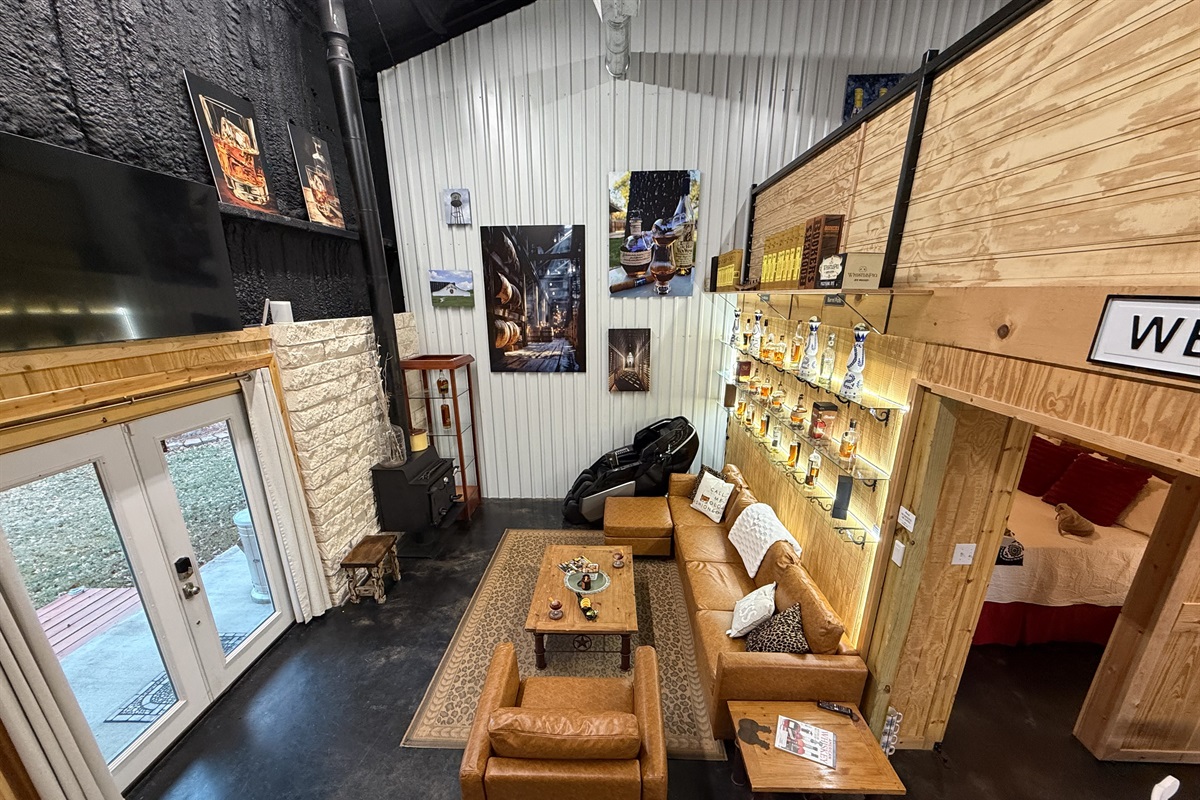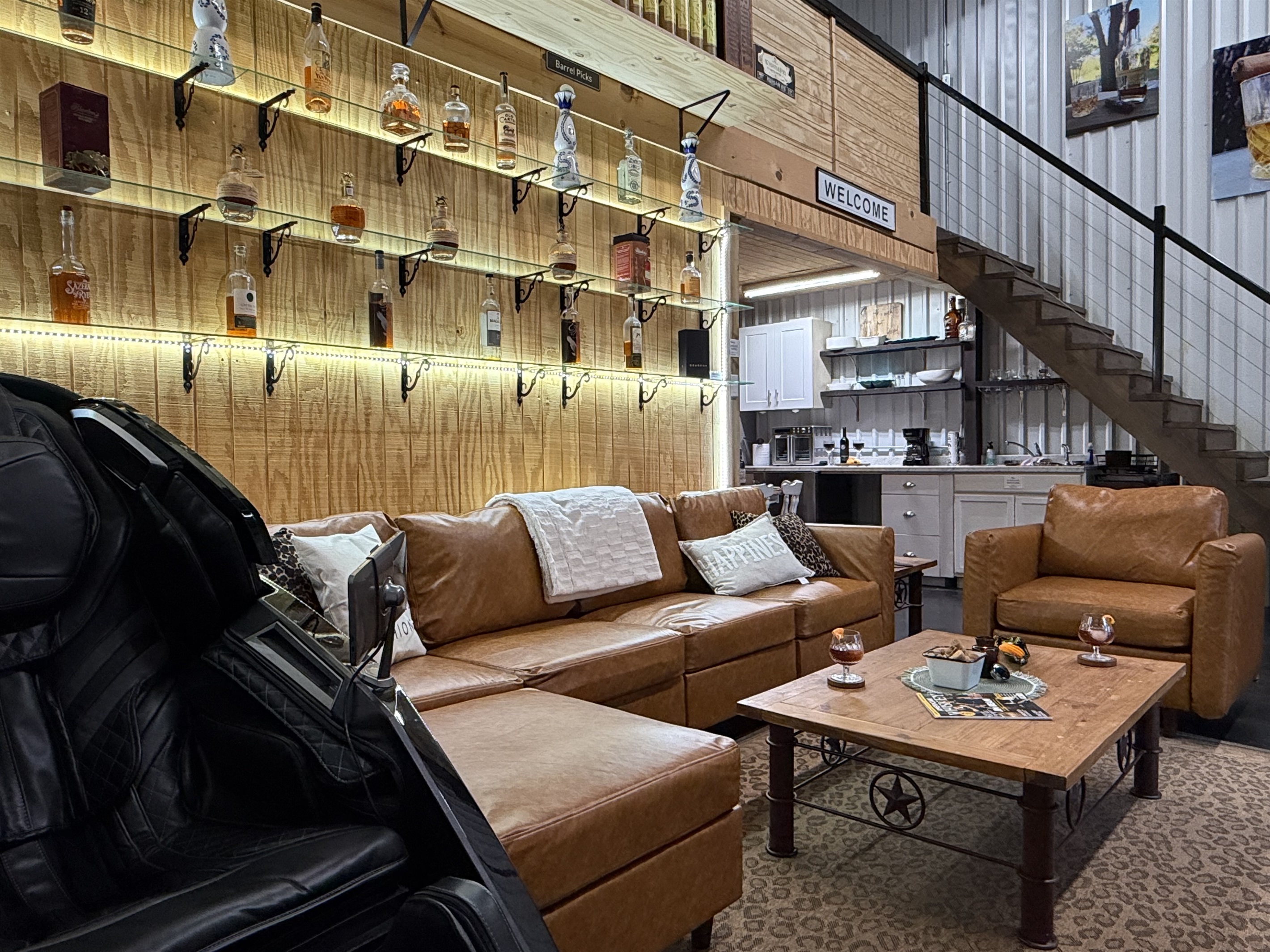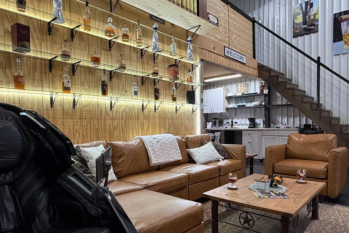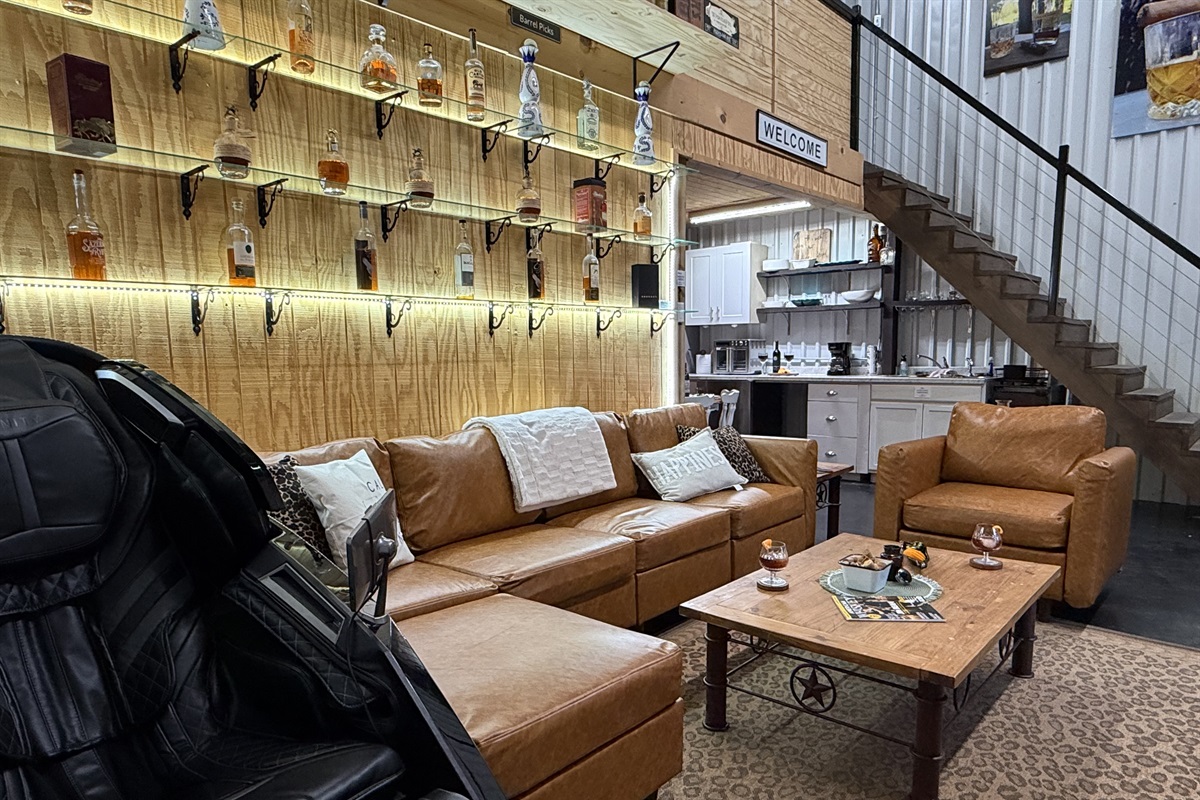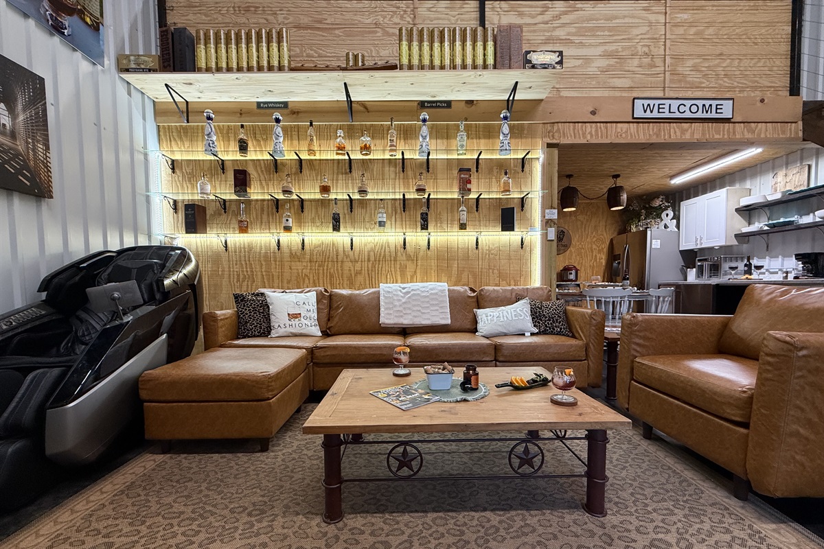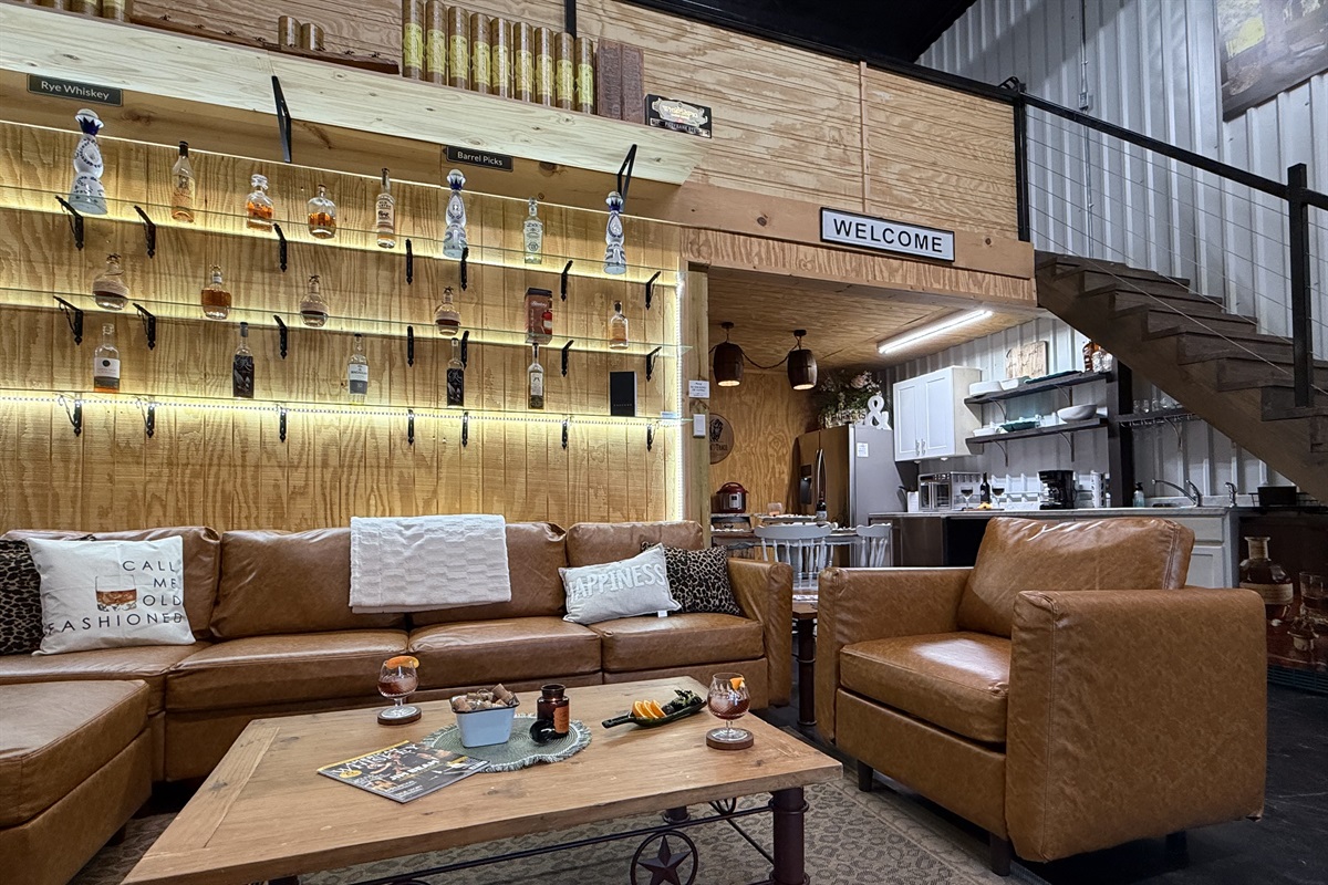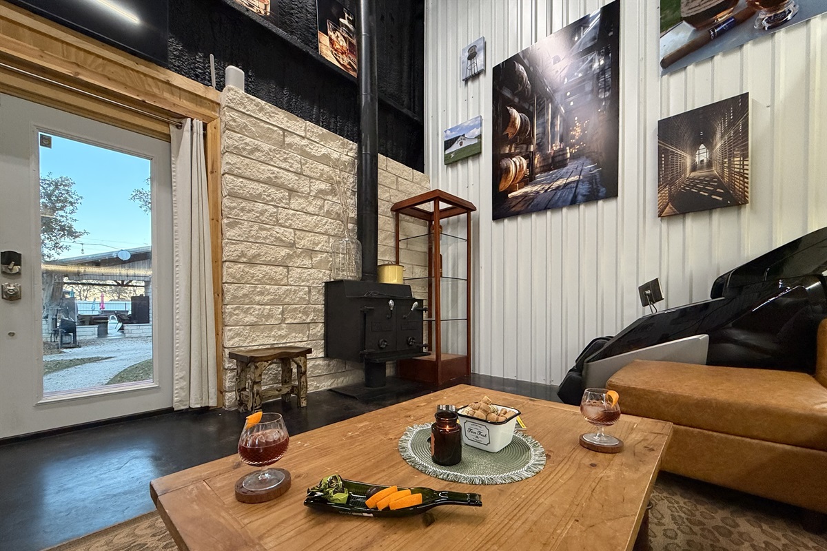 2 Bedrooms • 1 Bathroom 1 Bath • Sleeps 3-6Welcome to Chateau Bourbon - an extraordinary escape for bourbon enthusiasts and those seeking a truly unique Texas getaway! This one-of-a-kind property combines luxurious accommodations with an impressive whiskey lounge experience, complete with a stunning backlit bourbon display, private cigar room, massage chair, and outdoor relaxation spaces. Perfect for couples, small groups, or anyone looking for an elevated, experiential stay.
