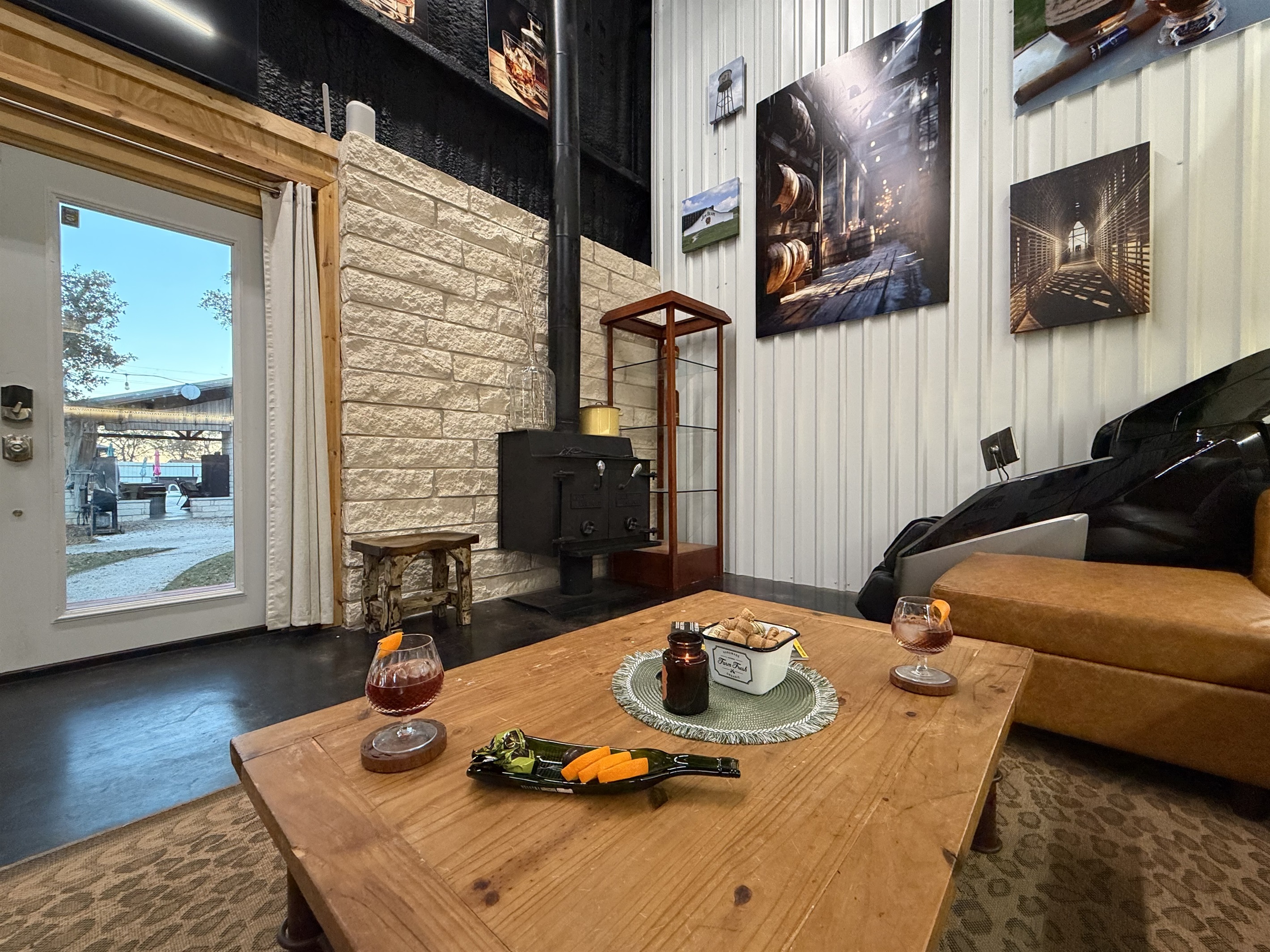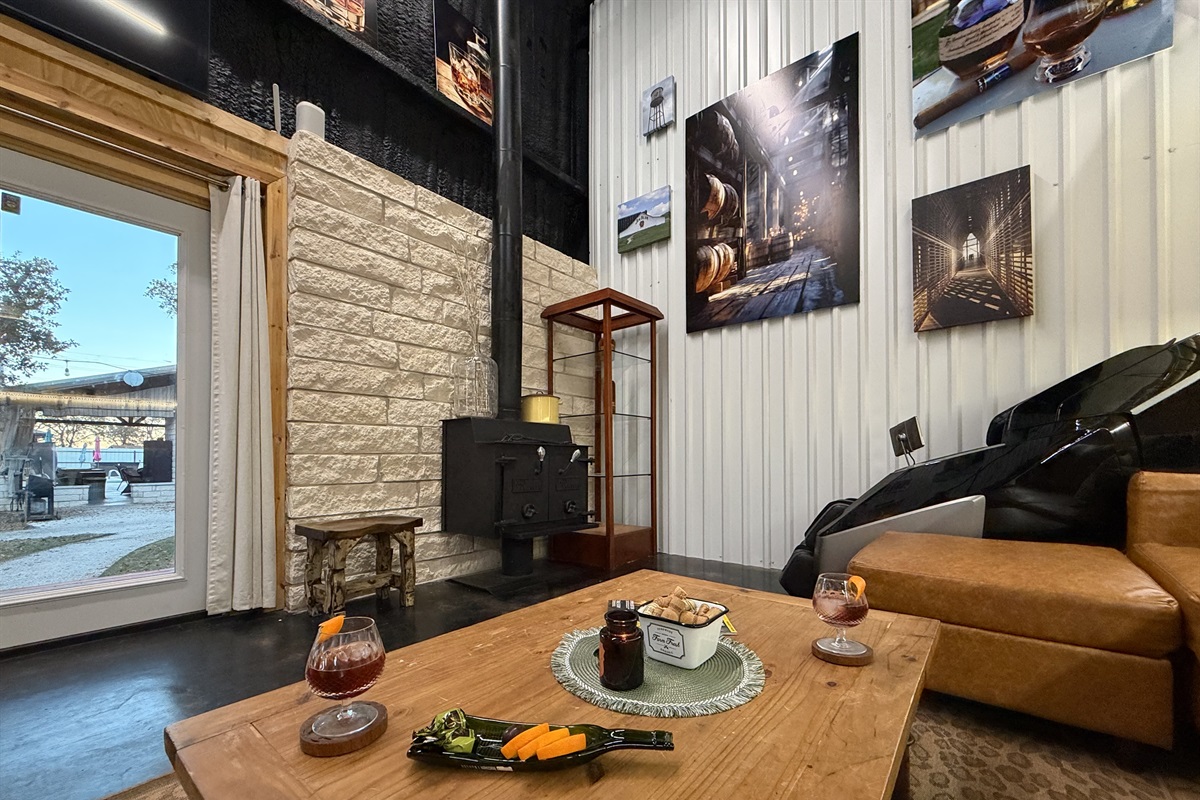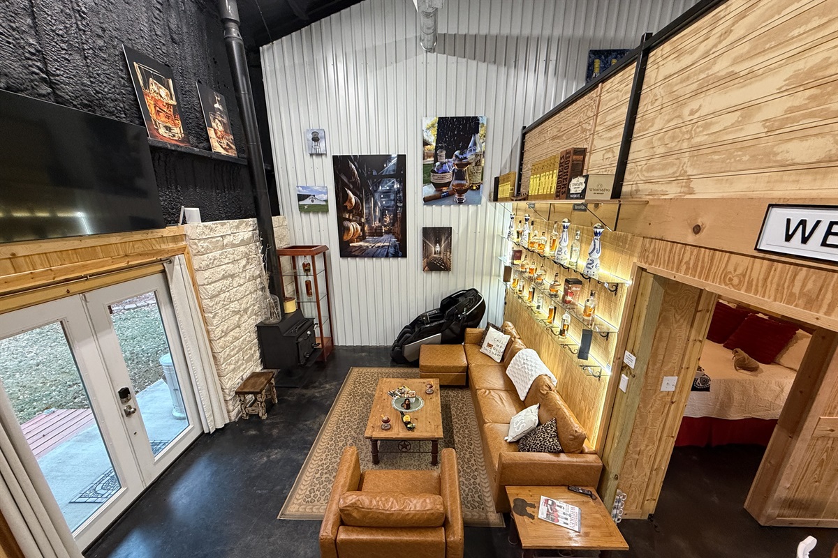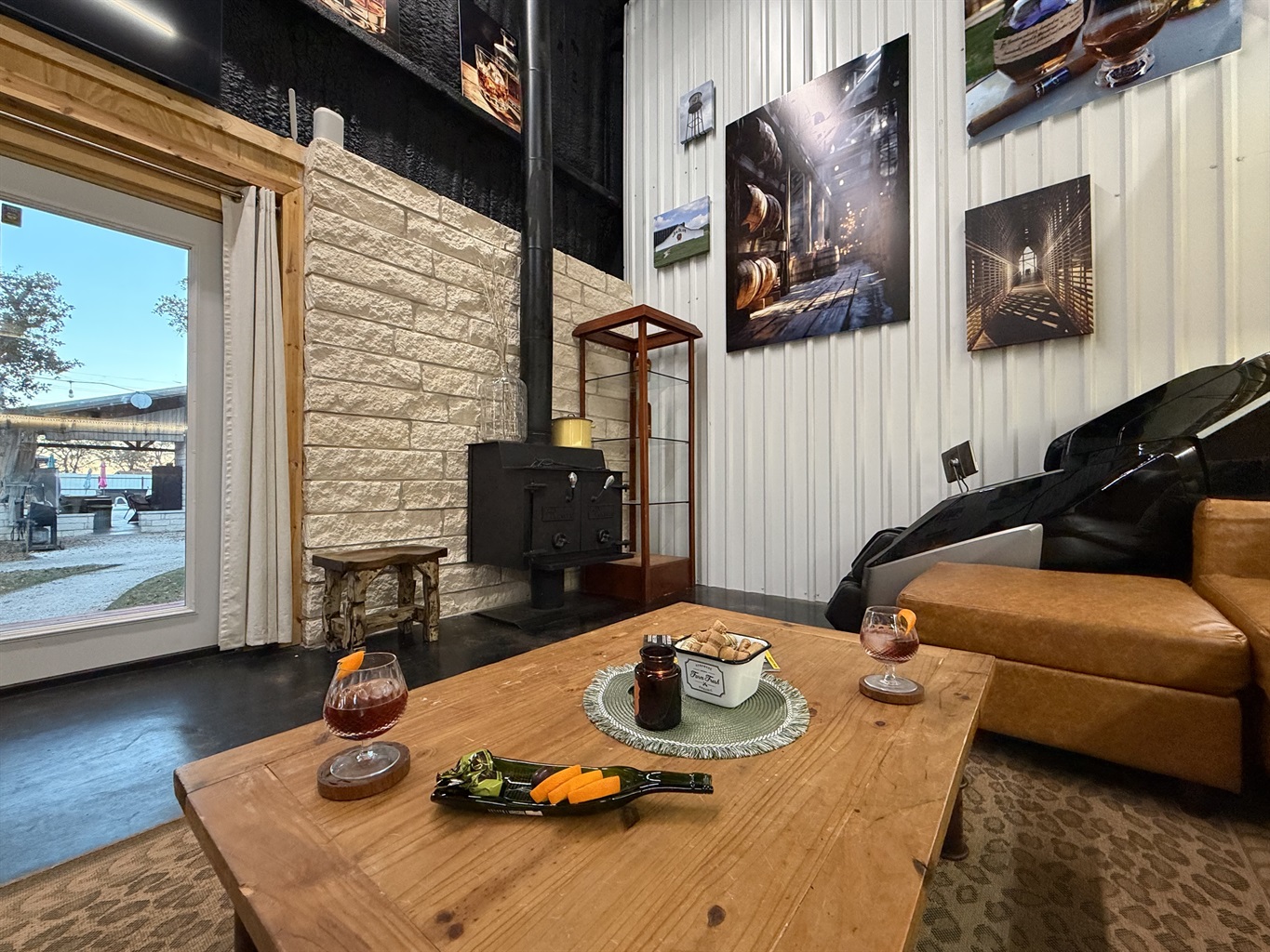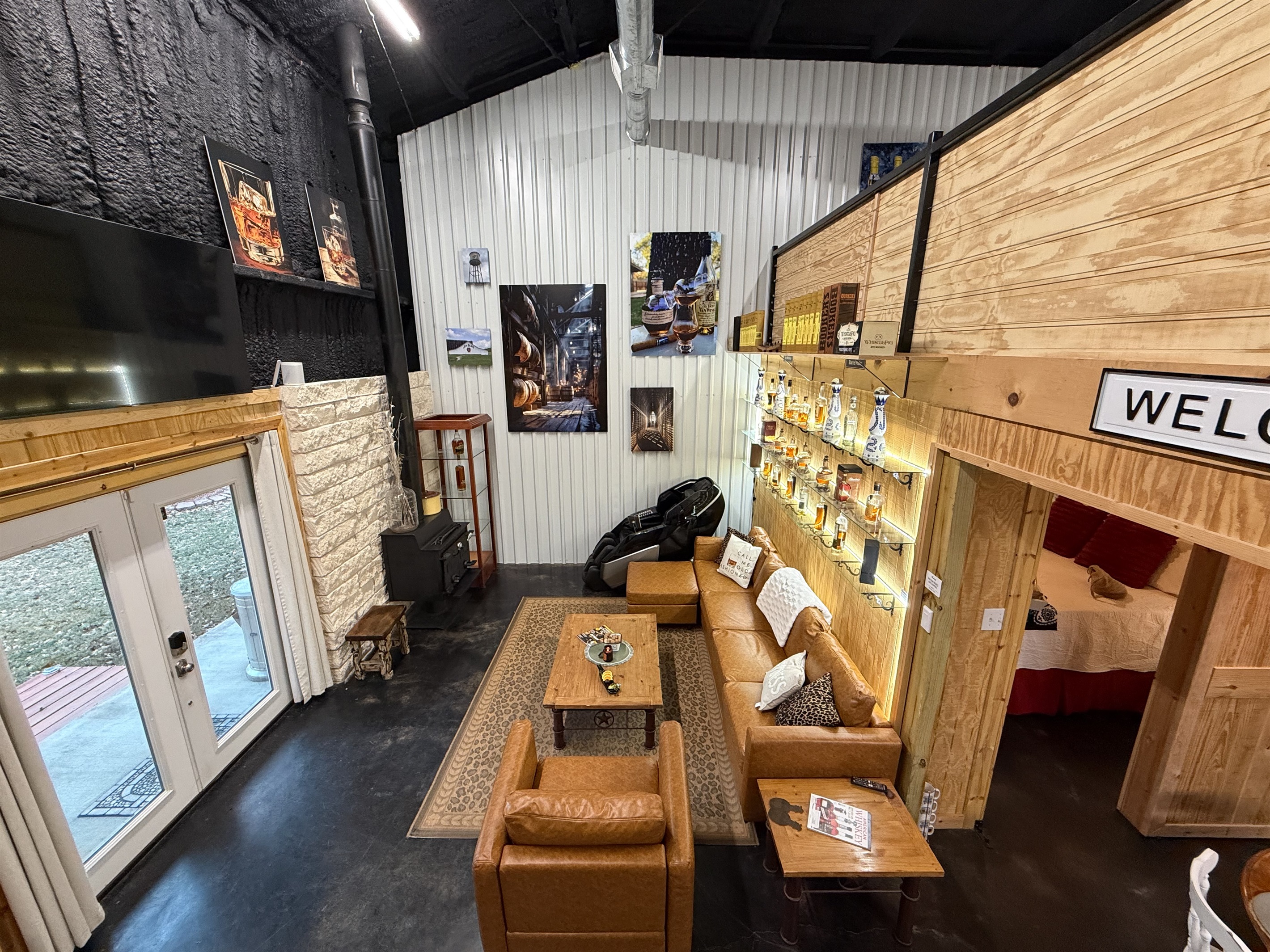 2 Bedrooms • 1 Bathroom 1 Bath • Sleeps 3-6Welcome to Chateau Bourbon - an extraordinary escape for bourbon enthusiasts and those seeking a truly unique Texas getaway! This one-of-a-kind property combines luxurious accommodations with an impressive whiskey lounge experience, complete with a stunning backlit bourbon display, private cigar room, massage chair, and outdoor relaxation spaces. Perfect for couples, small groups, or anyone looking for an elevated, experiential stay.