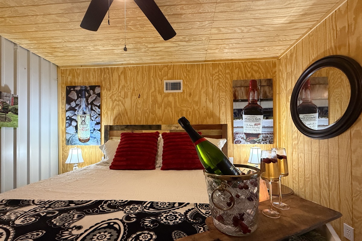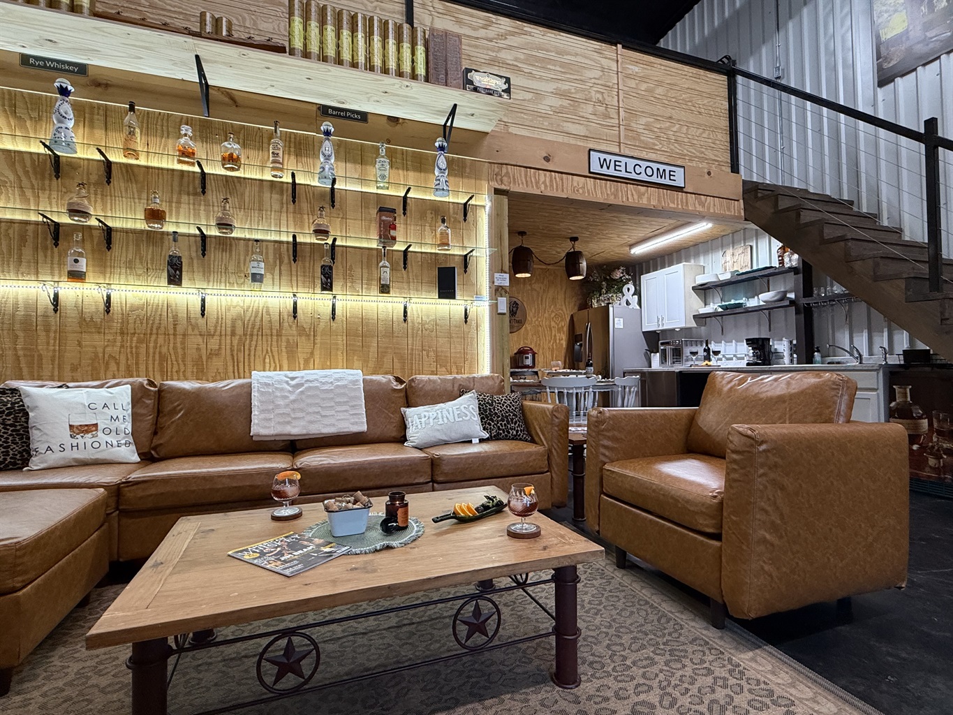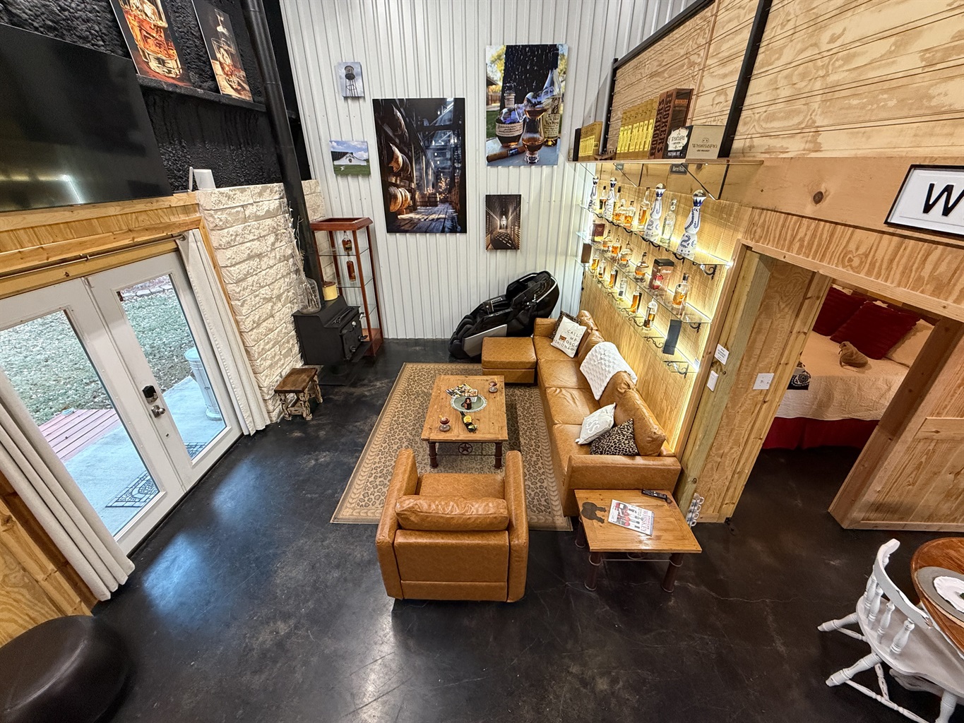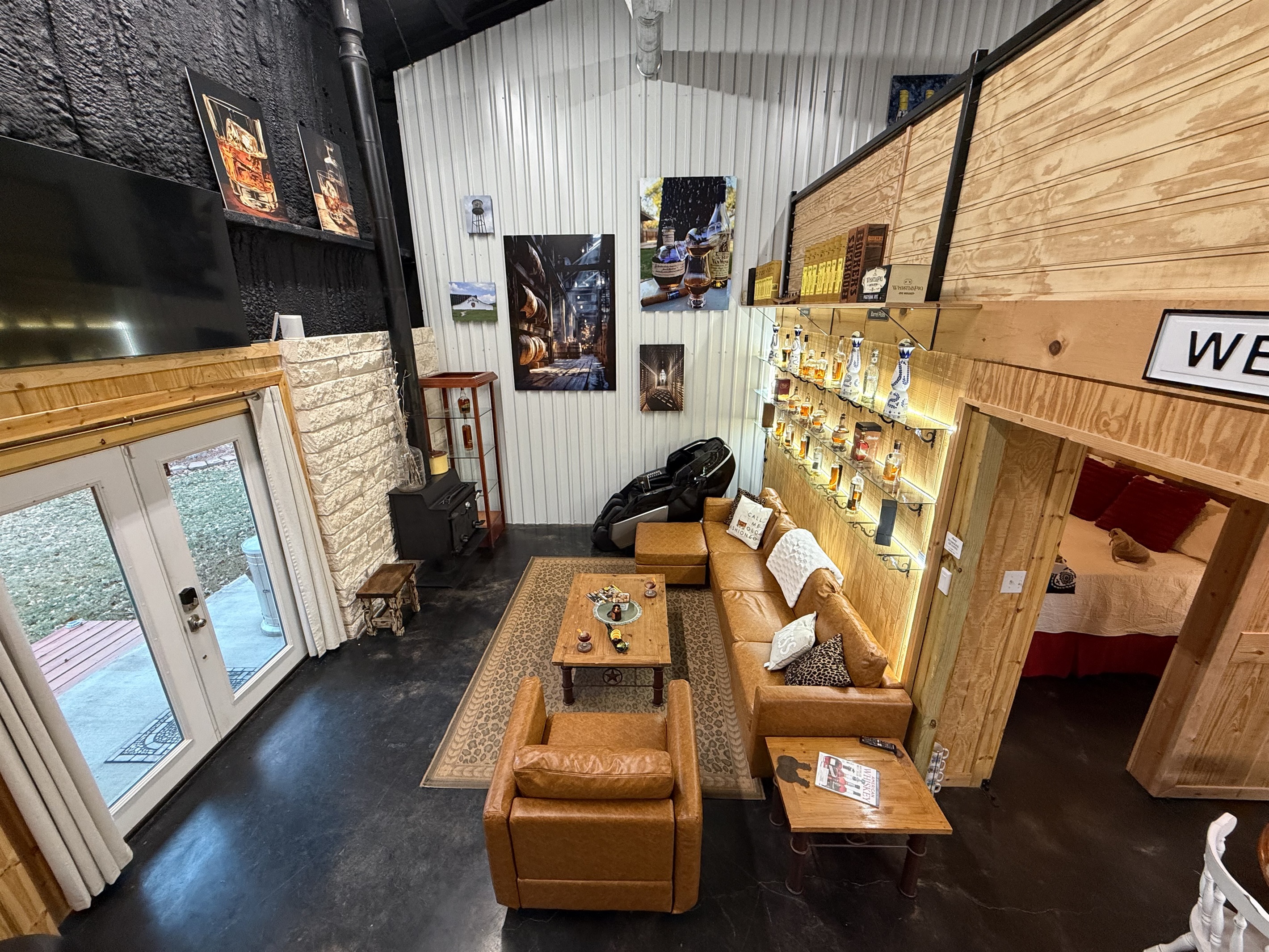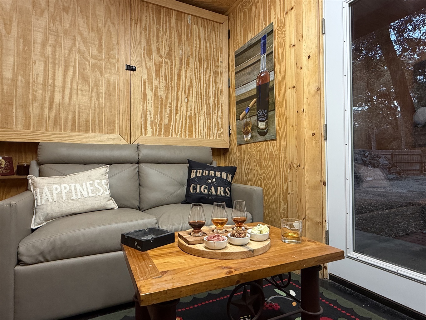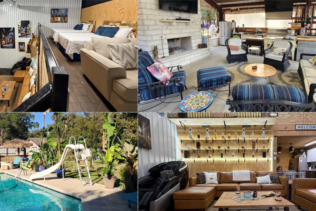 2 Bedrooms • 1 Bathroom 1 Bath • Sleeps 3-6Welcome to Chateau Bourbon - an extraordinary escape for bourbon enthusiasts and those seeking a truly unique Texas getaway! This one-of-a-kind property combines luxurious accommodations with an impressive whiskey lounge experience, complete with a stunning backlit bourbon display, private cigar room, massage chair, and outdoor relaxation spaces. Perfect for couples, small groups, or anyone looking for an elevated, experiential stay.