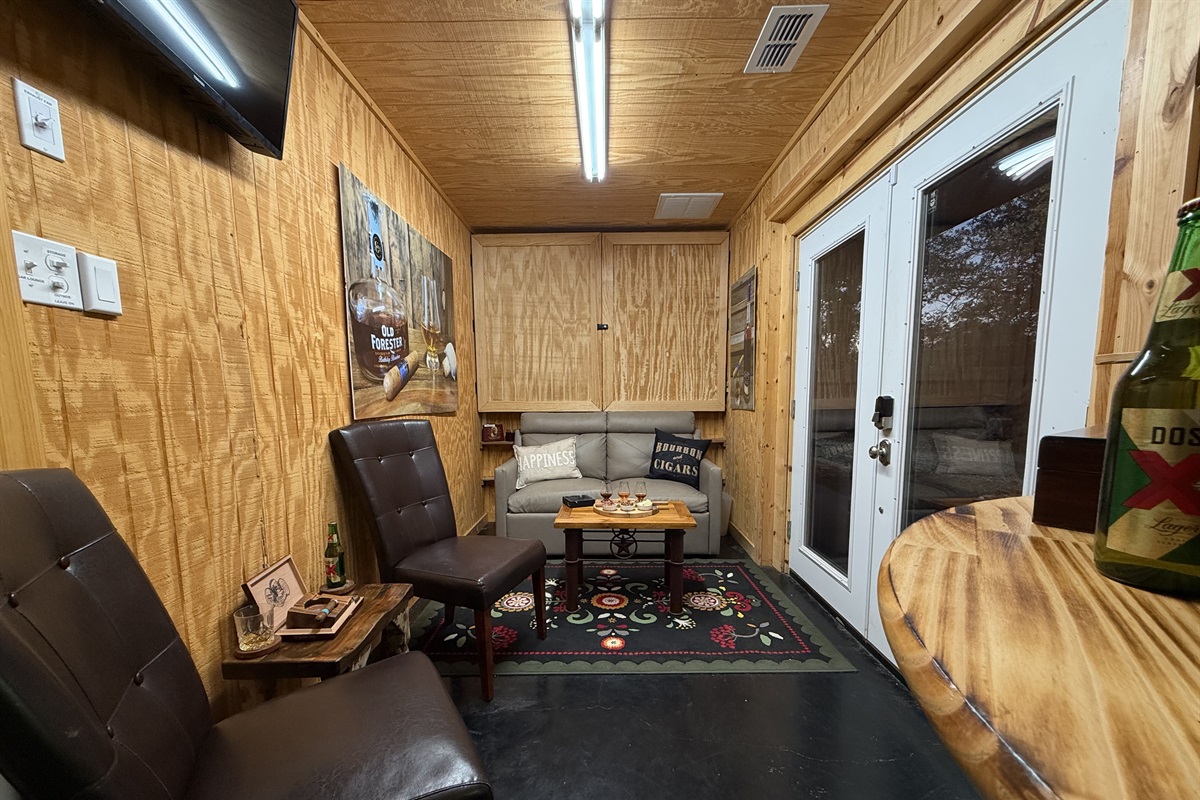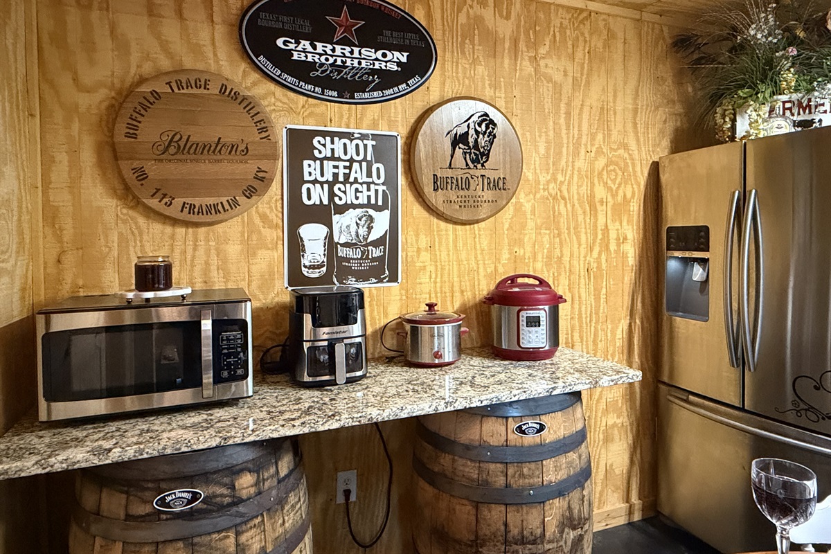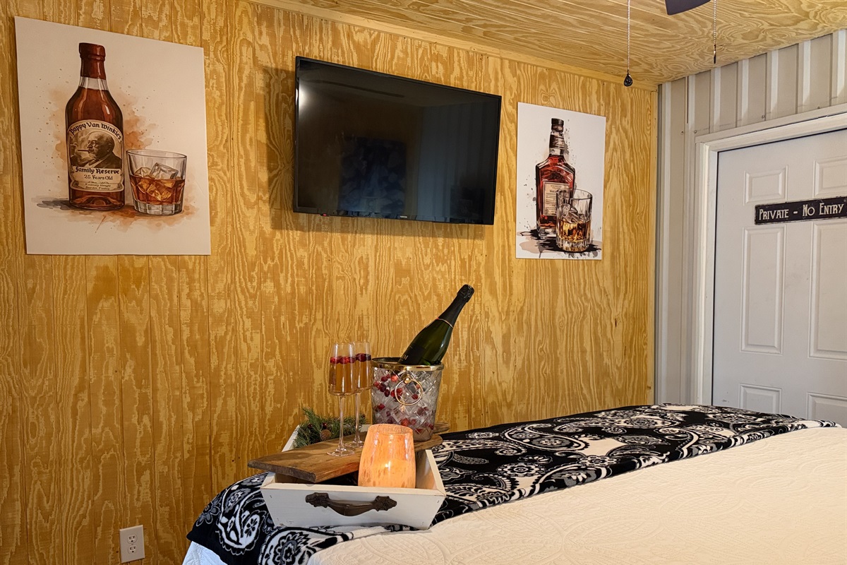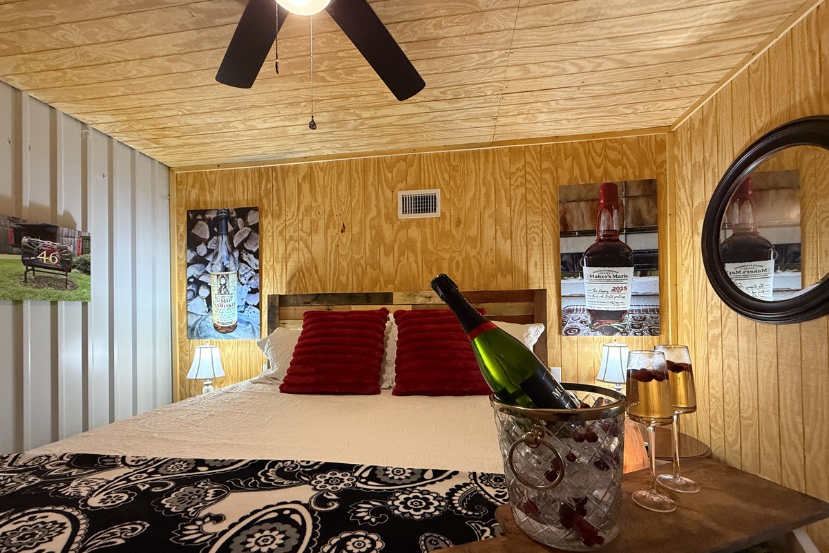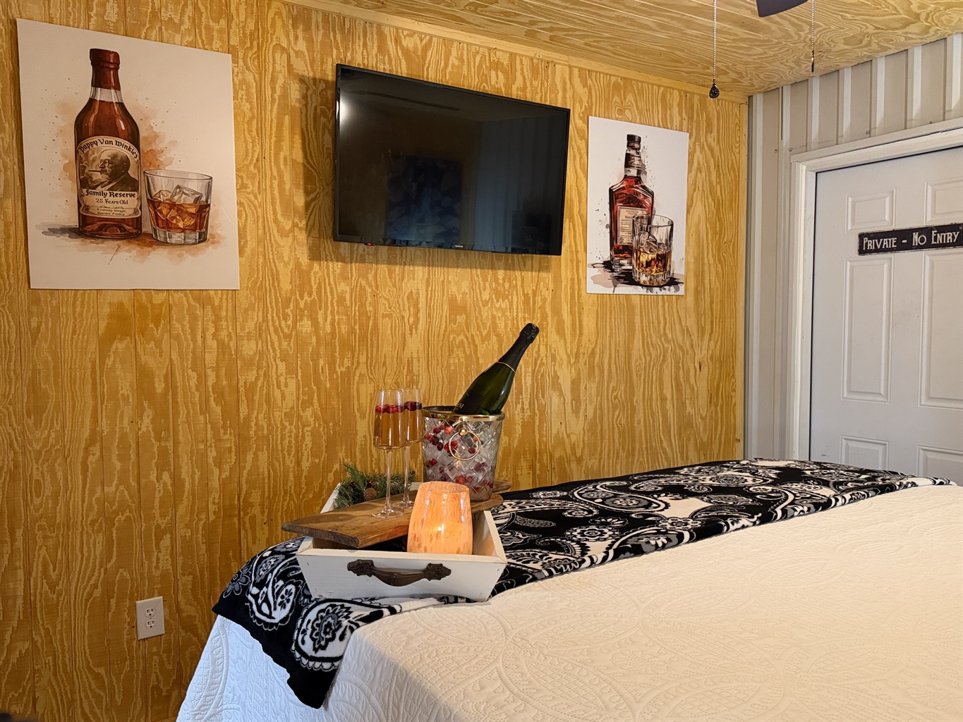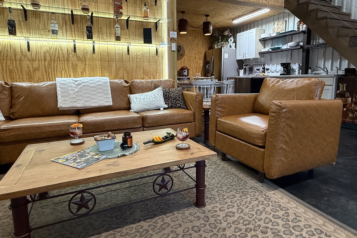 2 Bedrooms • 1 Bathroom 1 Bath • Sleeps 3-6Welcome to Chateau Bourbon - an extraordinary escape for bourbon enthusiasts and those seeking a truly unique Texas getaway! This one-of-a-kind property combines luxurious accommodations with an impressive whiskey lounge experience, complete with a stunning backlit bourbon display, private cigar room, massage chair, and outdoor relaxation spaces. Perfect for couples, small groups, or anyone looking for an elevated, experiential stay.