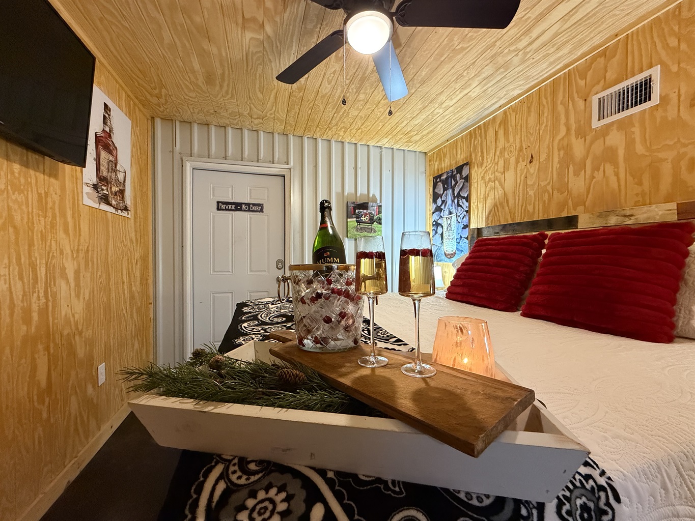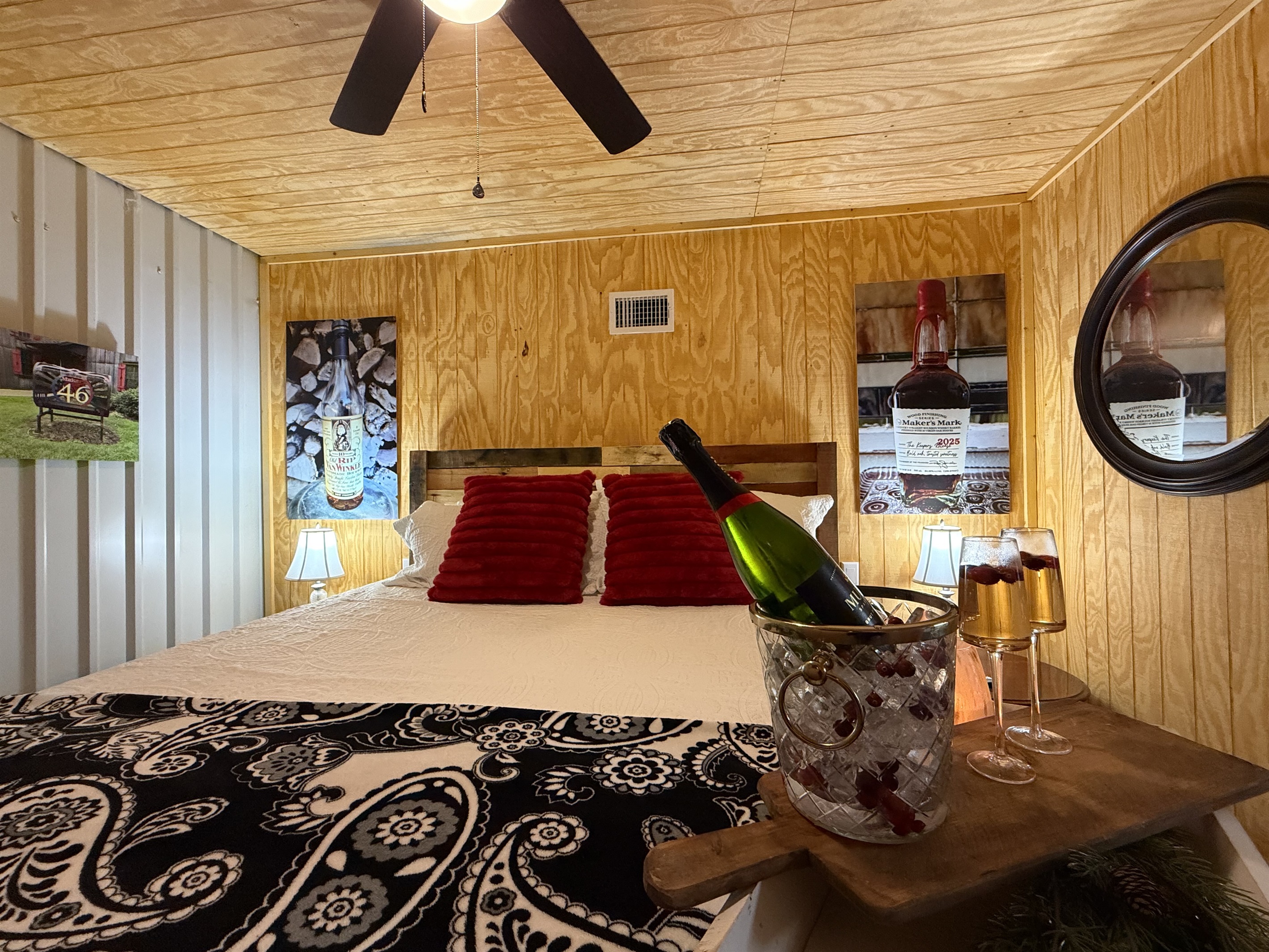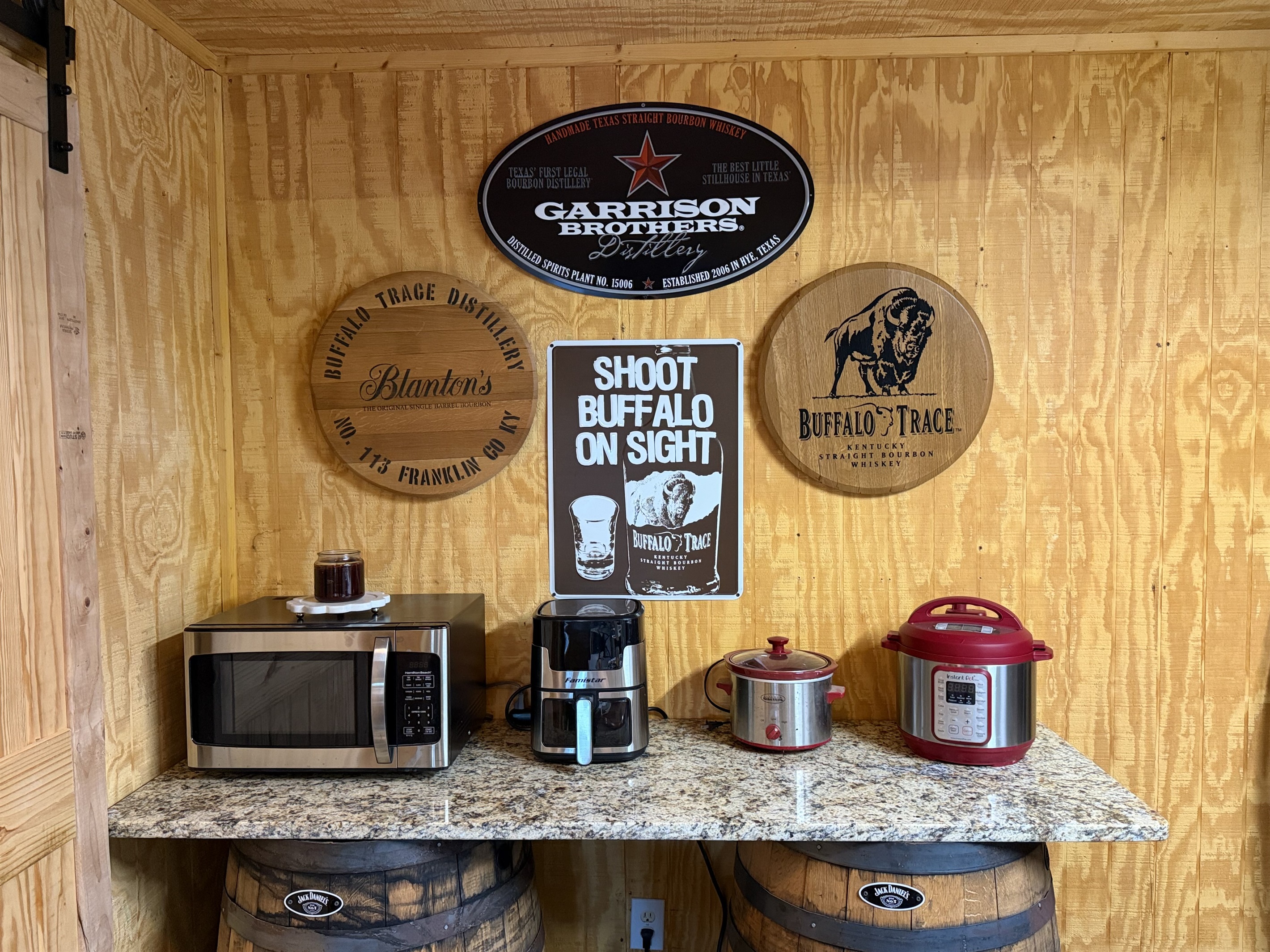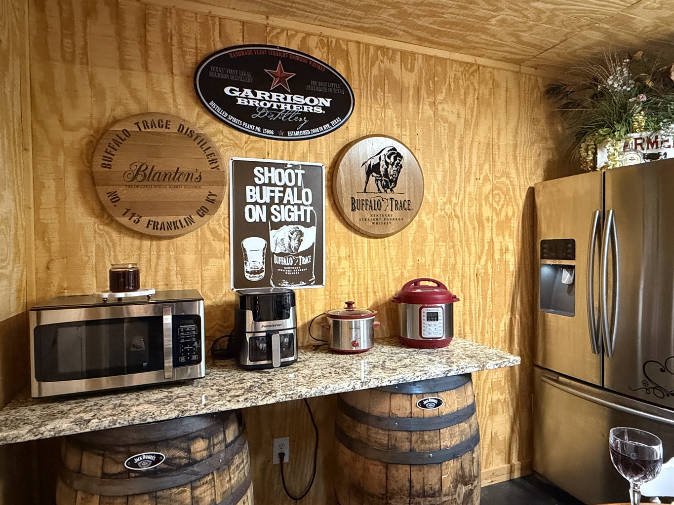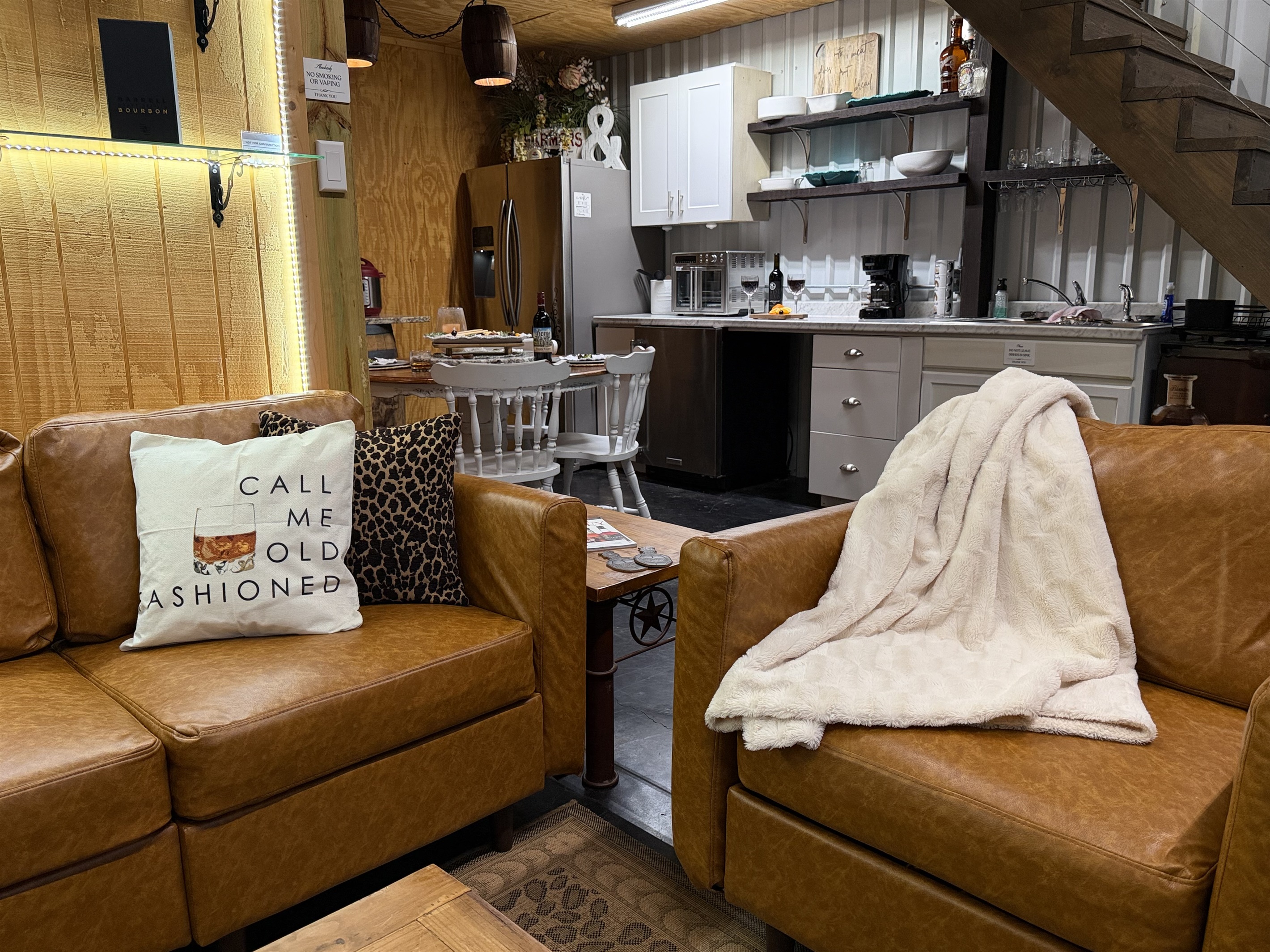 2 Bedrooms • 1 Bathroom 1 Bath • Sleeps 3-6Welcome to Chateau Bourbon - an extraordinary escape for bourbon enthusiasts and those seeking a truly unique Texas getaway! This one-of-a-kind property combines luxurious accommodations with an impressive whiskey lounge experience, complete with a stunning backlit bourbon display, private cigar room, massage chair, and outdoor relaxation spaces. Perfect for couples, small groups, or anyone looking for an elevated, experiential stay.