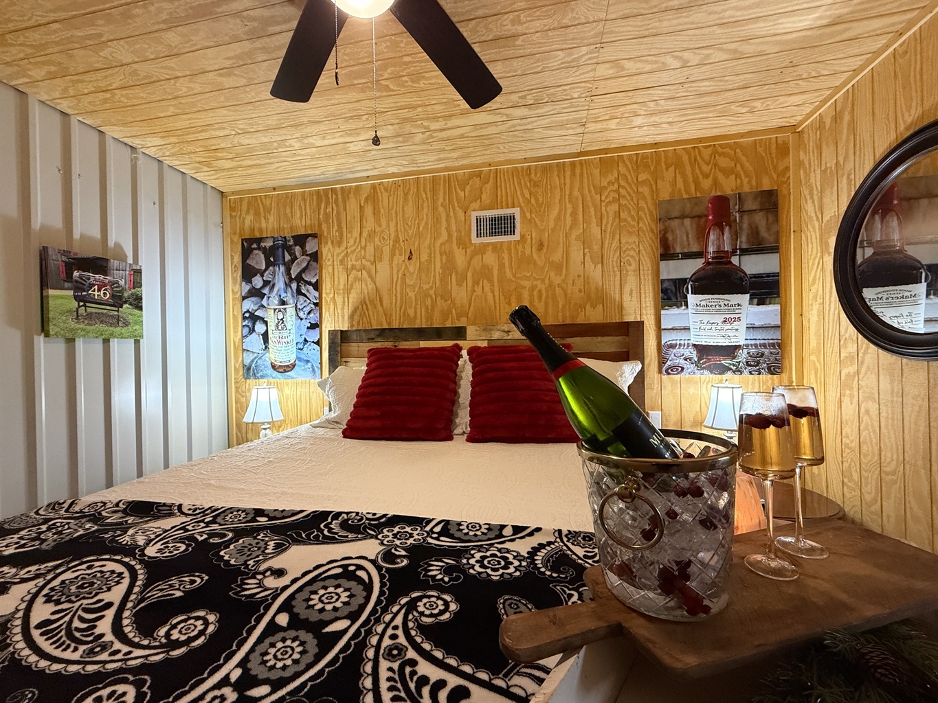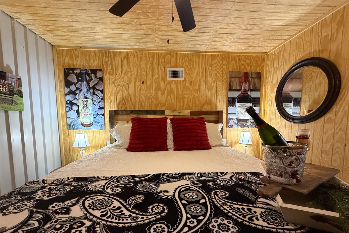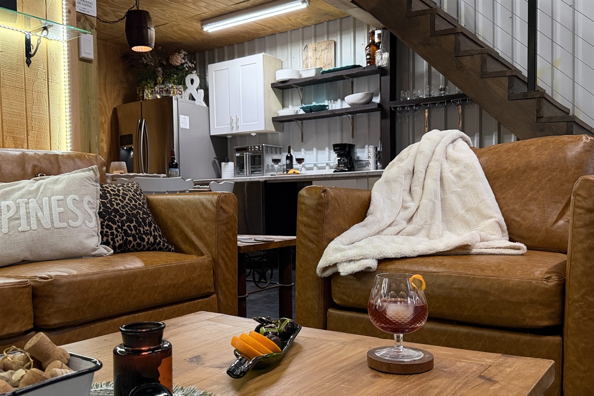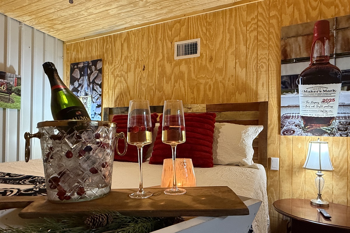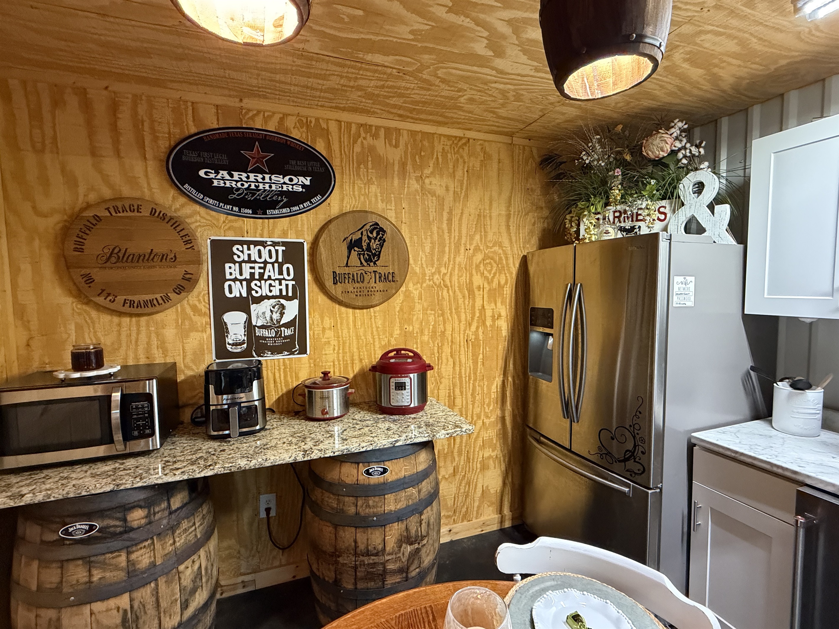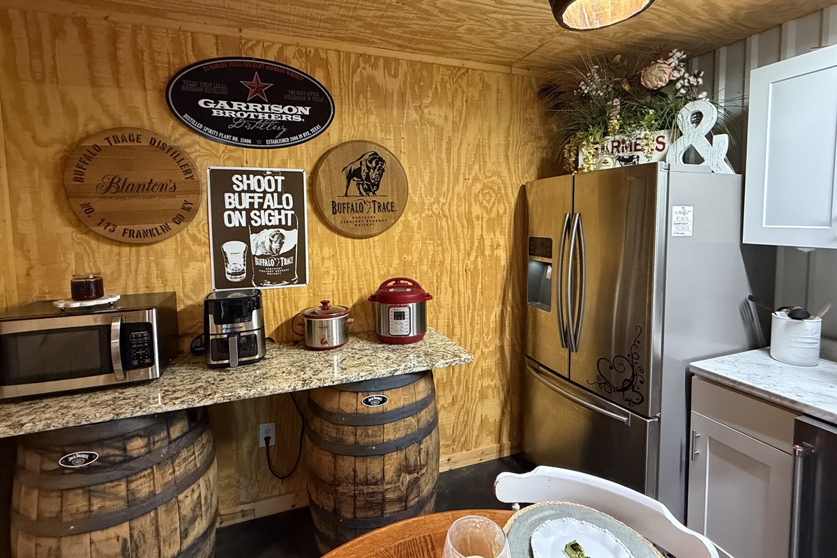 2 Bedrooms • 1 Bathroom 1 Bath • Sleeps 3-6Welcome to Chateau Bourbon - an extraordinary escape for bourbon enthusiasts and those seeking a truly unique Texas getaway! This one-of-a-kind property combines luxurious accommodations with an impressive whiskey lounge experience, complete with a stunning backlit bourbon display, private cigar room, massage chair, and outdoor relaxation spaces. Perfect for couples, small groups, or anyone looking for an elevated, experiential stay.