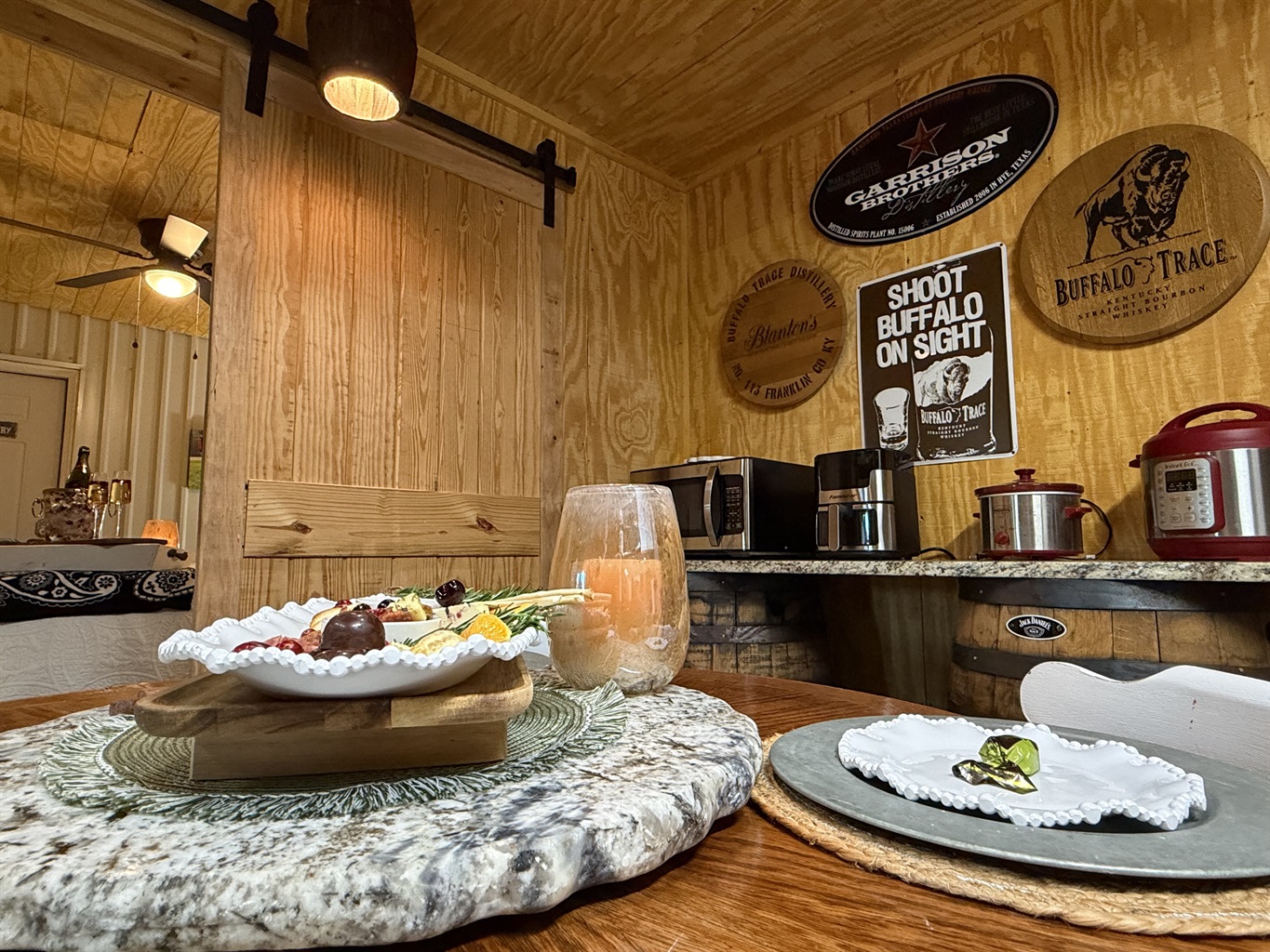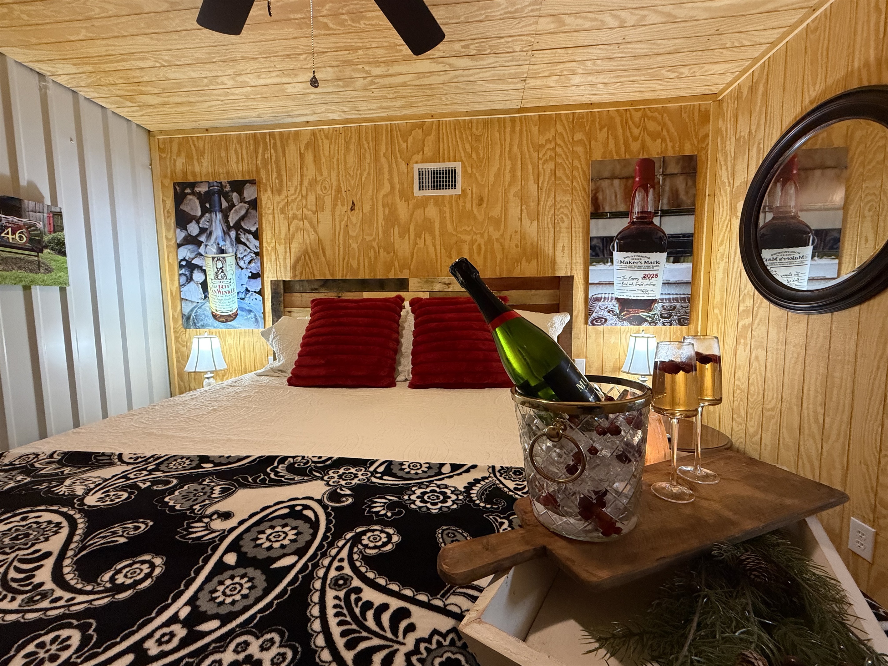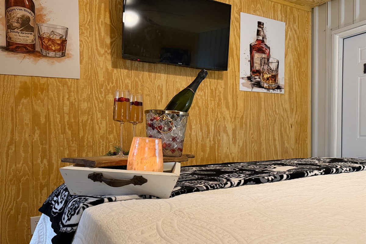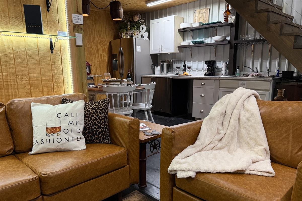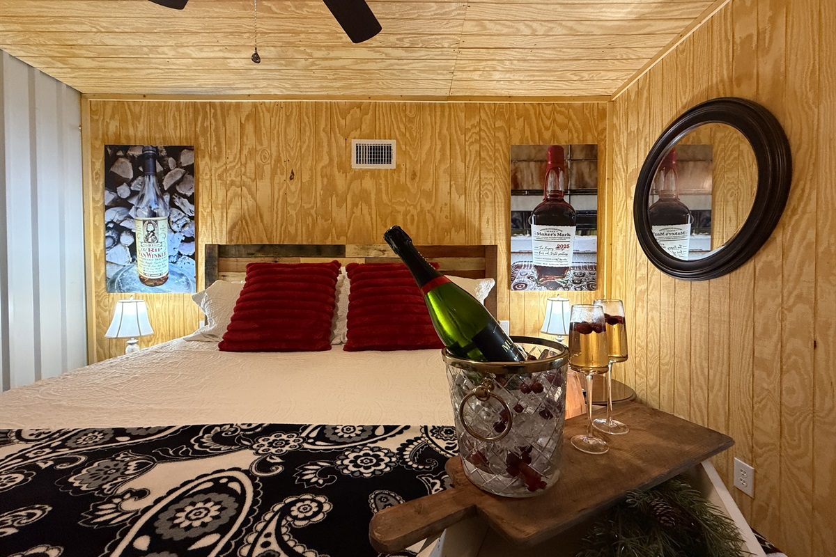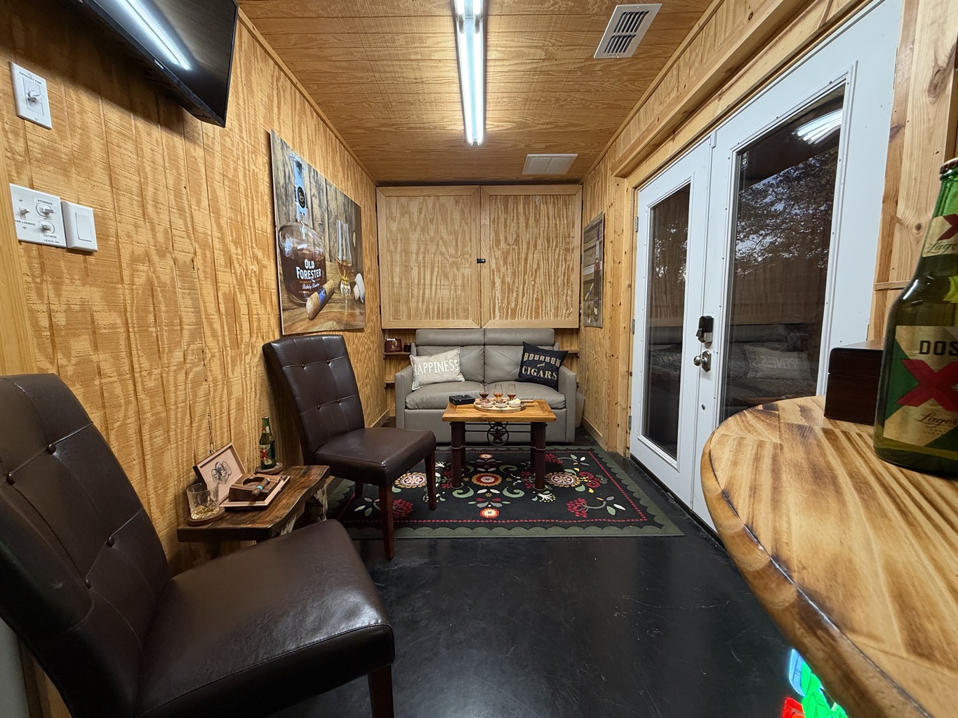 2 Bedrooms • 1 Bathroom 1 Bath • Sleeps 3-6Welcome to Chateau Bourbon - an extraordinary escape for bourbon enthusiasts and those seeking a truly unique Texas getaway! This one-of-a-kind property combines luxurious accommodations with an impressive whiskey lounge experience, complete with a stunning backlit bourbon display, private cigar room, massage chair, and outdoor relaxation spaces. Perfect for couples, small groups, or anyone looking for an elevated, experiential stay.
