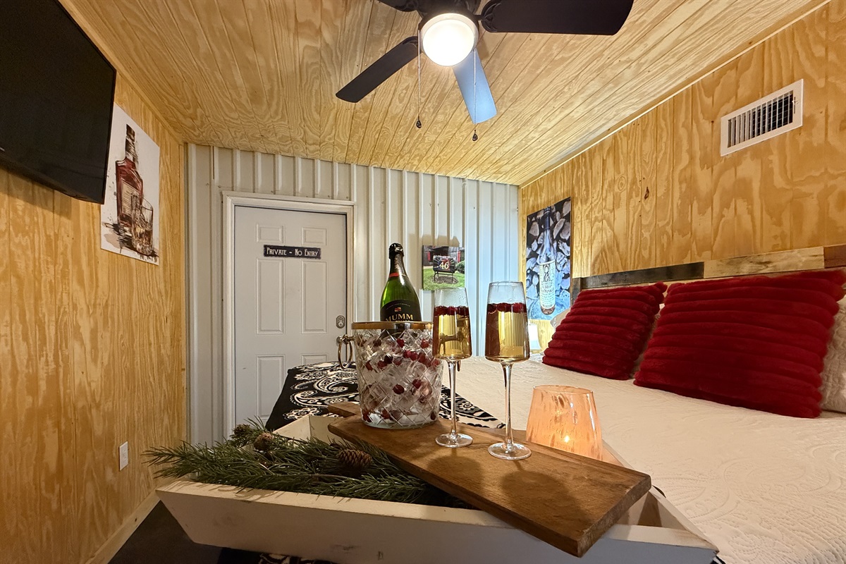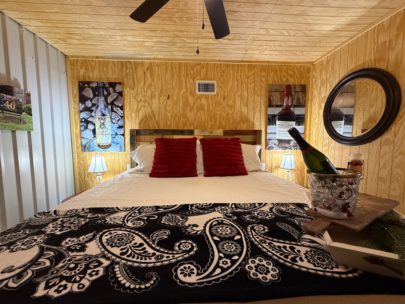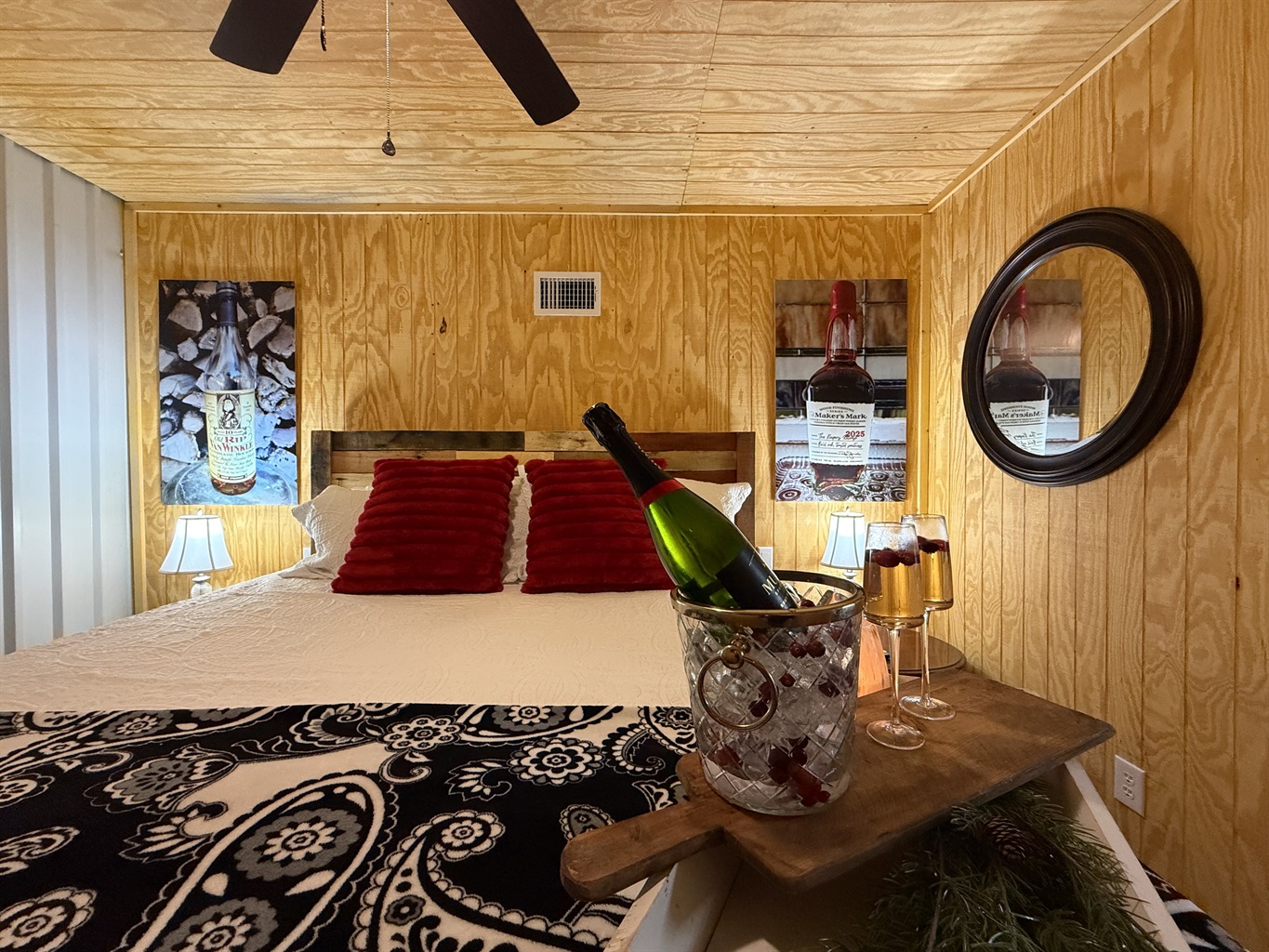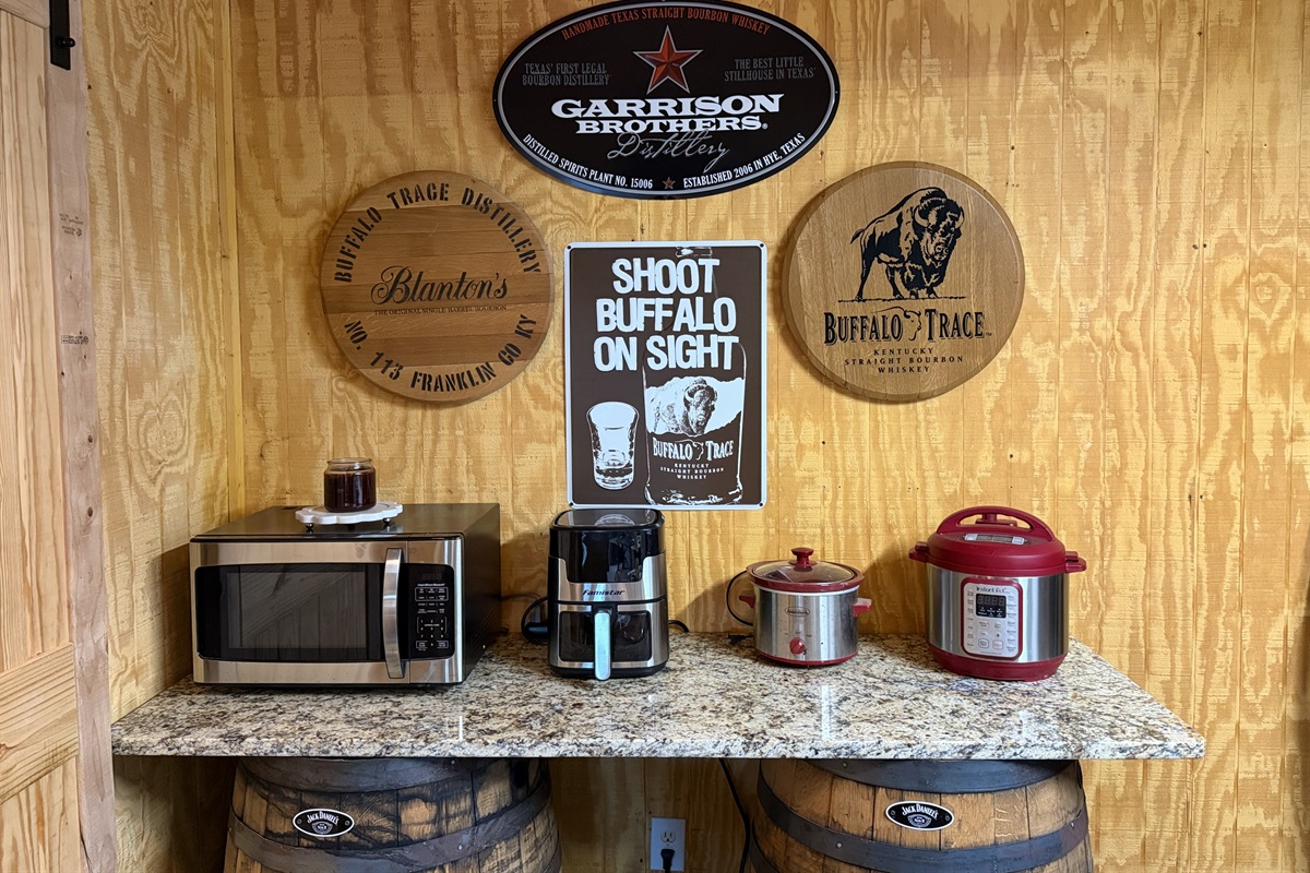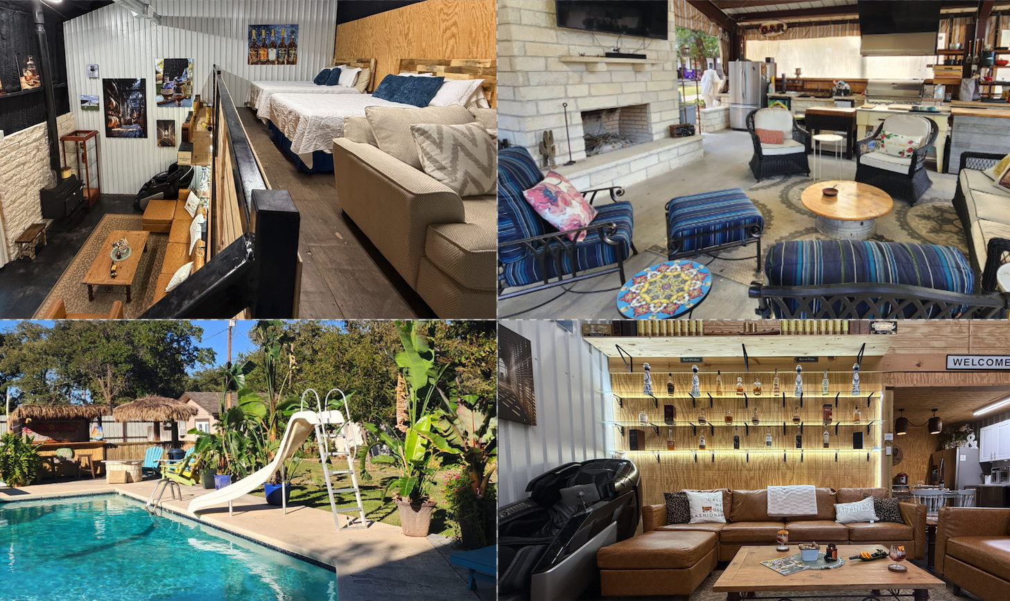 2 Bedrooms • 1 Bathroom 1 Bath • Sleeps 3-6Welcome to Chateau Bourbon - an extraordinary escape for bourbon enthusiasts and those seeking a truly unique Texas getaway! This one-of-a-kind property combines luxurious accommodations with an impressive whiskey lounge experience, complete with a stunning backlit bourbon display, private cigar room, massage chair, and outdoor relaxation spaces. Perfect for couples, small groups, or anyone looking for an elevated, experiential stay.