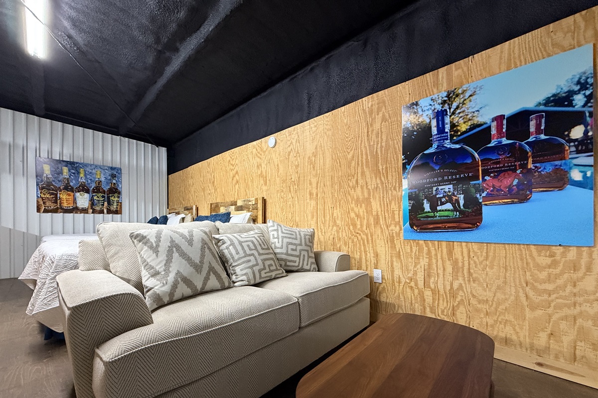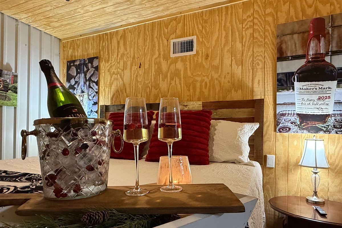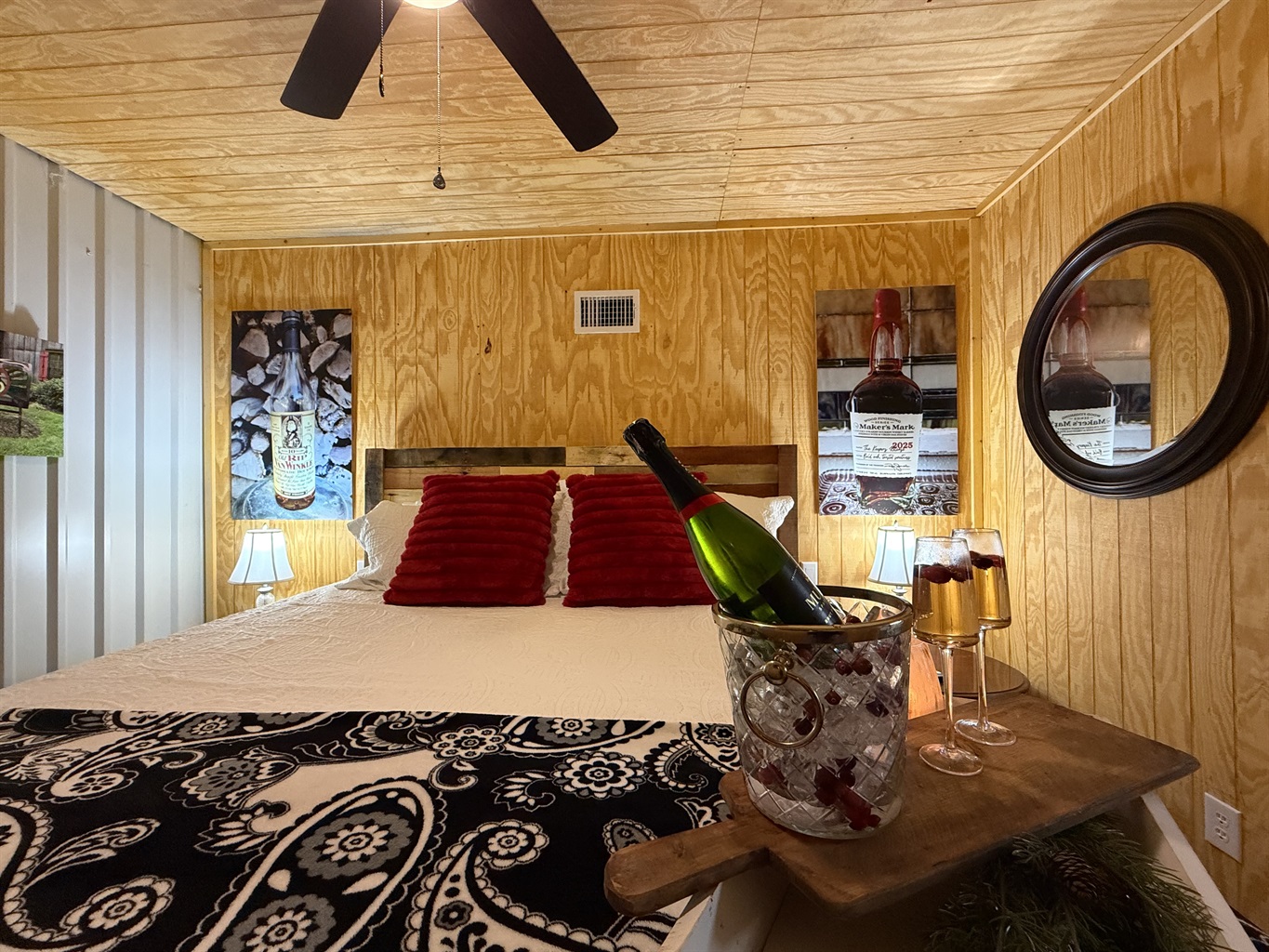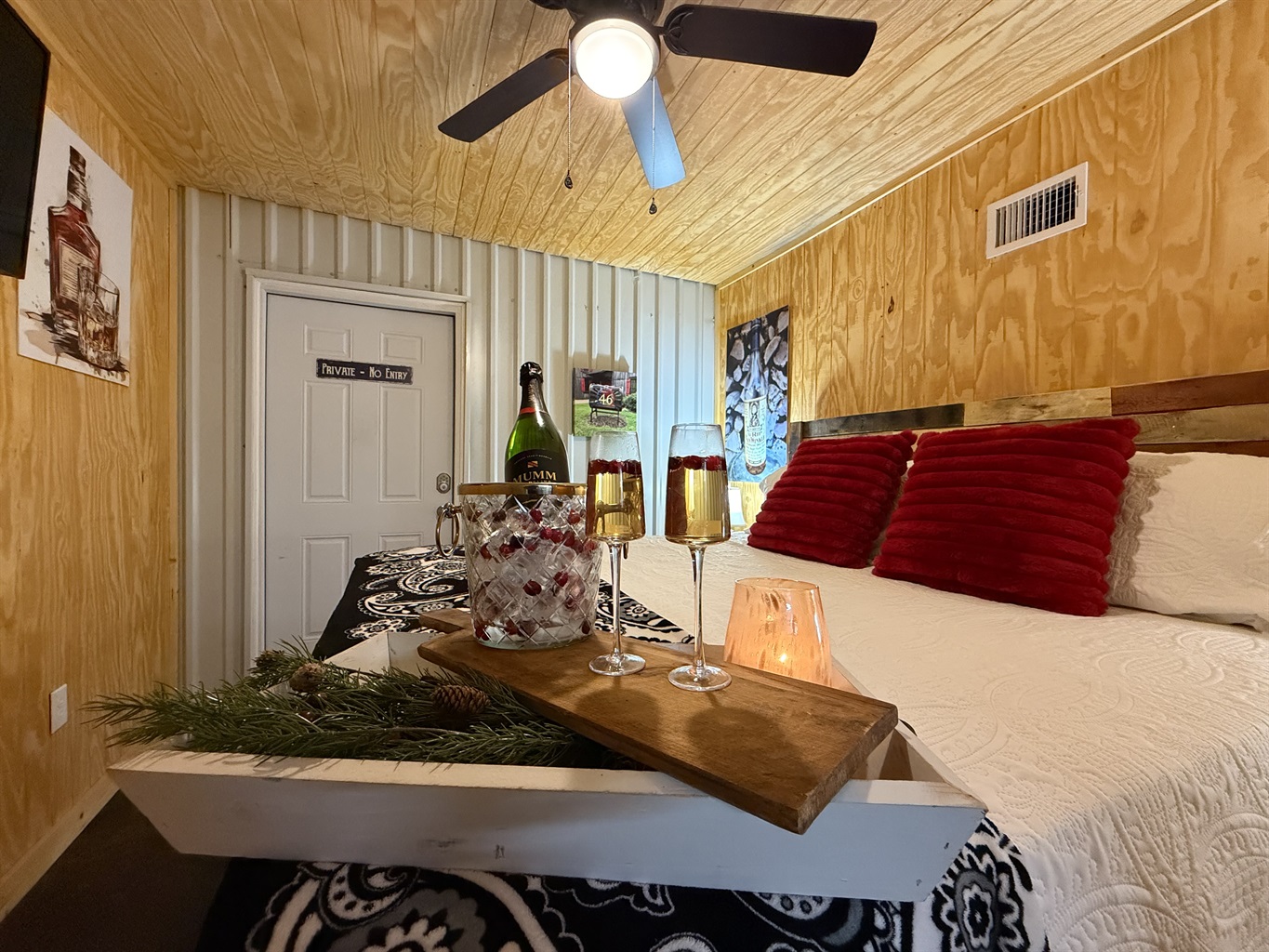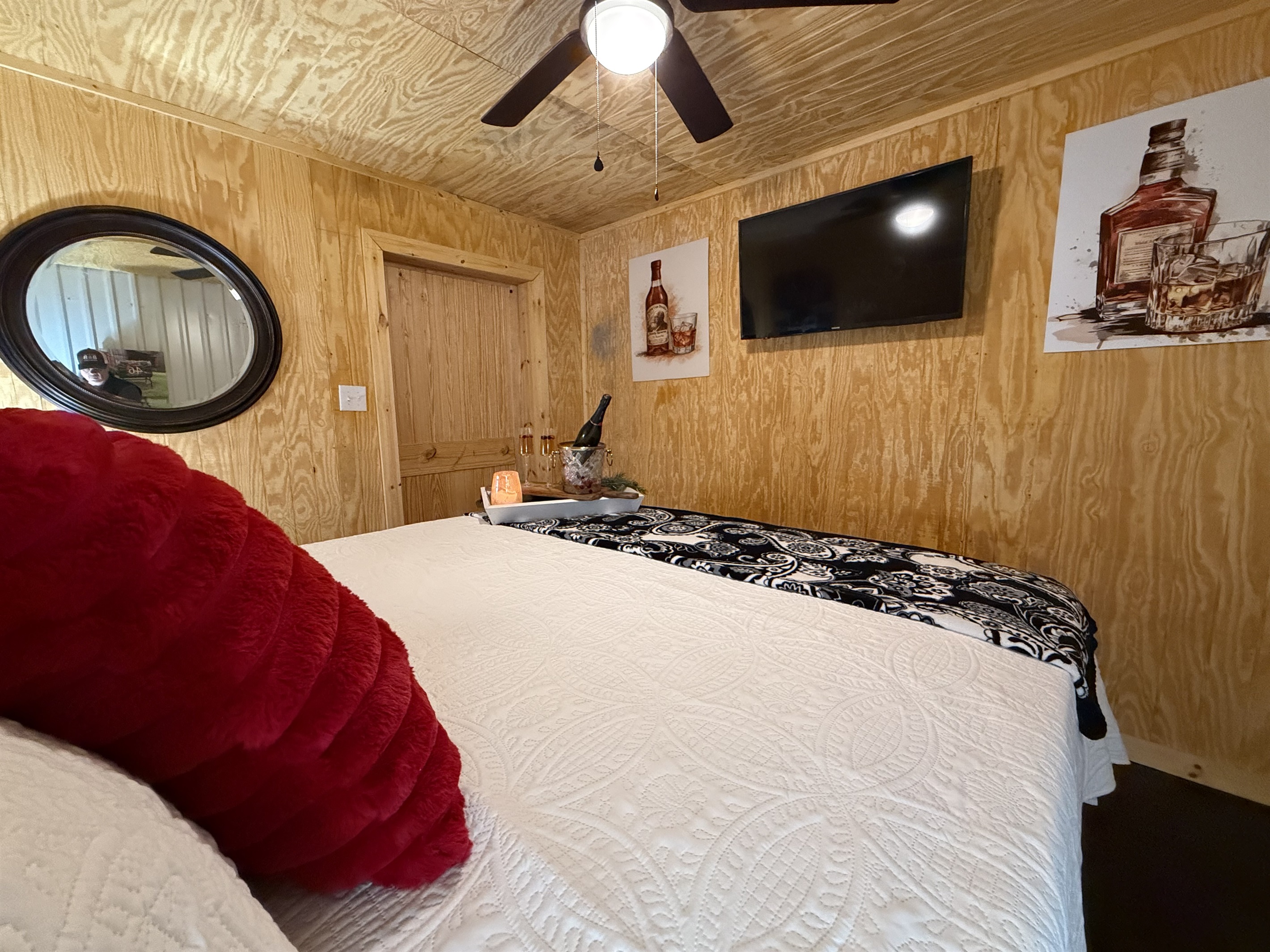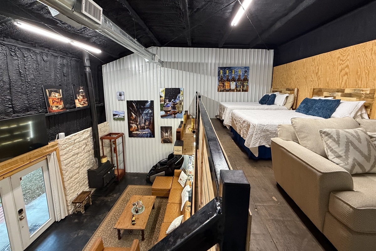 2 Bedrooms • 1 Bathroom 1 Bath • Sleeps 3-6Welcome to Chateau Bourbon - an extraordinary escape for bourbon enthusiasts and those seeking a truly unique Texas getaway! This one-of-a-kind property combines luxurious accommodations with an impressive whiskey lounge experience, complete with a stunning backlit bourbon display, private cigar room, massage chair, and outdoor relaxation spaces. Perfect for couples, small groups, or anyone looking for an elevated, experiential stay.