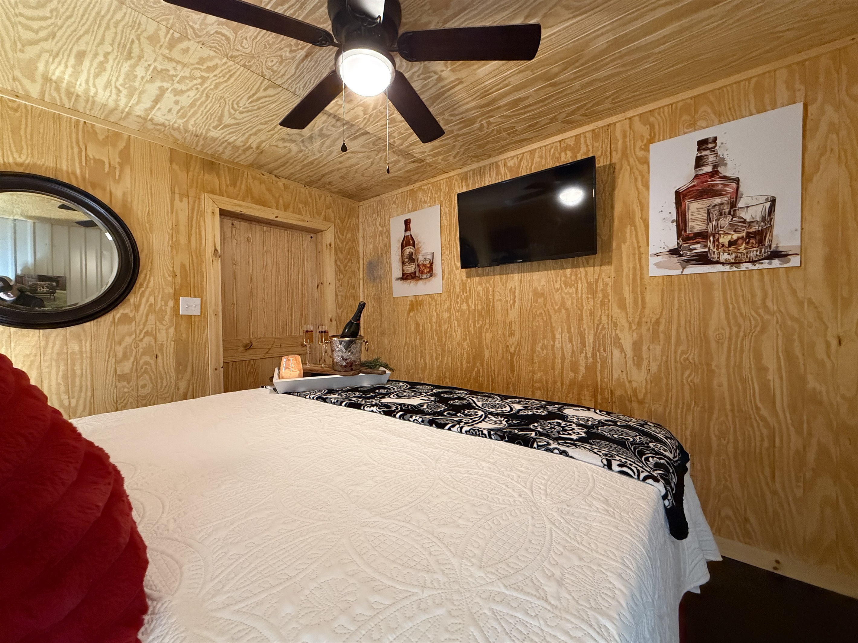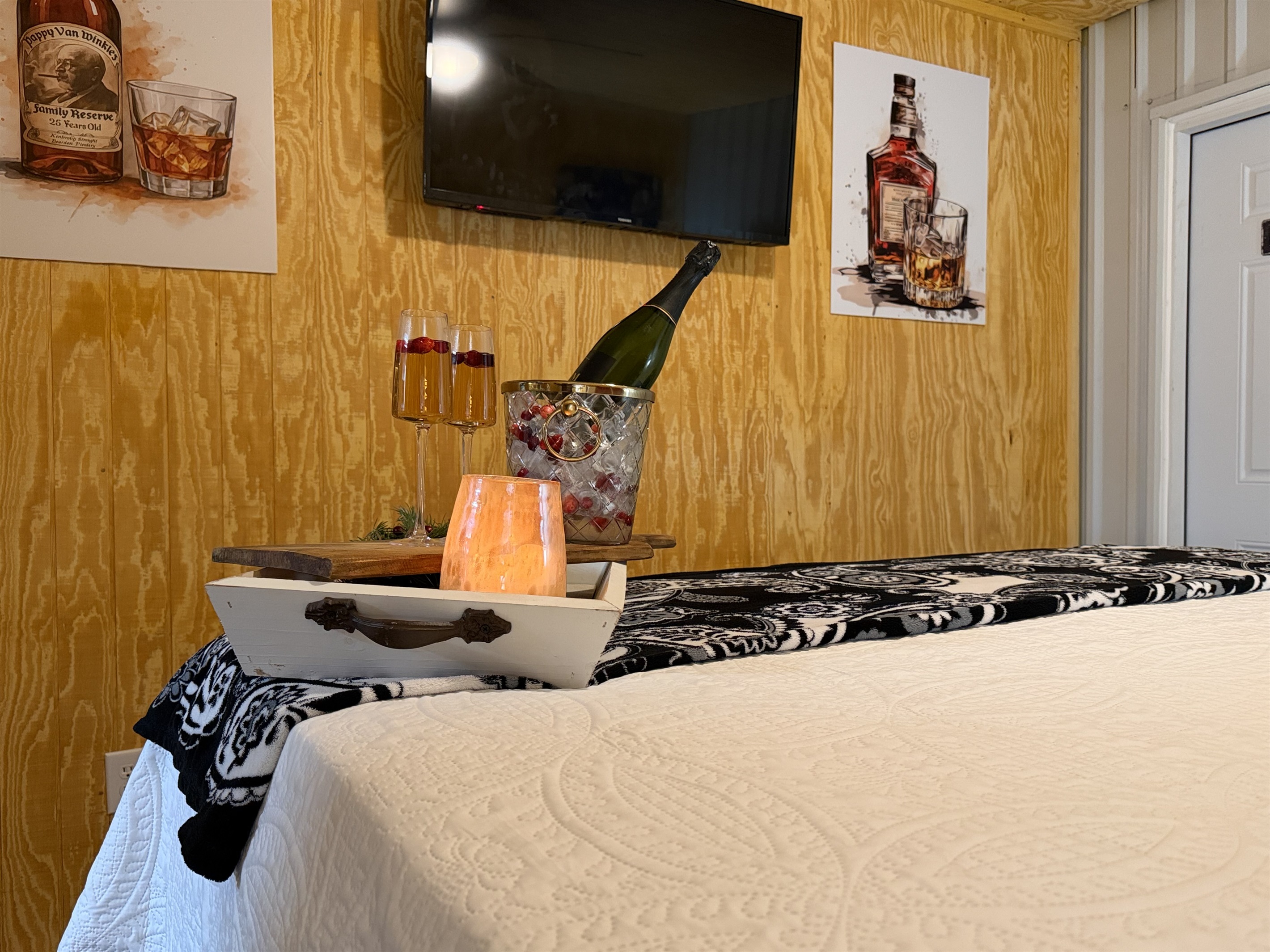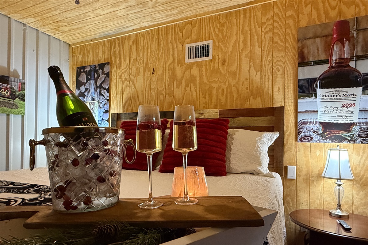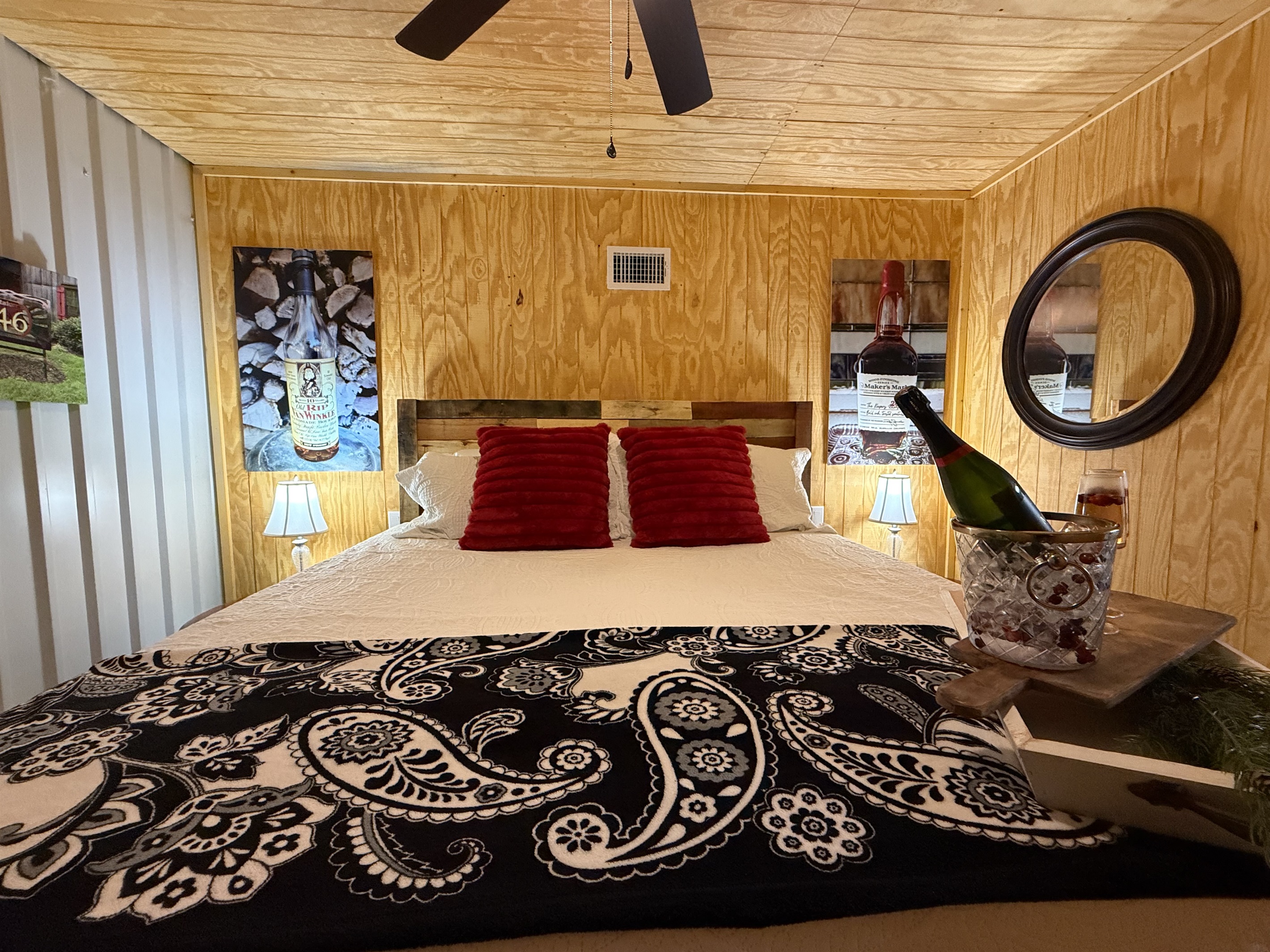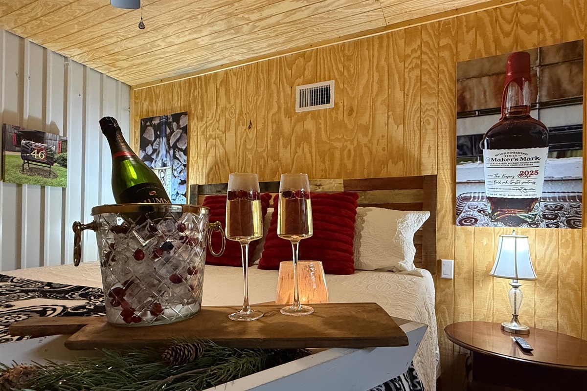 2 Bedrooms • 1 Bathroom 1 Bath • Sleeps 3-6Welcome to Chateau Bourbon - an extraordinary escape for bourbon enthusiasts and those seeking a truly unique Texas getaway! This one-of-a-kind property combines luxurious accommodations with an impressive whiskey lounge experience, complete with a stunning backlit bourbon display, private cigar room, massage chair, and outdoor relaxation spaces. Perfect for couples, small groups, or anyone looking for an elevated, experiential stay.
