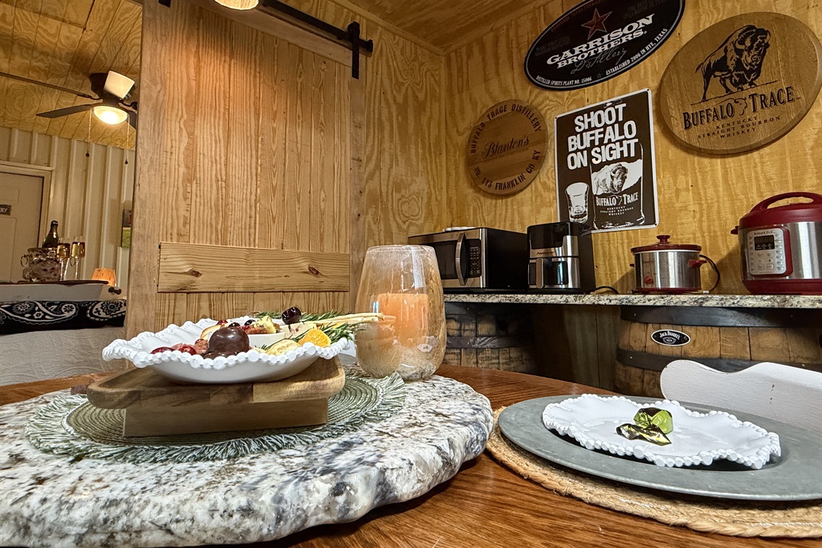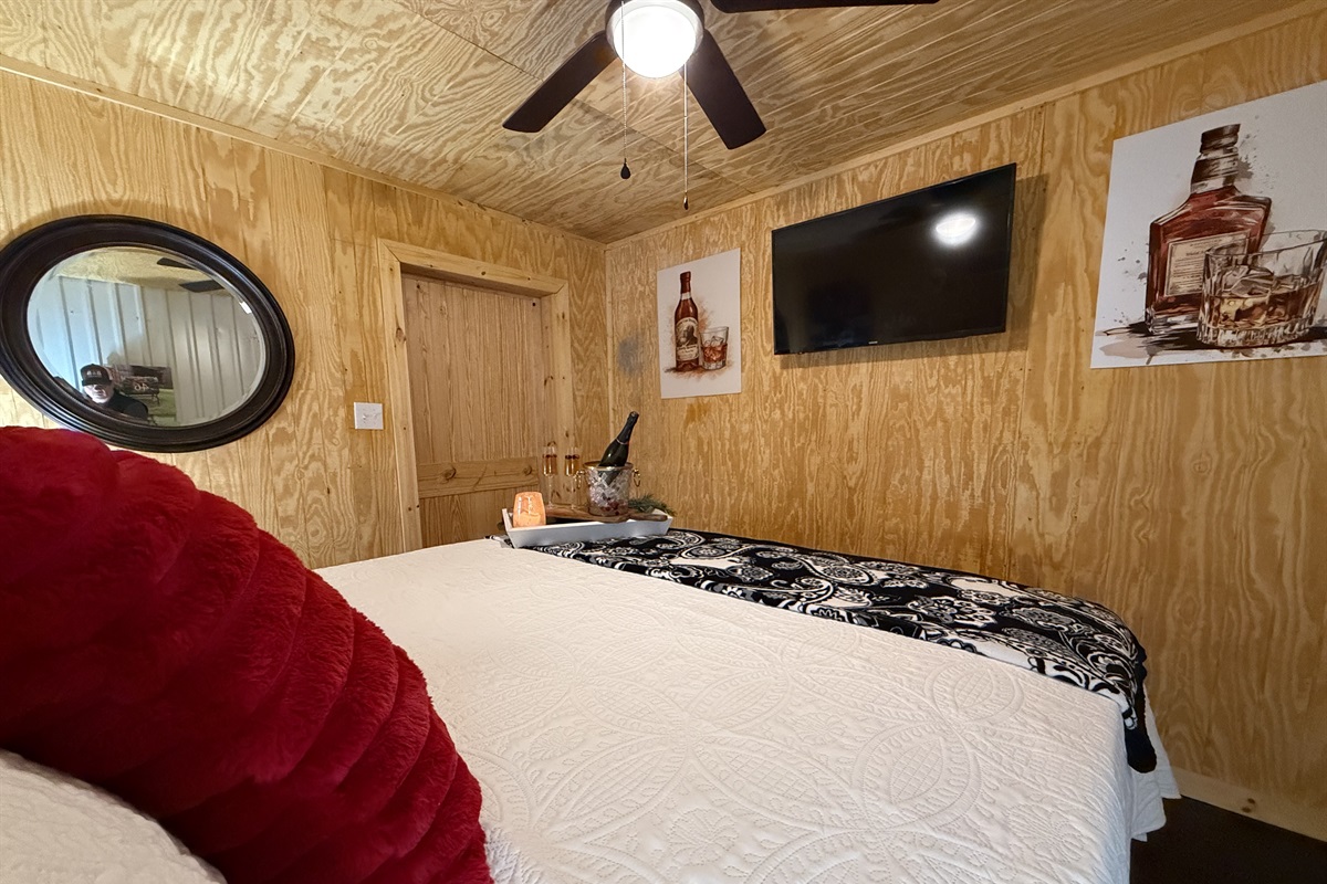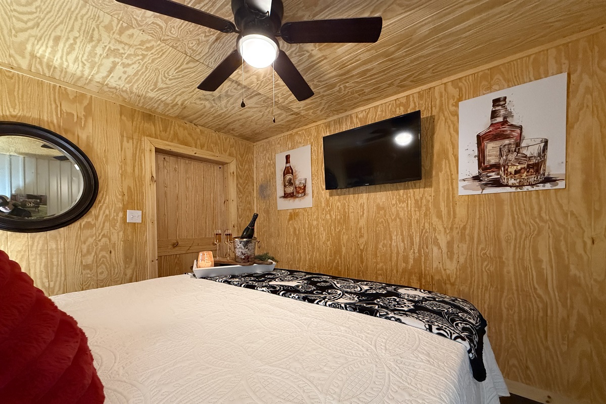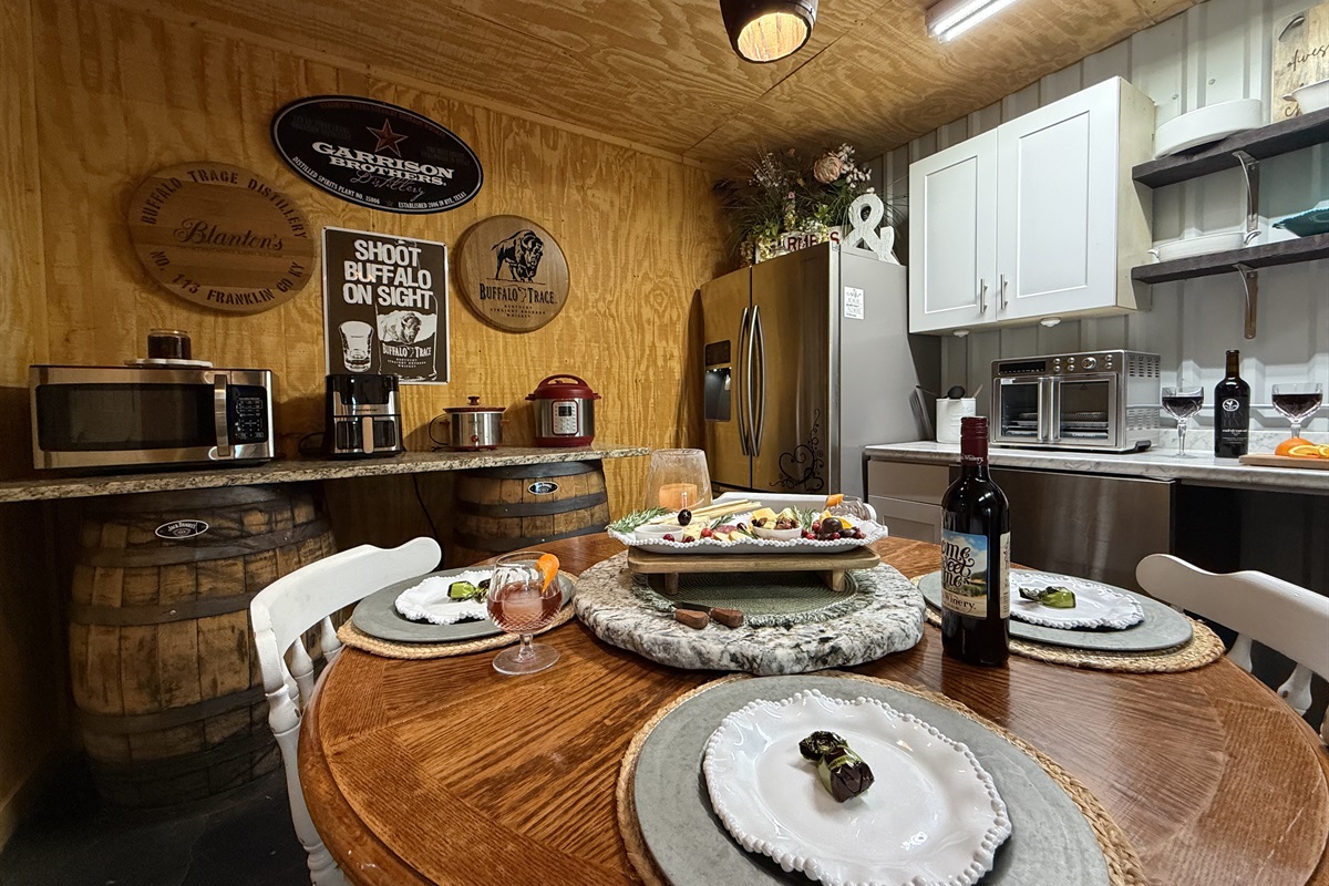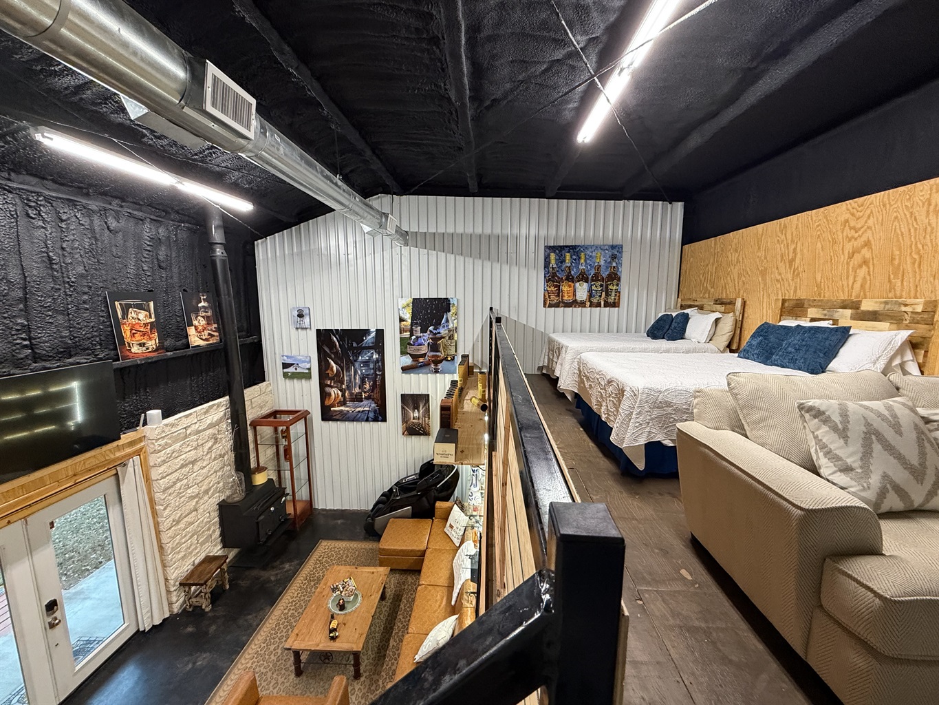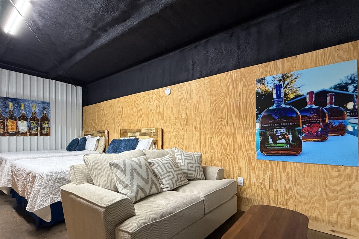 2 Bedrooms • 1 Bathroom 1 Bath • Sleeps 3-6Welcome to Chateau Bourbon - an extraordinary escape for bourbon enthusiasts and those seeking a truly unique Texas getaway! This one-of-a-kind property combines luxurious accommodations with an impressive whiskey lounge experience, complete with a stunning backlit bourbon display, private cigar room, massage chair, and outdoor relaxation spaces. Perfect for couples, small groups, or anyone looking for an elevated, experiential stay.