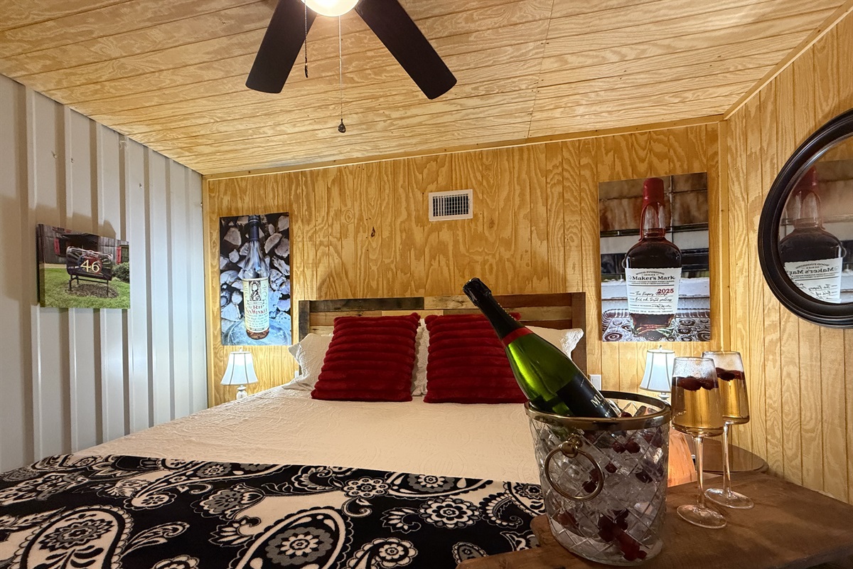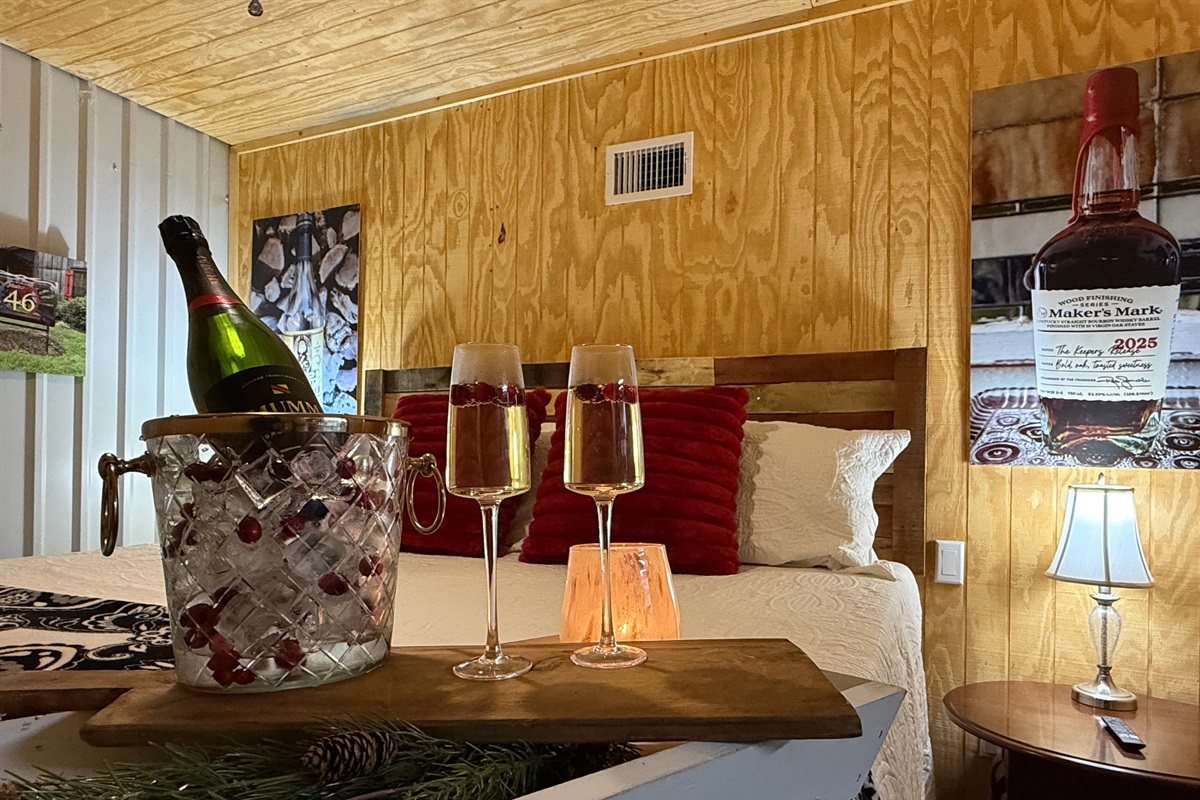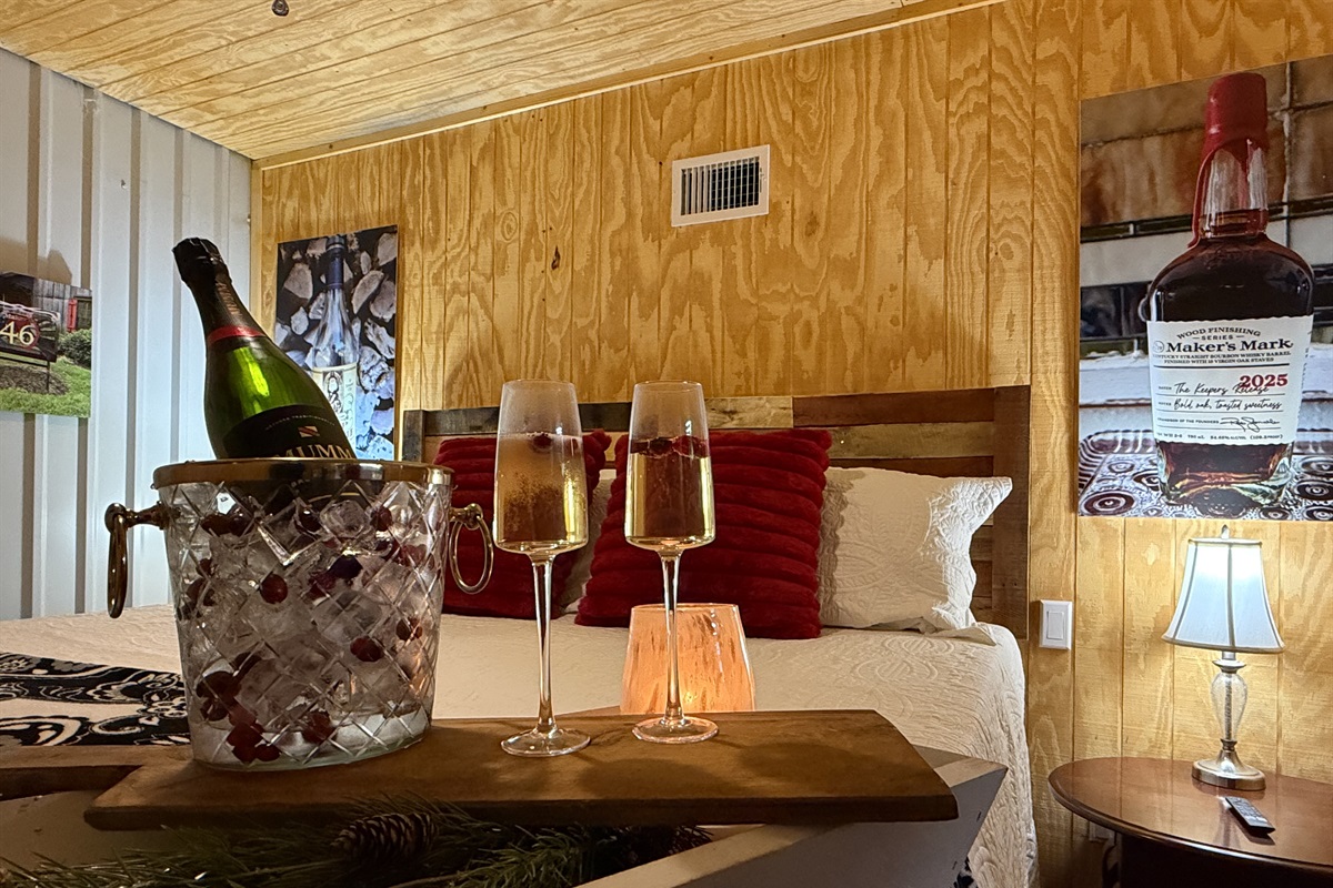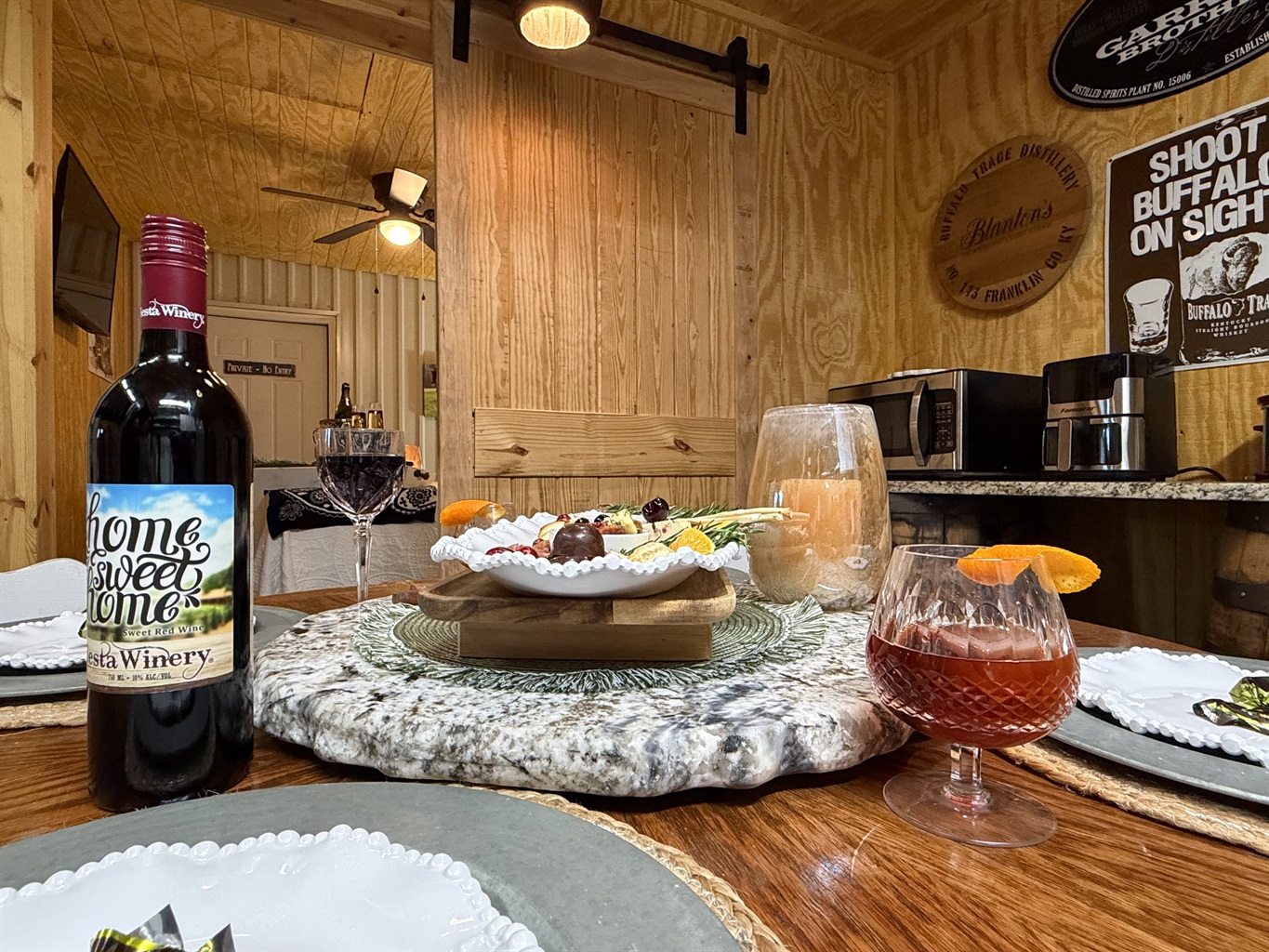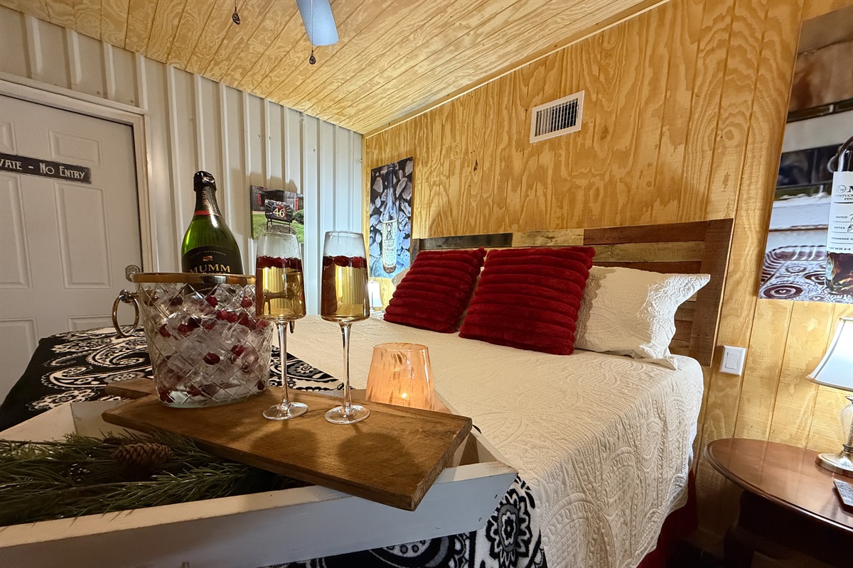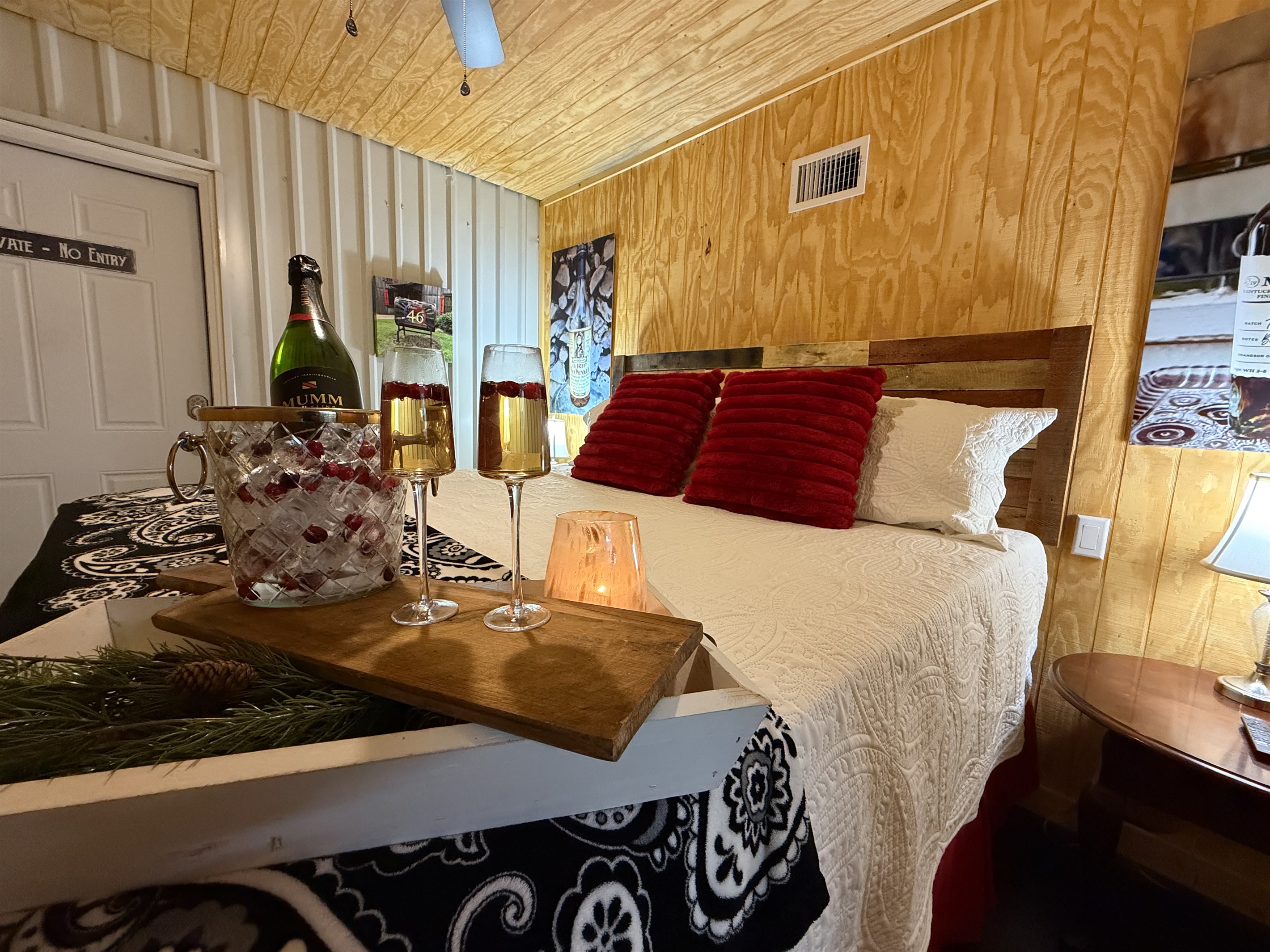 2 Bedrooms • 1 Bathroom 1 Bath • Sleeps 3-6Welcome to Chateau Bourbon - an extraordinary escape for bourbon enthusiasts and those seeking a truly unique Texas getaway! This one-of-a-kind property combines luxurious accommodations with an impressive whiskey lounge experience, complete with a stunning backlit bourbon display, private cigar room, massage chair, and outdoor relaxation spaces. Perfect for couples, small groups, or anyone looking for an elevated, experiential stay.