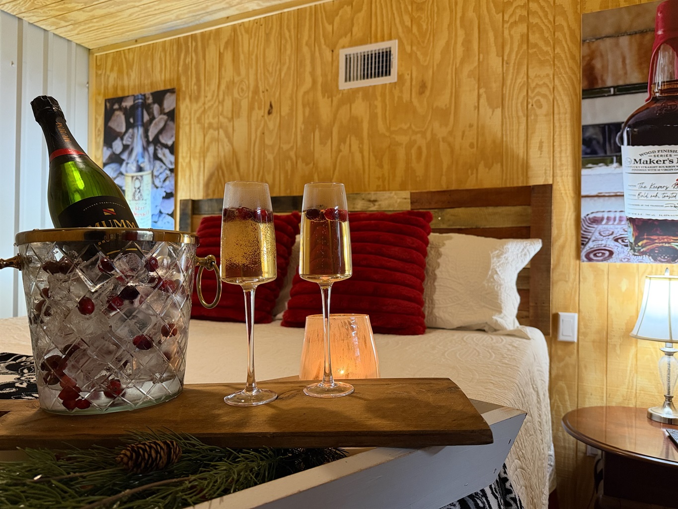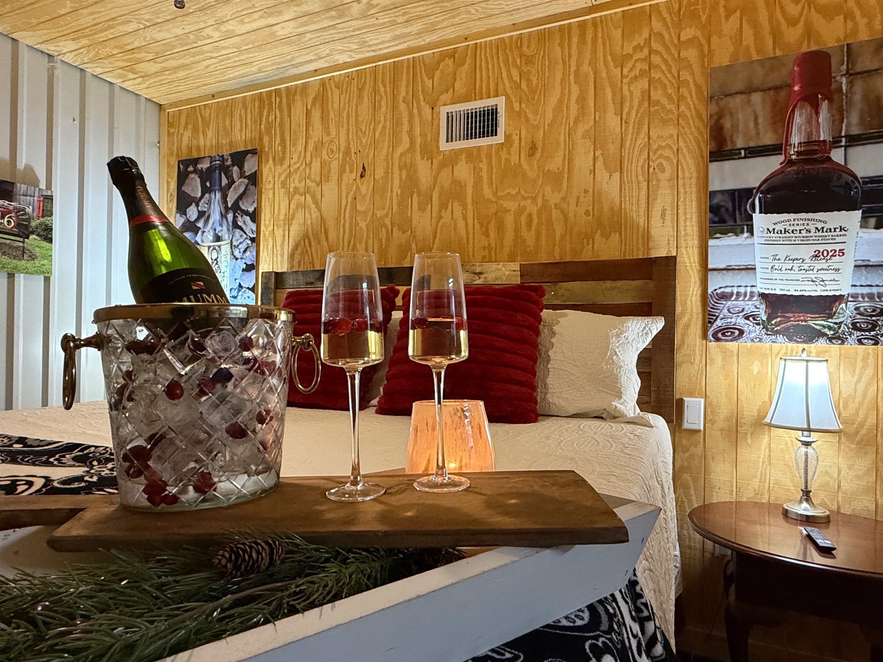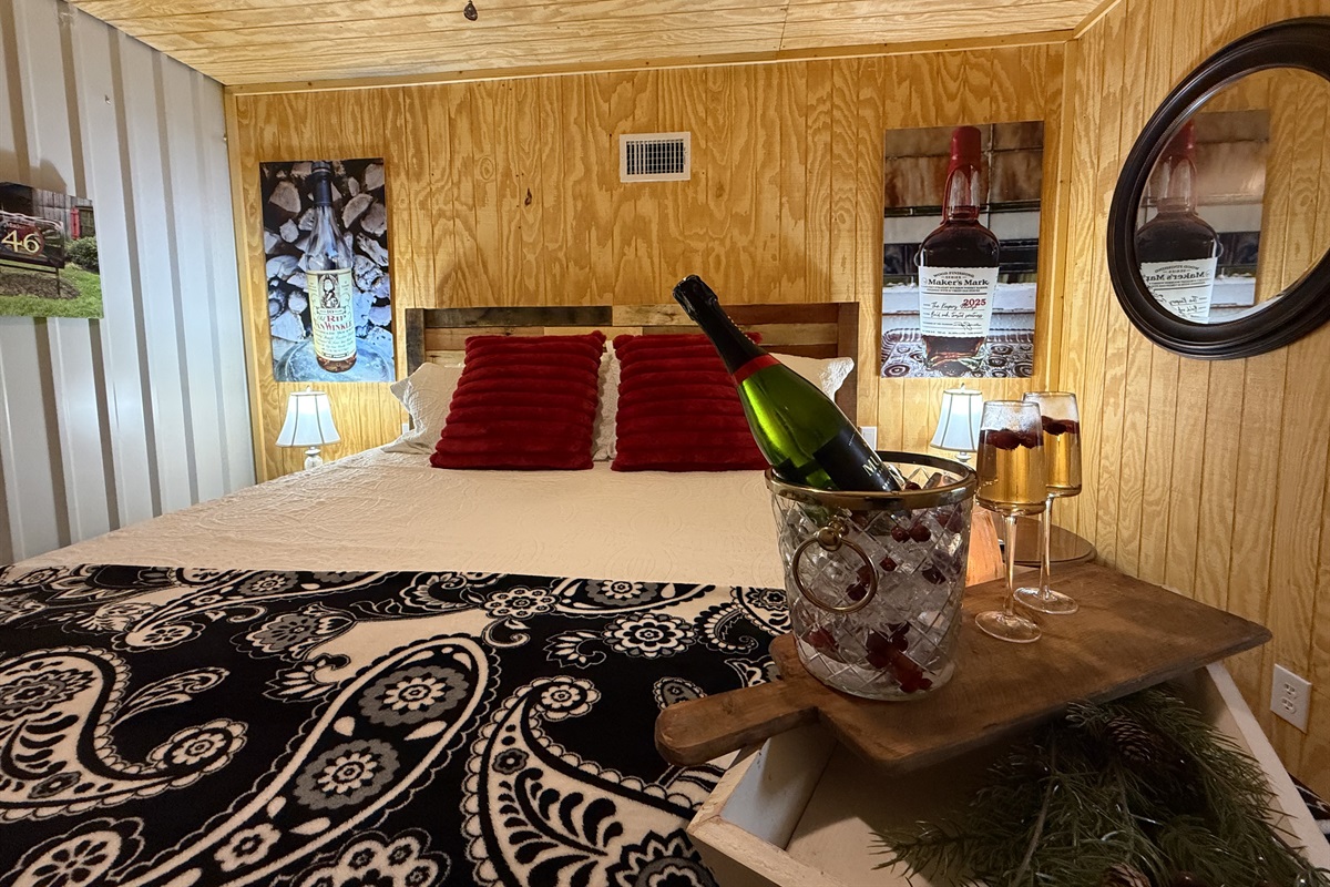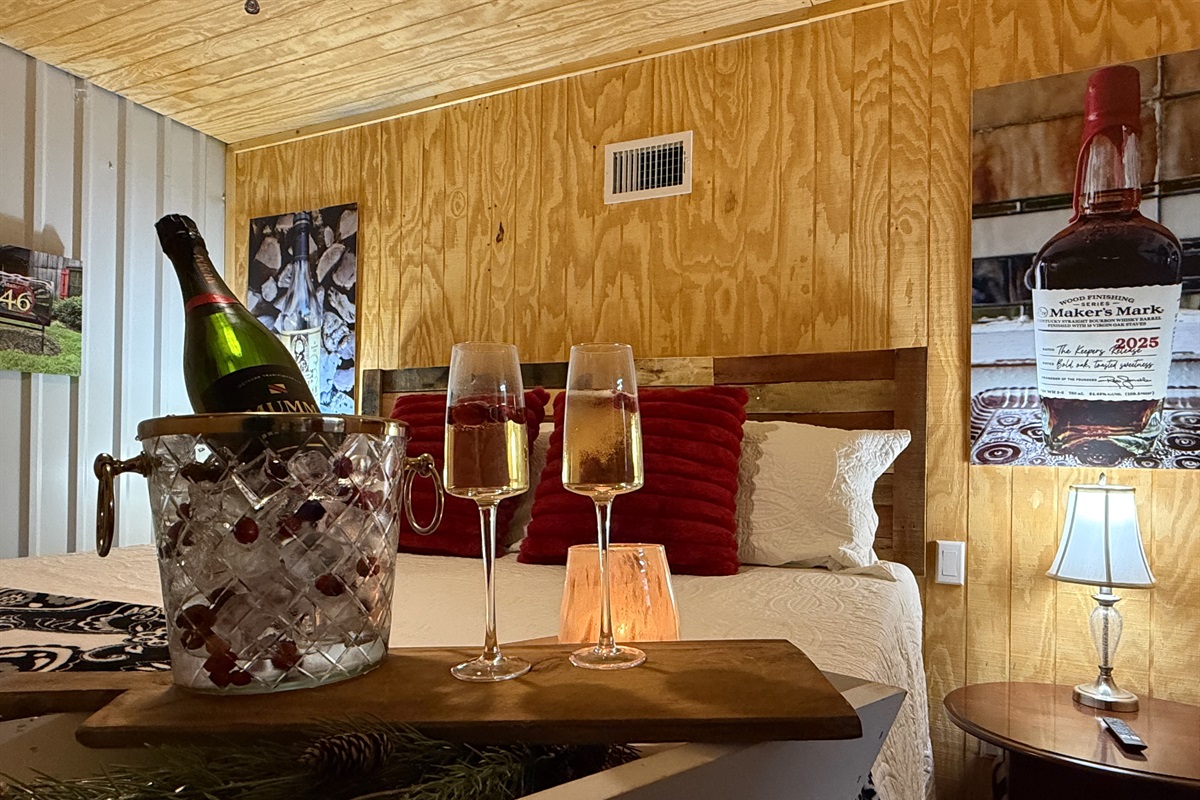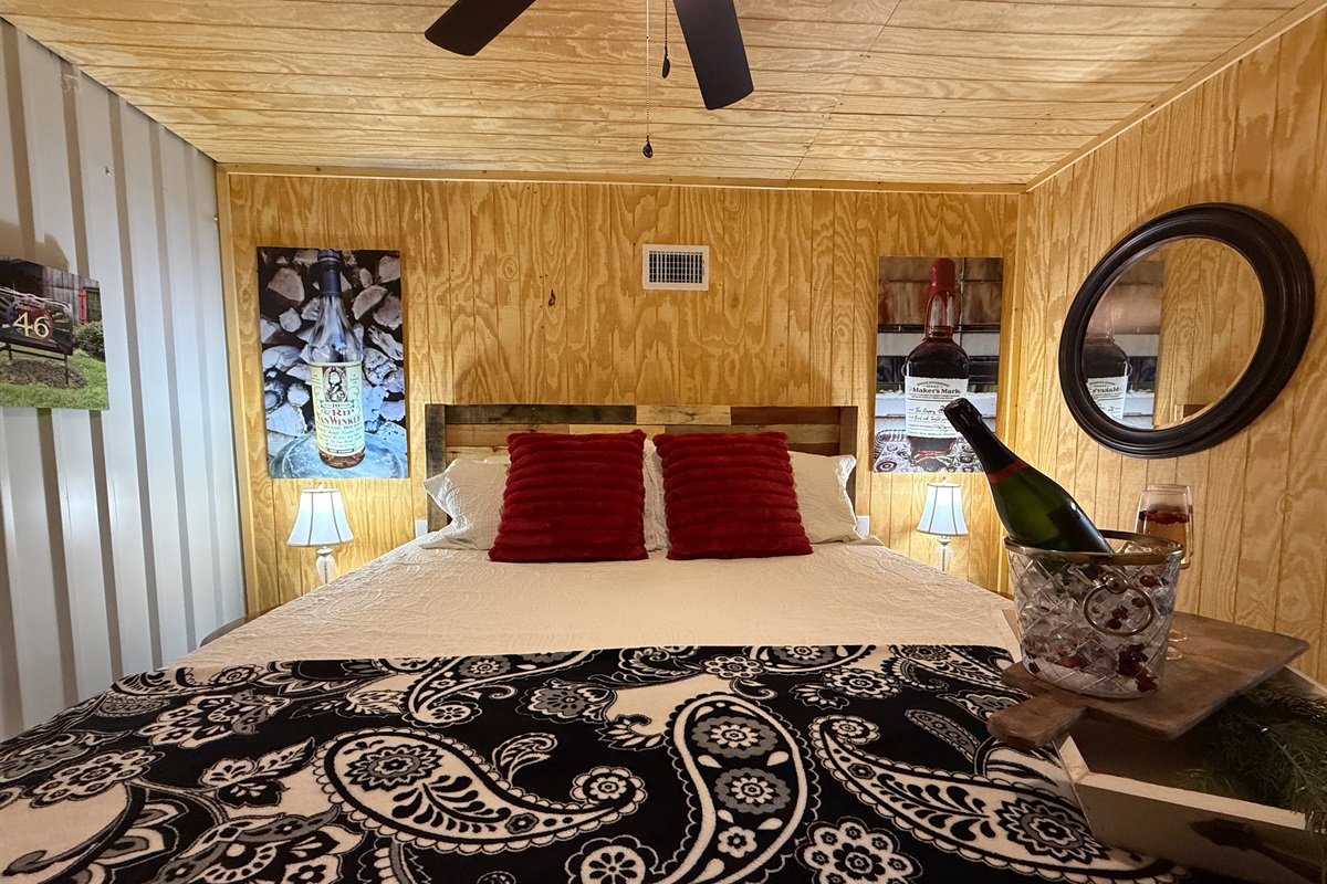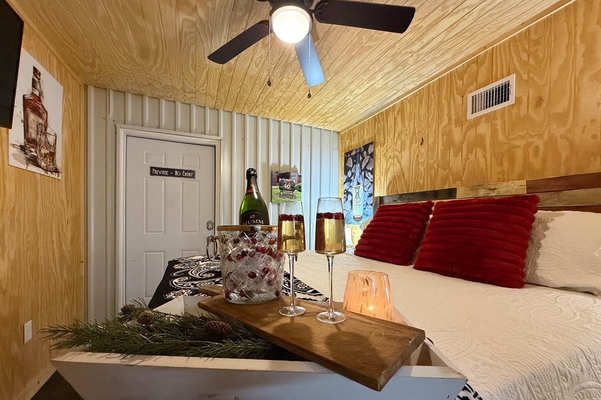 2 Bedrooms • 1 Bathroom 1 Bath • Sleeps 3-6Welcome to Chateau Bourbon - an extraordinary escape for bourbon enthusiasts and those seeking a truly unique Texas getaway! This one-of-a-kind property combines luxurious accommodations with an impressive whiskey lounge experience, complete with a stunning backlit bourbon display, private cigar room, massage chair, and outdoor relaxation spaces. Perfect for couples, small groups, or anyone looking for an elevated, experiential stay.