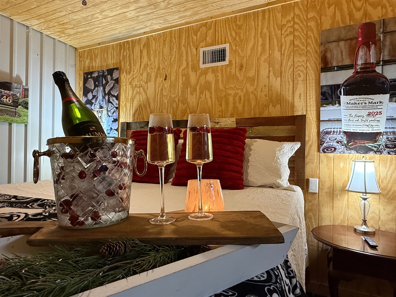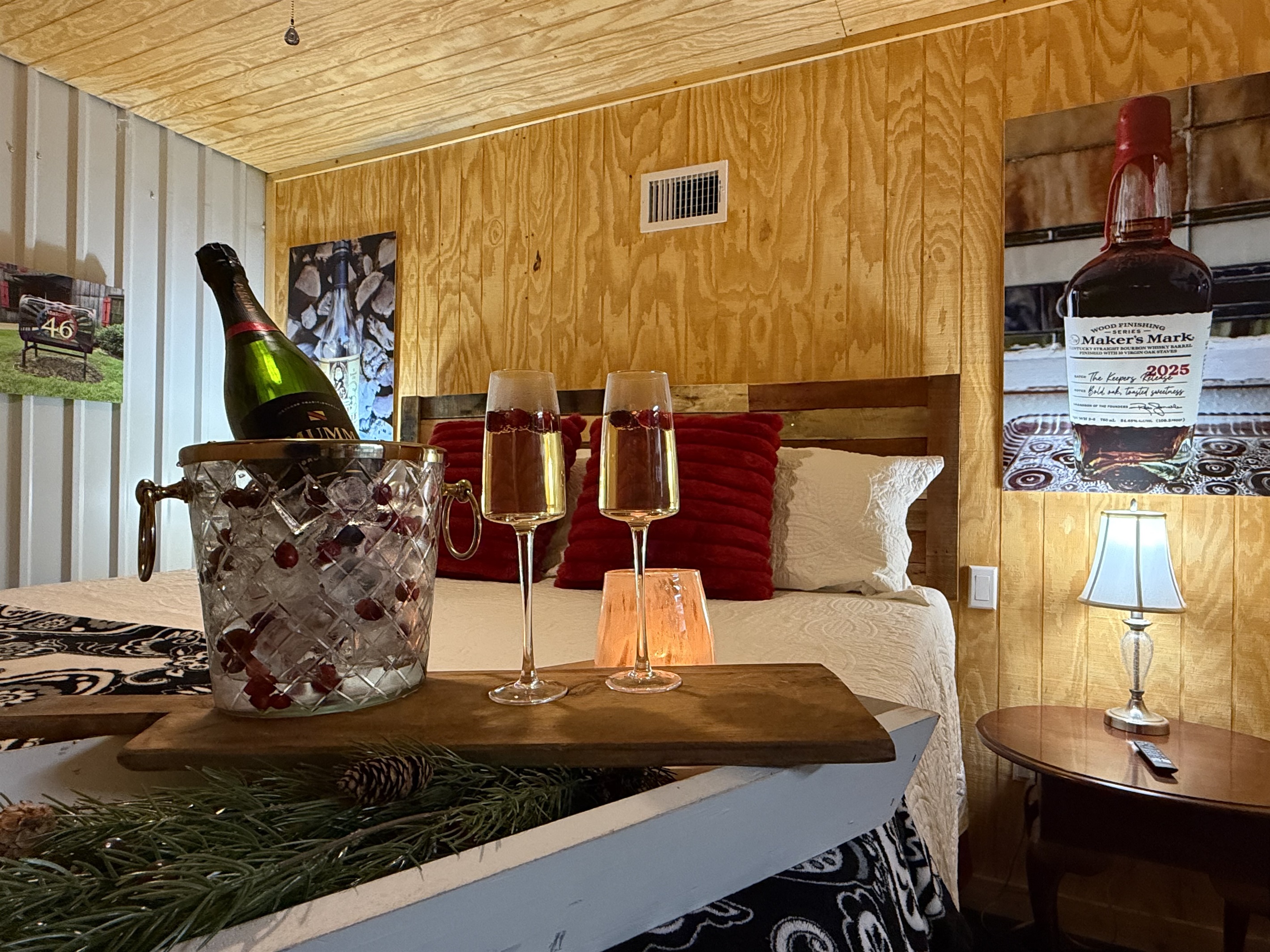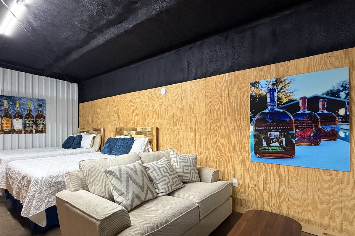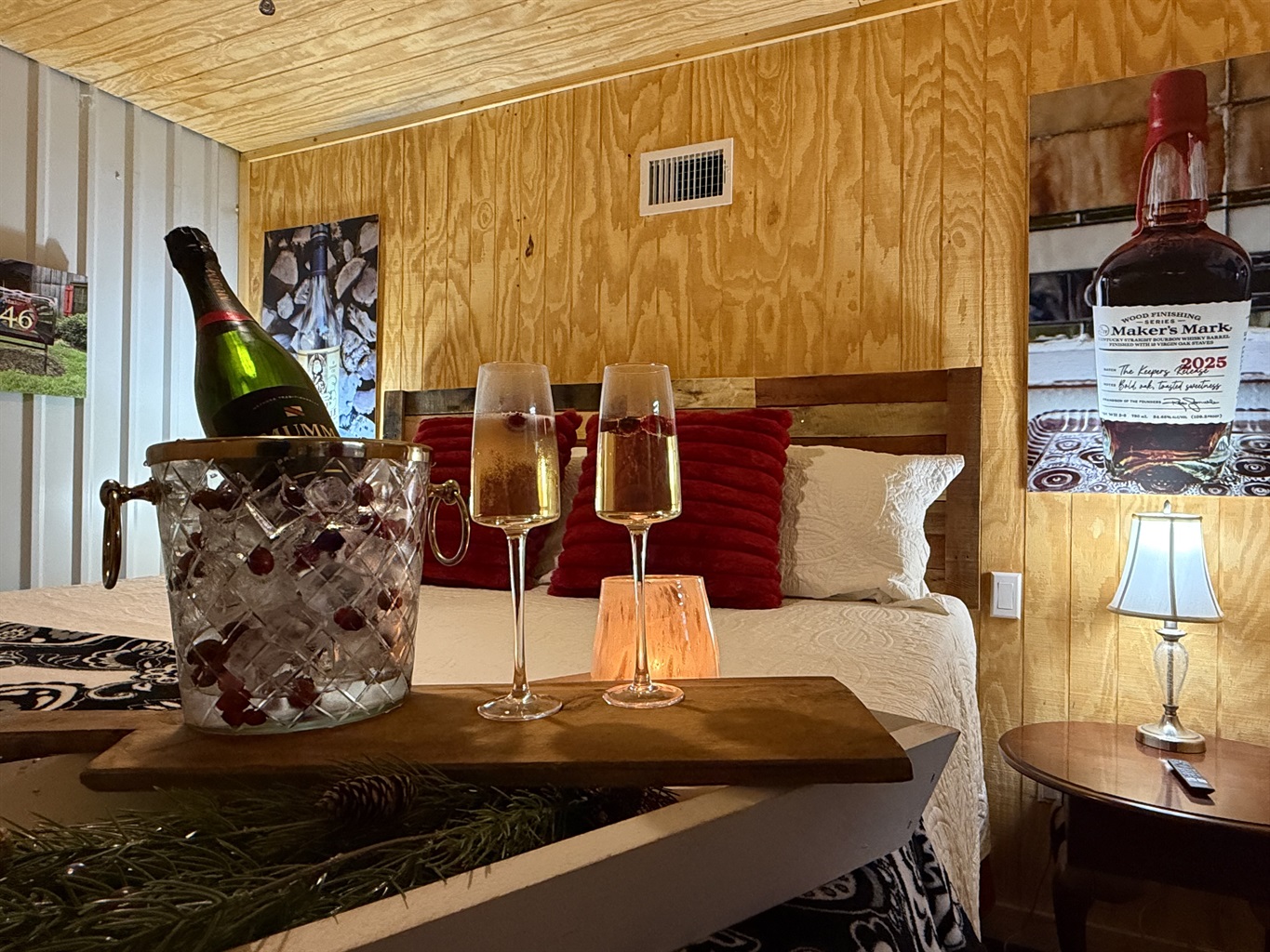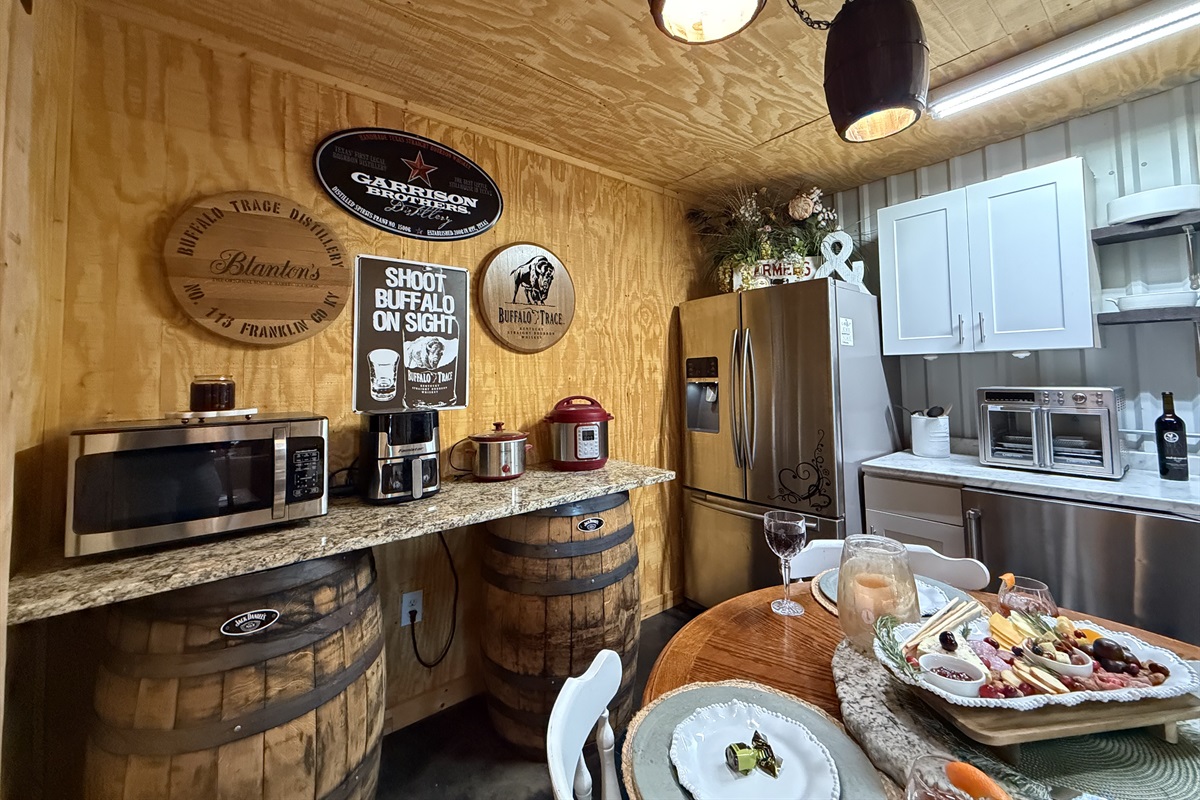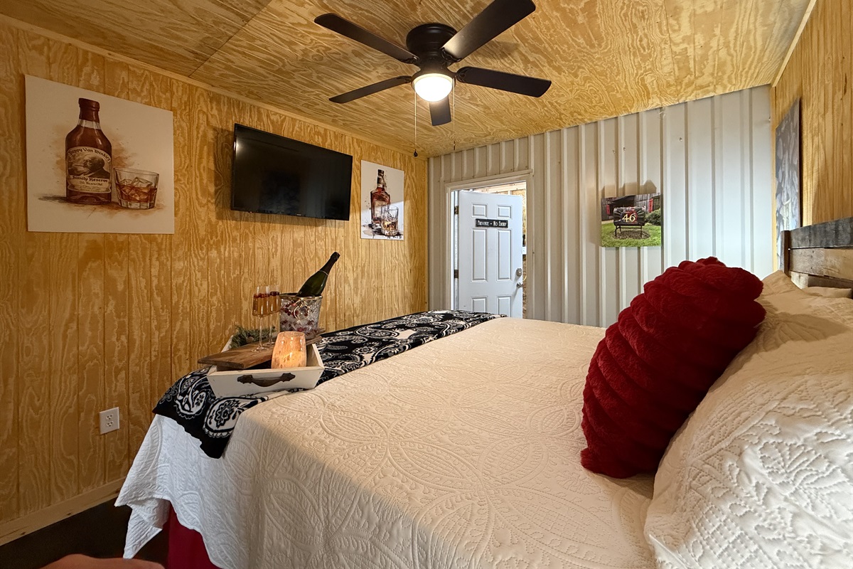 2 Bedrooms • 1 Bathroom 1 Bath • Sleeps 3-6Welcome to Chateau Bourbon - an extraordinary escape for bourbon enthusiasts and those seeking a truly unique Texas getaway! This one-of-a-kind property combines luxurious accommodations with an impressive whiskey lounge experience, complete with a stunning backlit bourbon display, private cigar room, massage chair, and outdoor relaxation spaces. Perfect for couples, small groups, or anyone looking for an elevated, experiential stay.