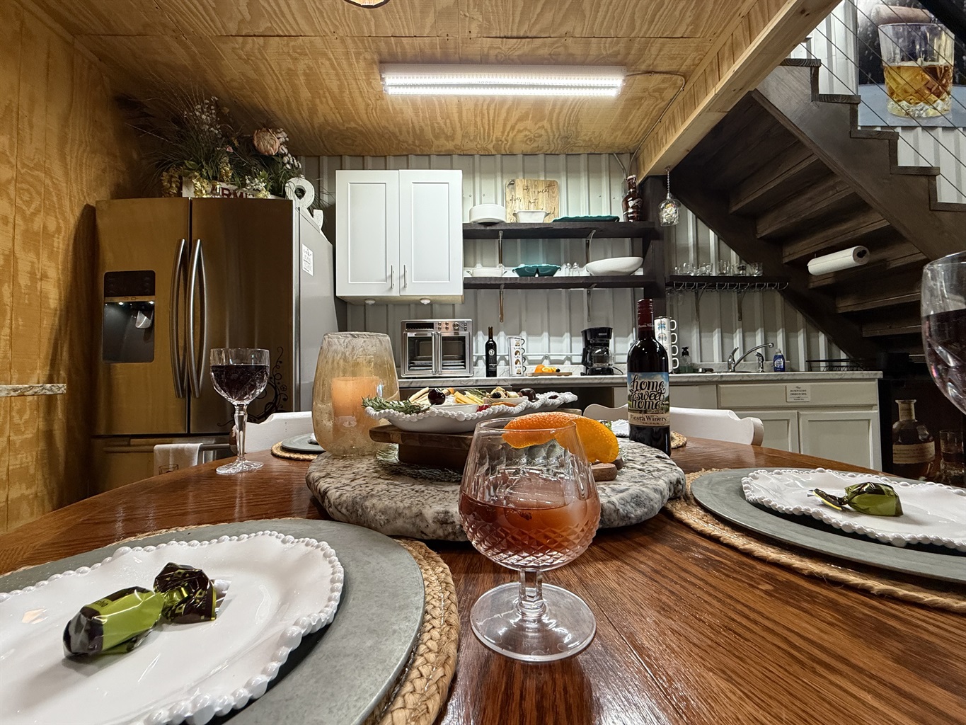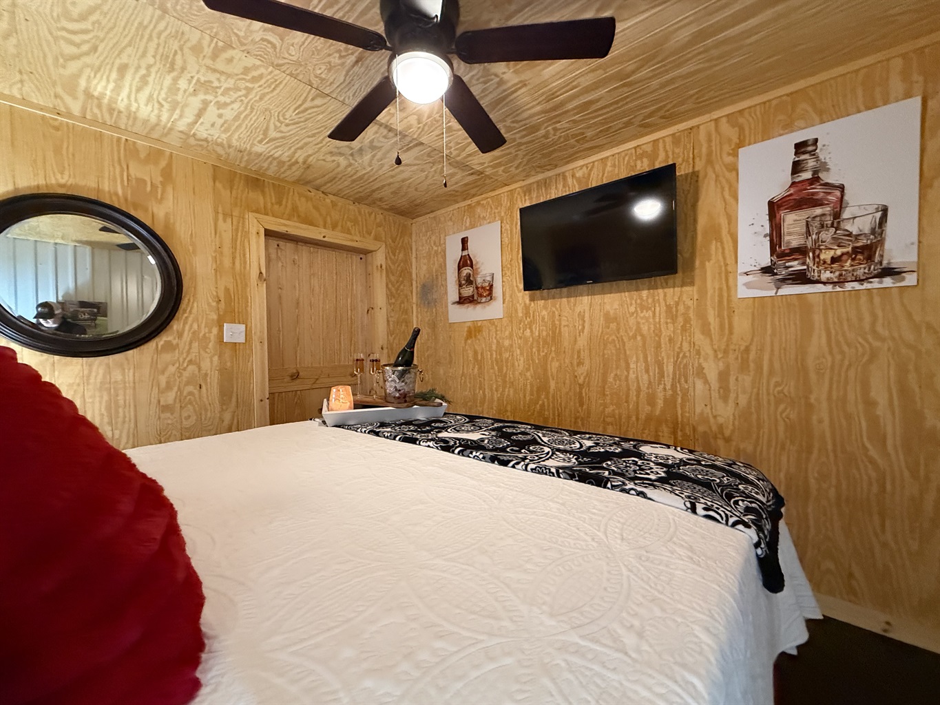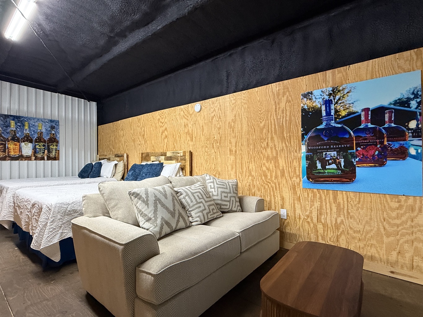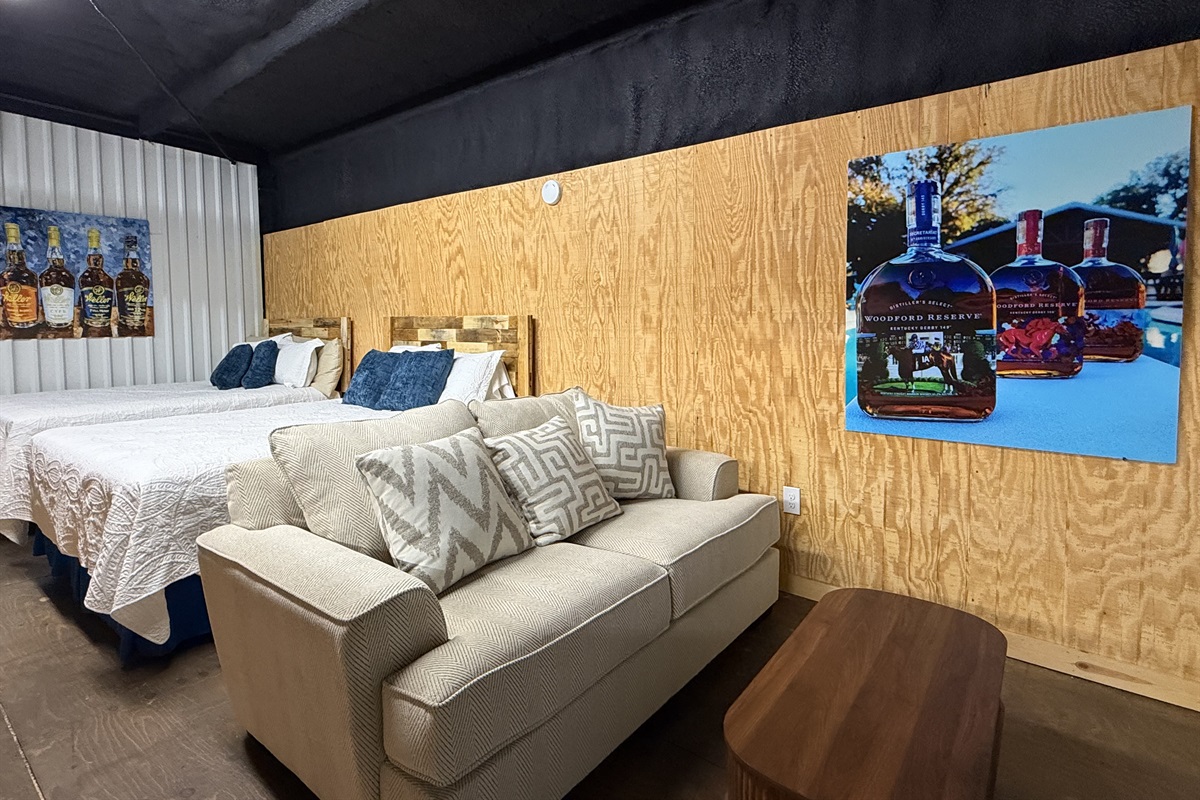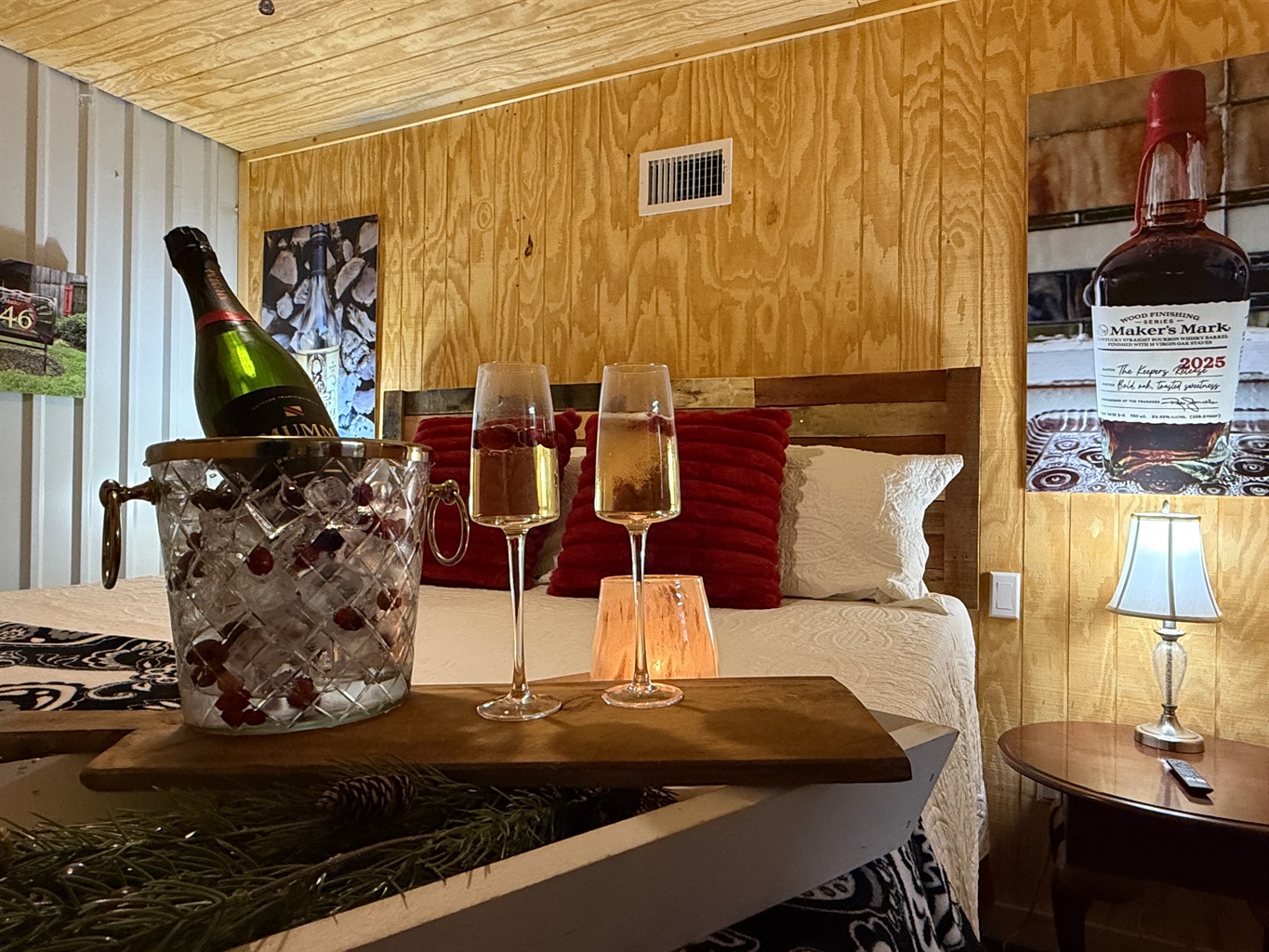 2 Bedrooms • 1 Bathroom 1 Bath • Sleeps 3-6Welcome to Chateau Bourbon - an extraordinary escape for bourbon enthusiasts and those seeking a truly unique Texas getaway! This one-of-a-kind property combines luxurious accommodations with an impressive whiskey lounge experience, complete with a stunning backlit bourbon display, private cigar room, massage chair, and outdoor relaxation spaces. Perfect for couples, small groups, or anyone looking for an elevated, experiential stay.