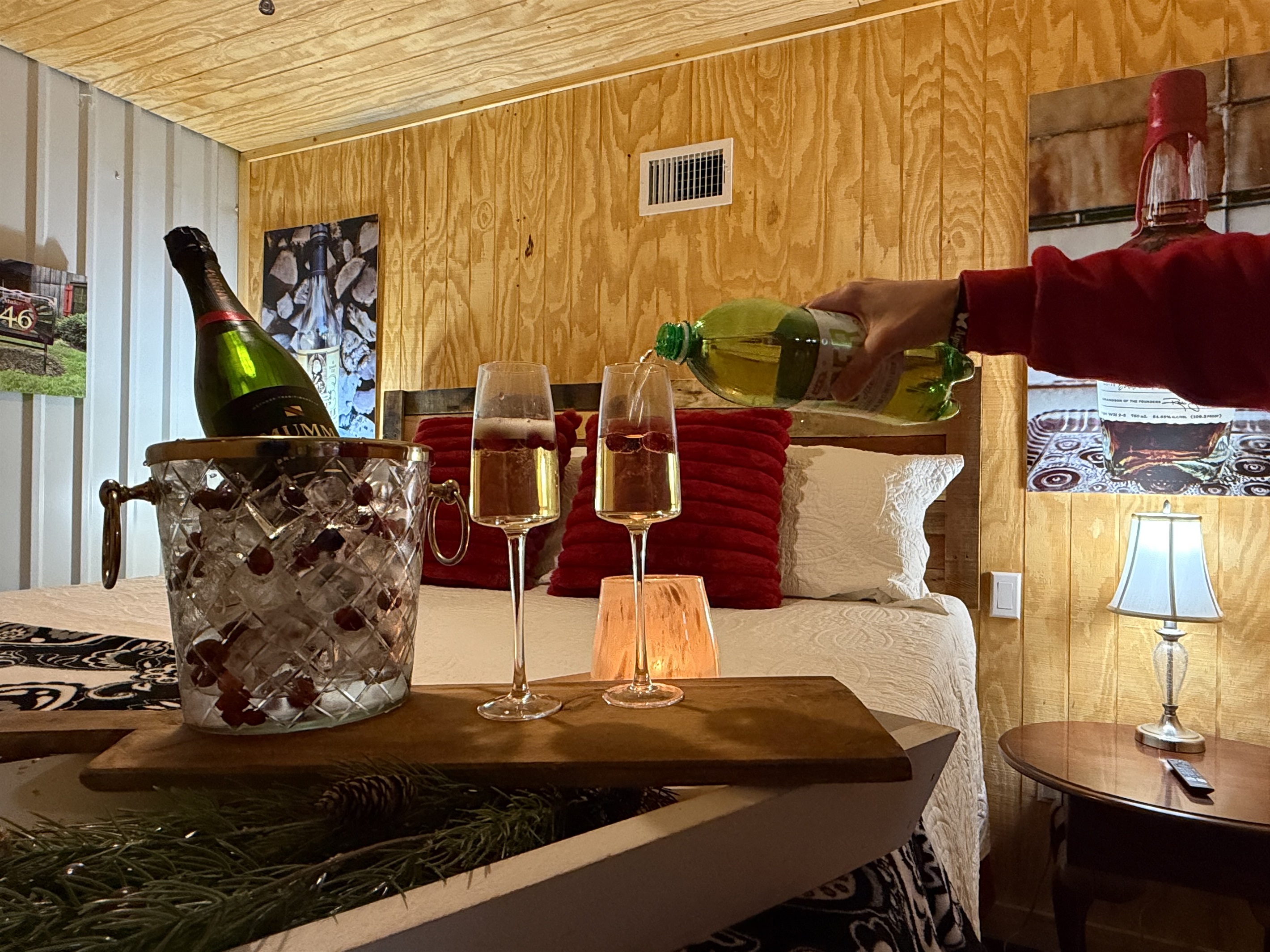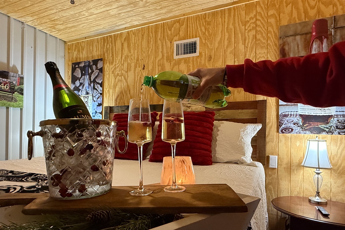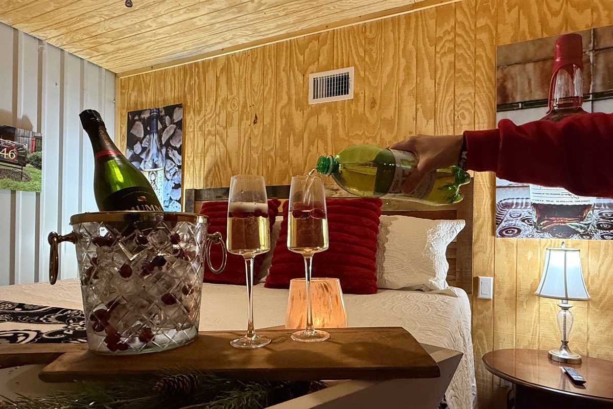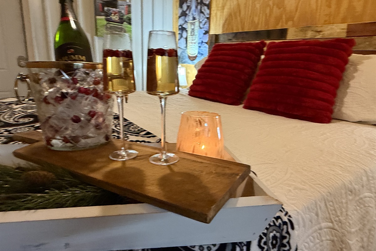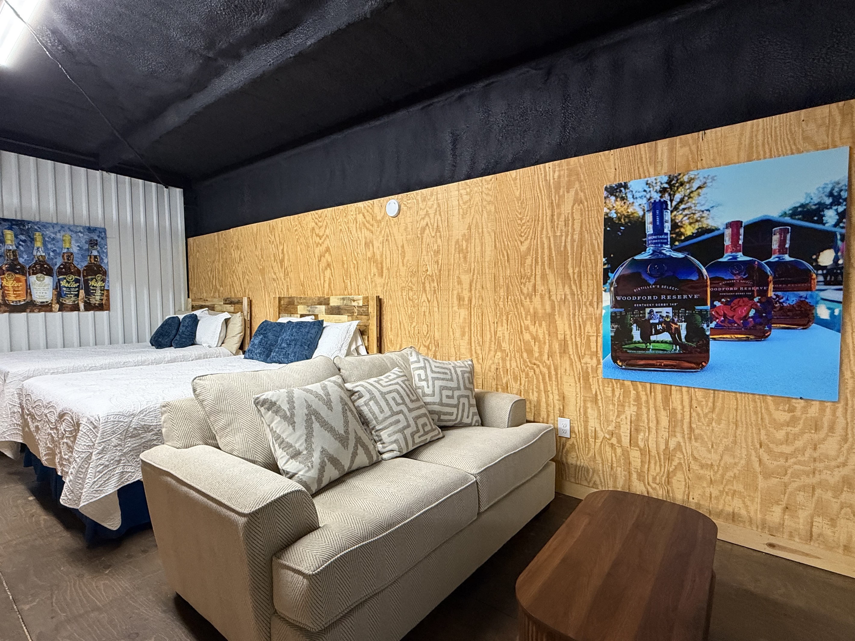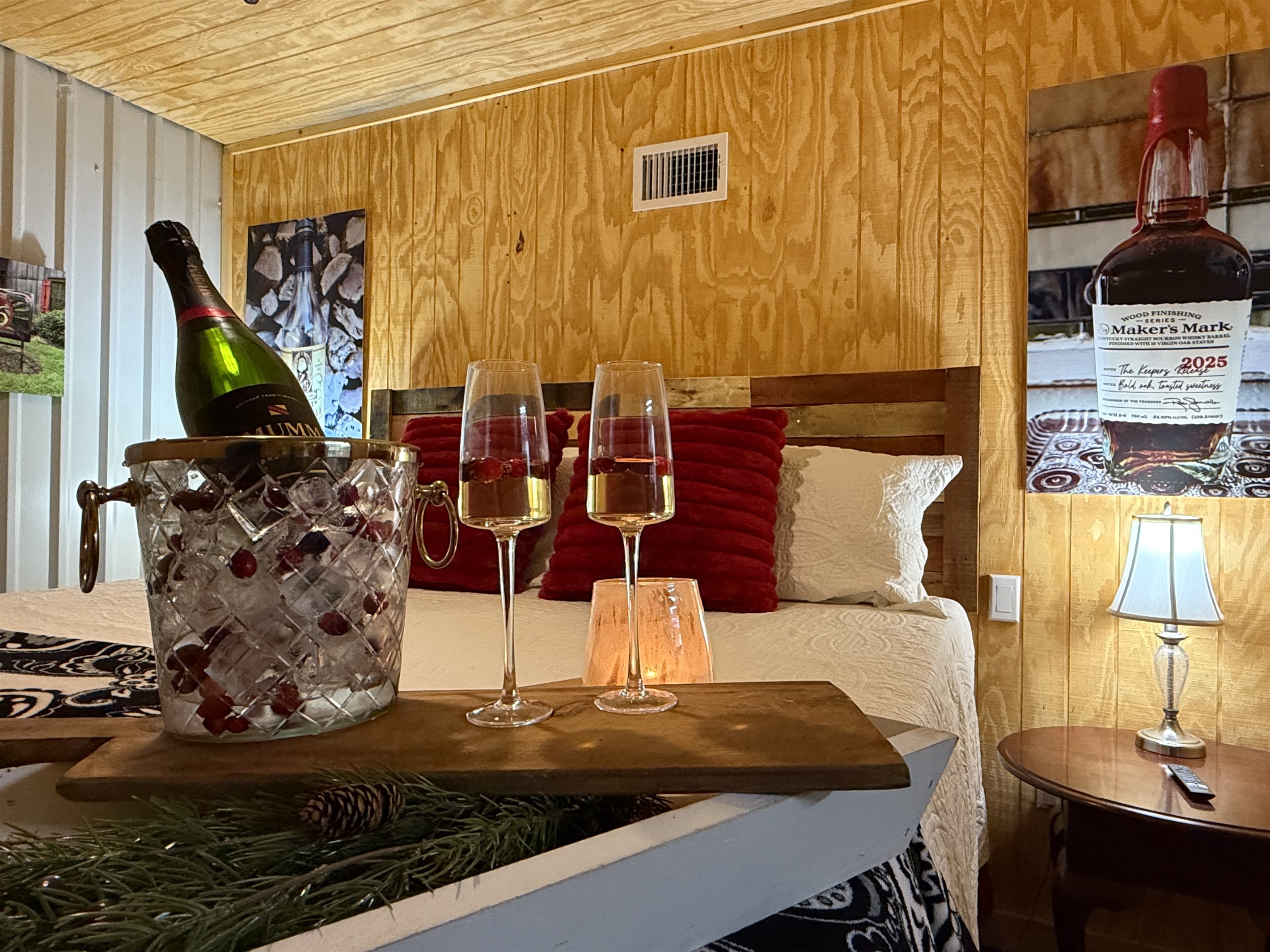 2 Bedrooms • 1 Bathroom 1 Bath • Sleeps 3-6Welcome to Chateau Bourbon - an extraordinary escape for bourbon enthusiasts and those seeking a truly unique Texas getaway! This one-of-a-kind property combines luxurious accommodations with an impressive whiskey lounge experience, complete with a stunning backlit bourbon display, private cigar room, massage chair, and outdoor relaxation spaces. Perfect for couples, small groups, or anyone looking for an elevated, experiential stay.