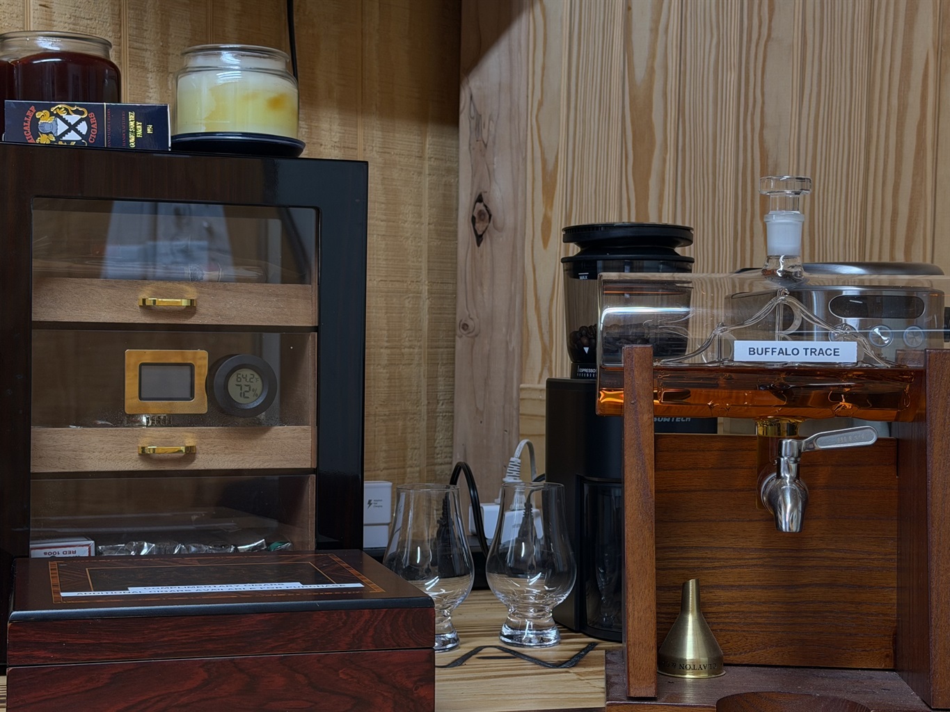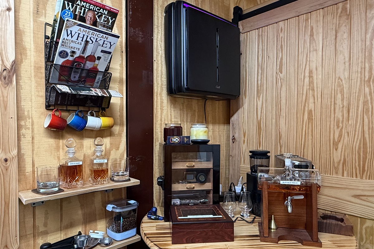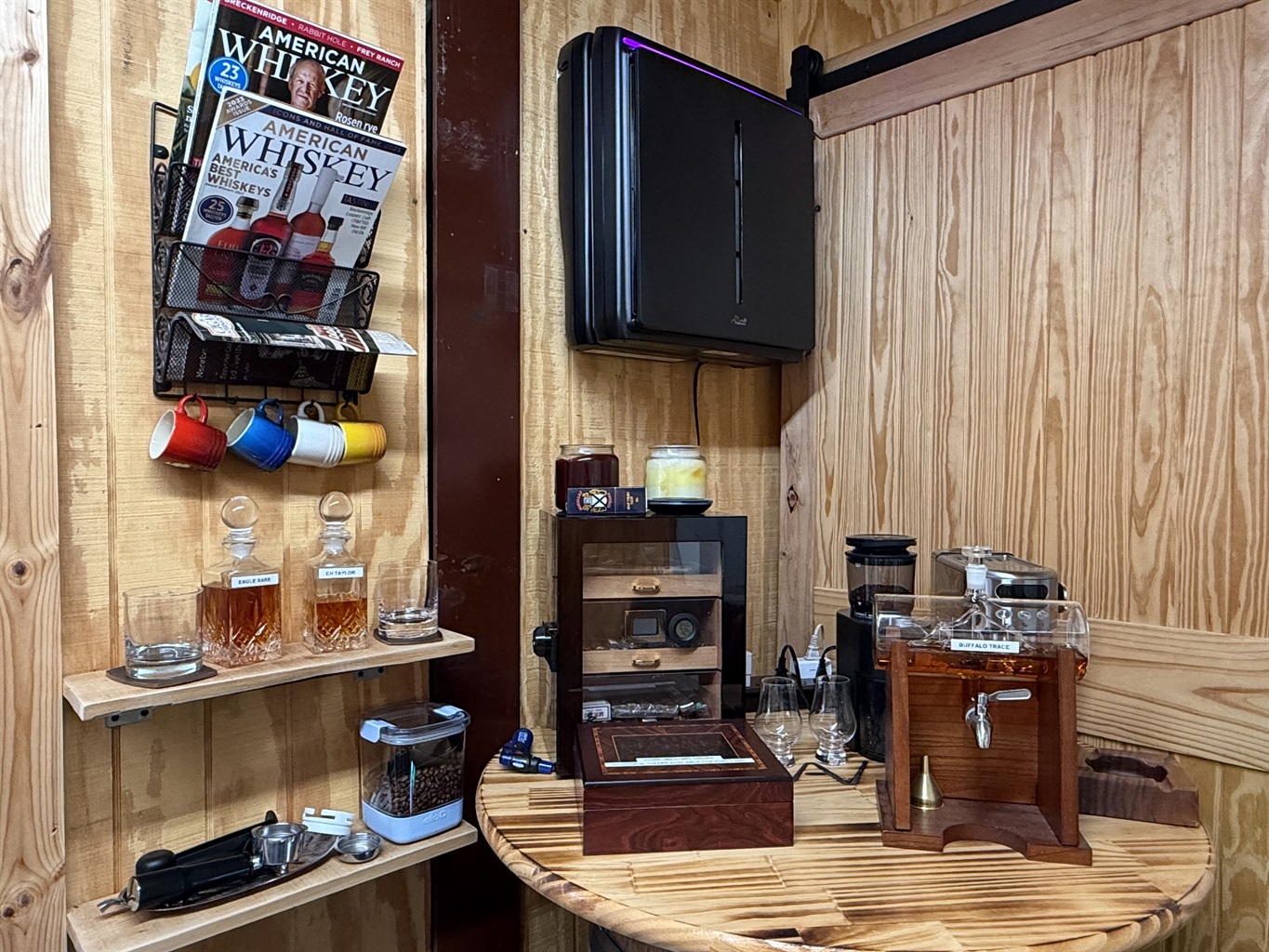 Special Features: Epic Bourbon Display Wall, Private Cigar Room, Massage Chair, Wood-Burning Fireplace