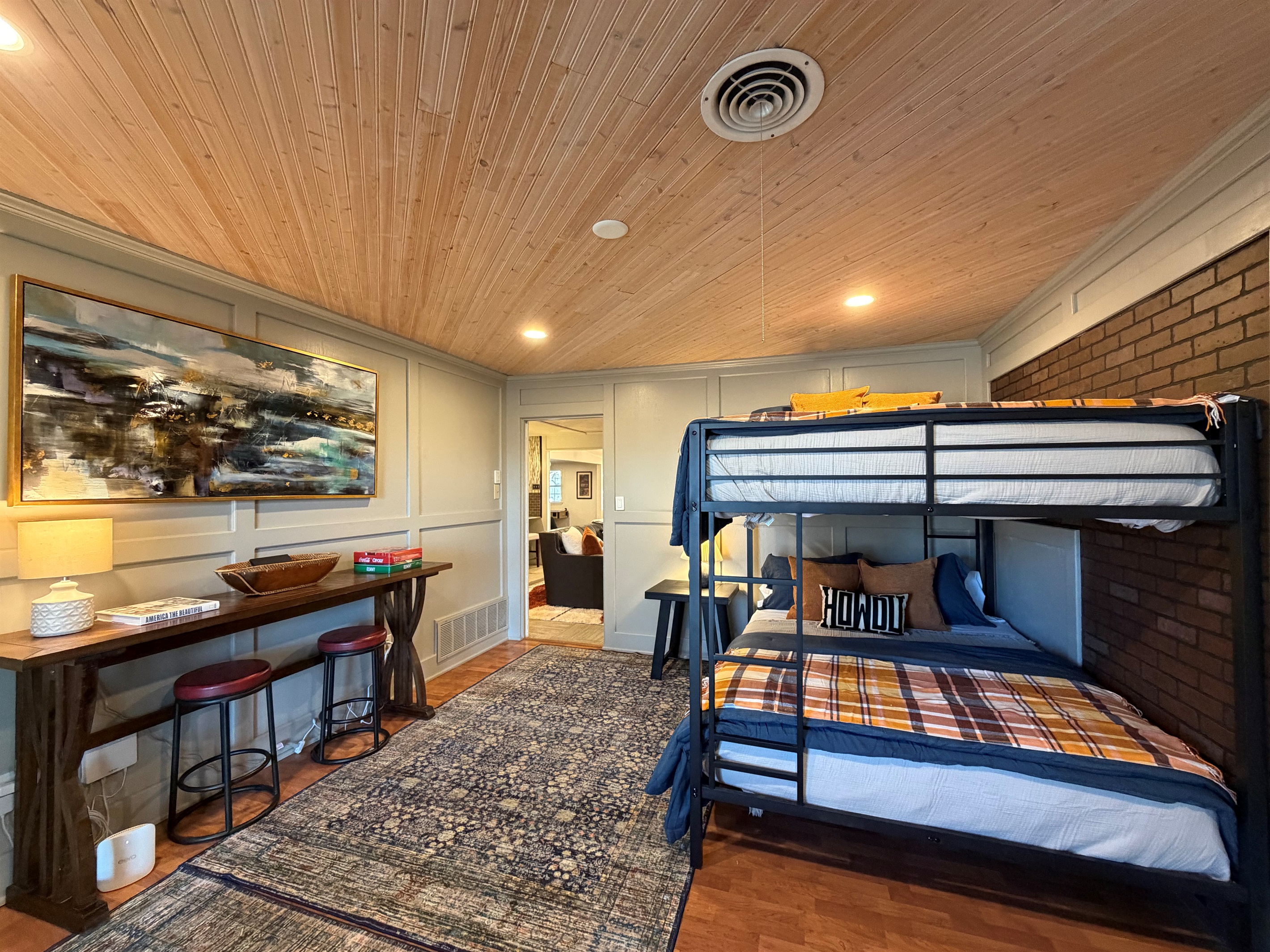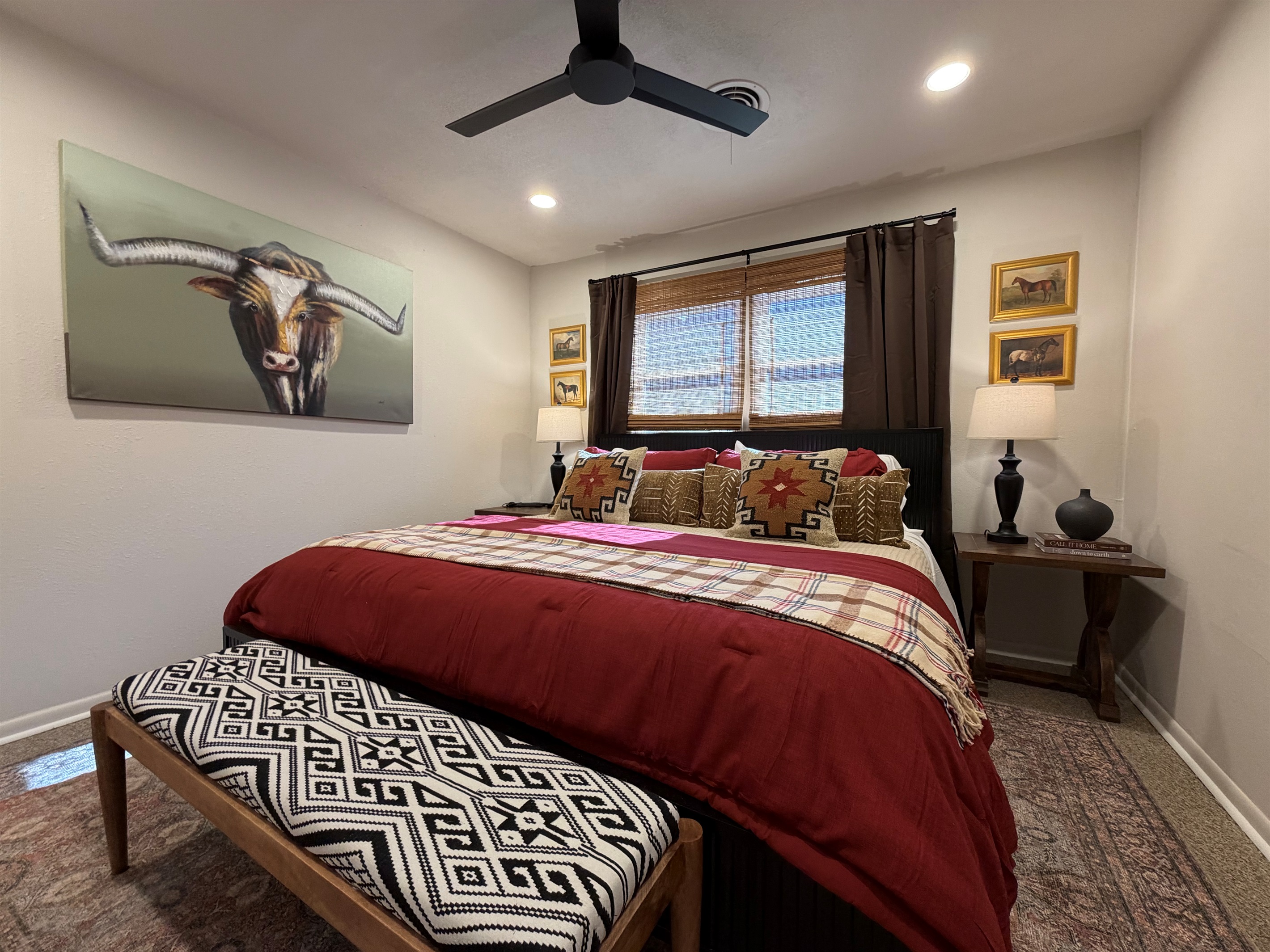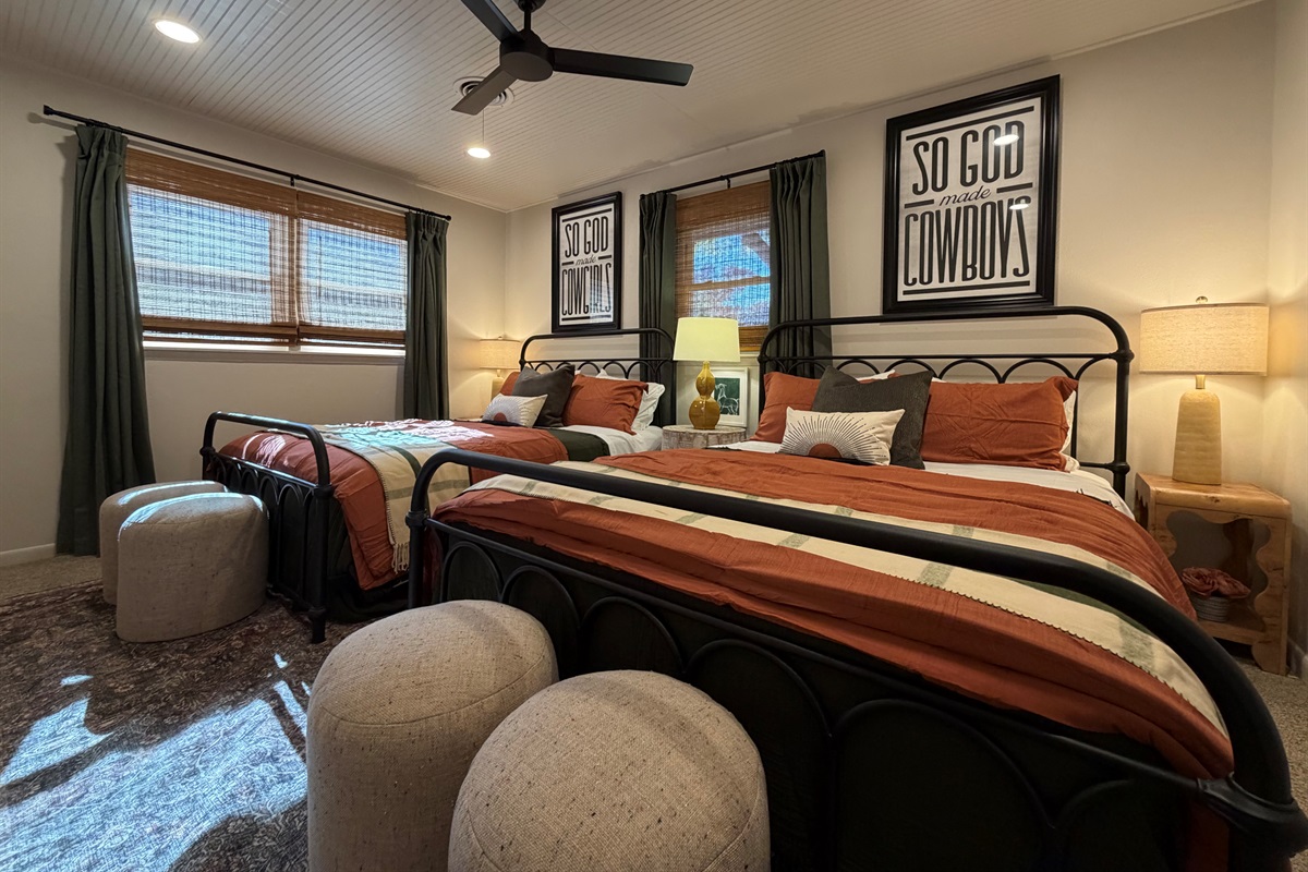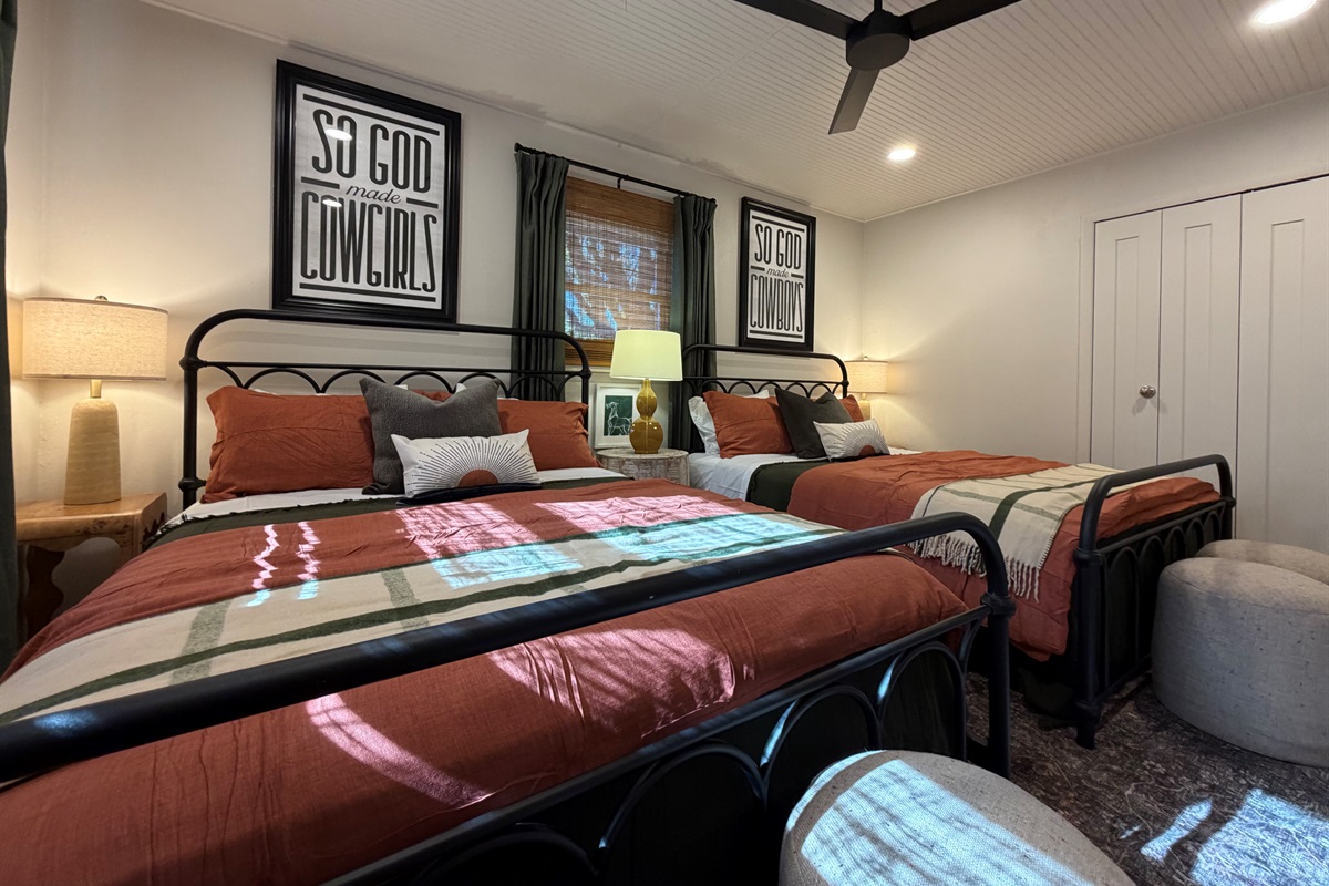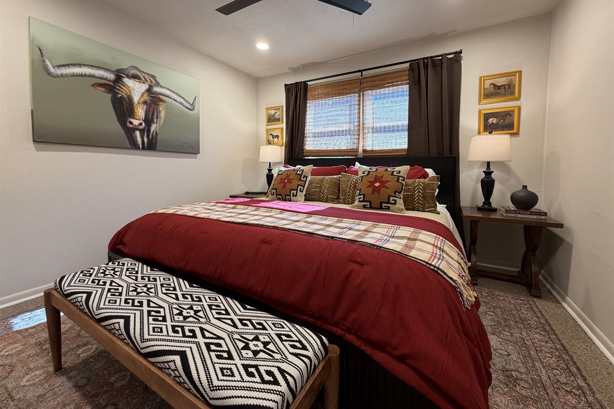 This isn't just a rental - it's a living canvas. Original western artwork fills the walls like a curated gallery, from geometric horses that would make Picasso proud to longhorn portraits worthy of any ranch. Someone painted this place with imagination and fun! Every room tells its own story.