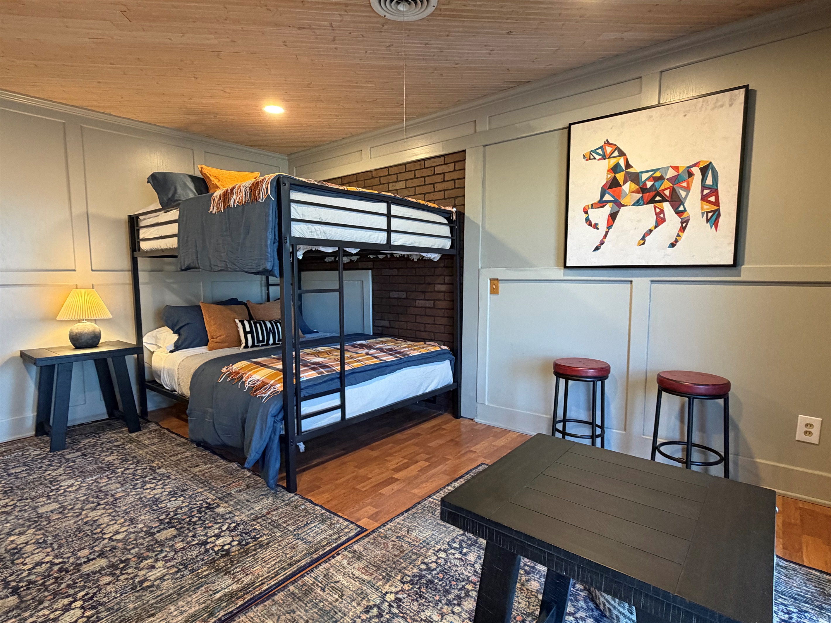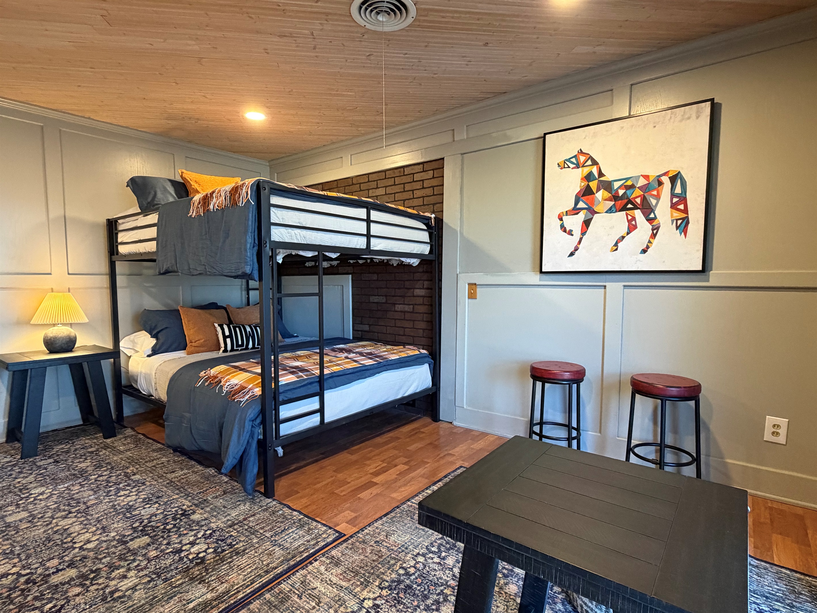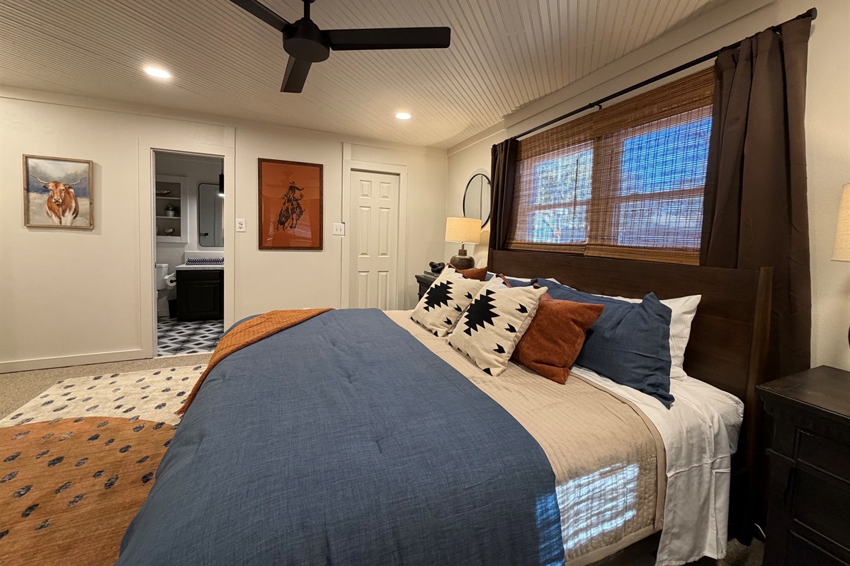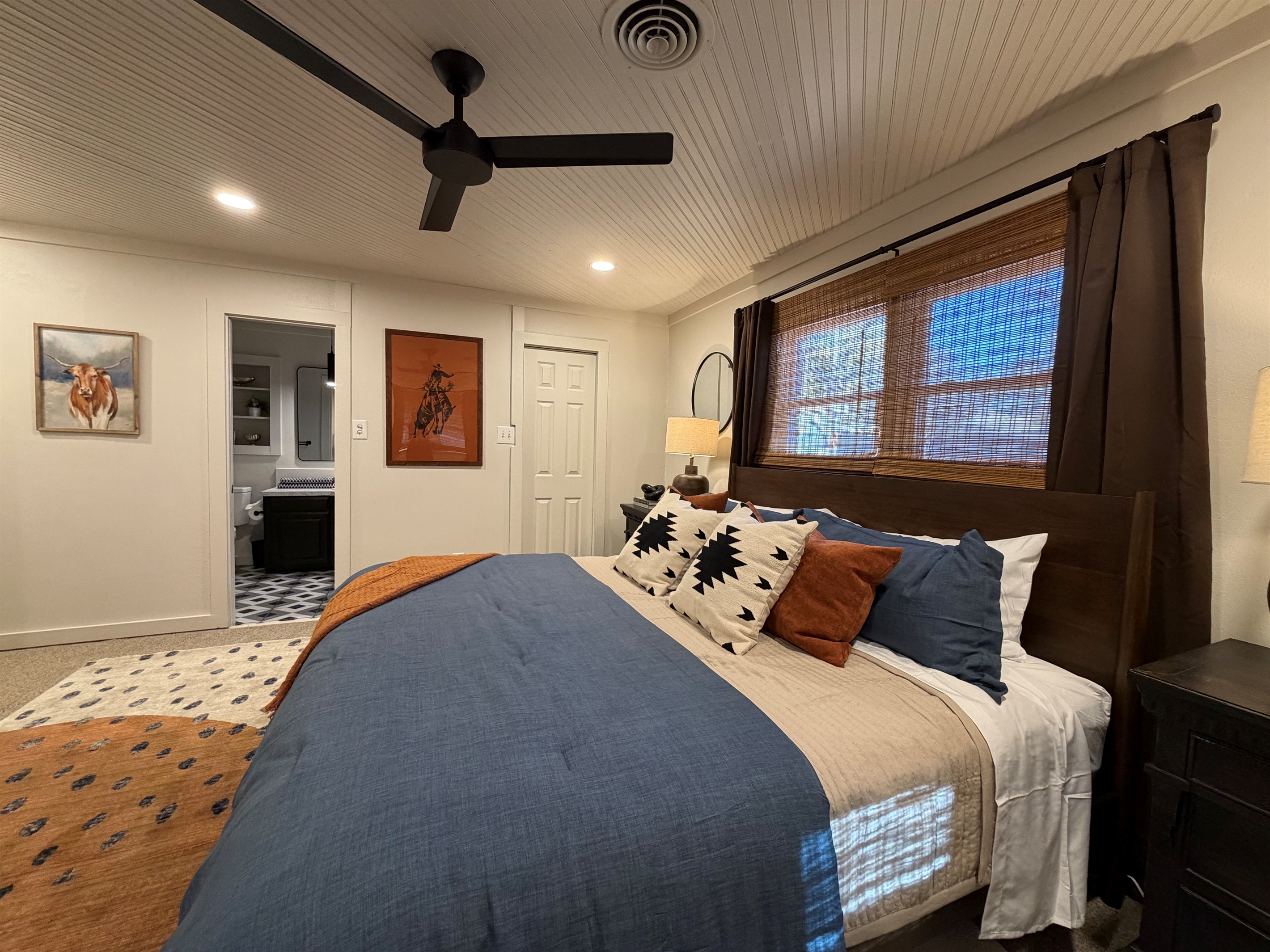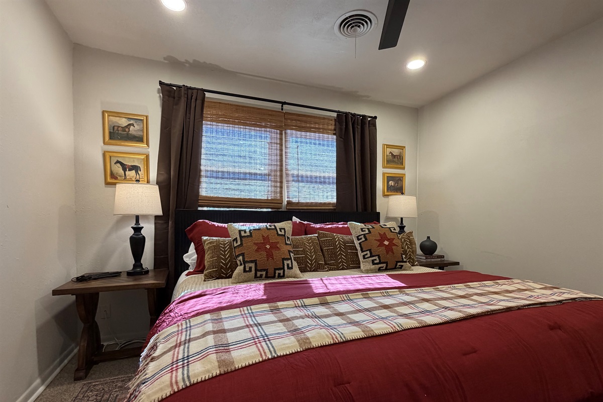 This isn't just a rental - it's a living canvas. Original western artwork fills the walls like a curated gallery, from geometric horses that would make Picasso proud to longhorn portraits worthy of any ranch. Someone painted this place with imagination and fun! Every room tells its own story.