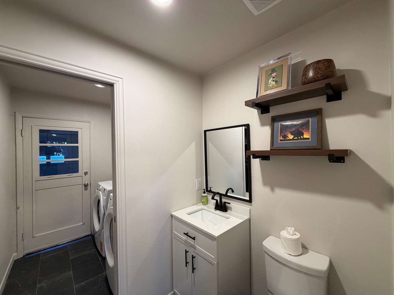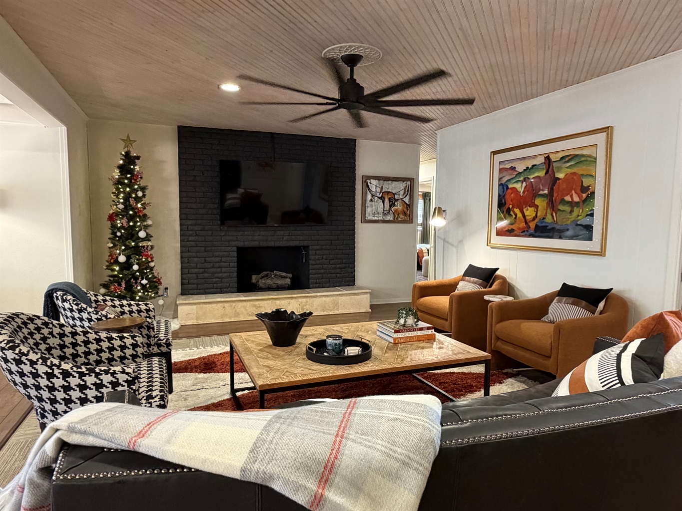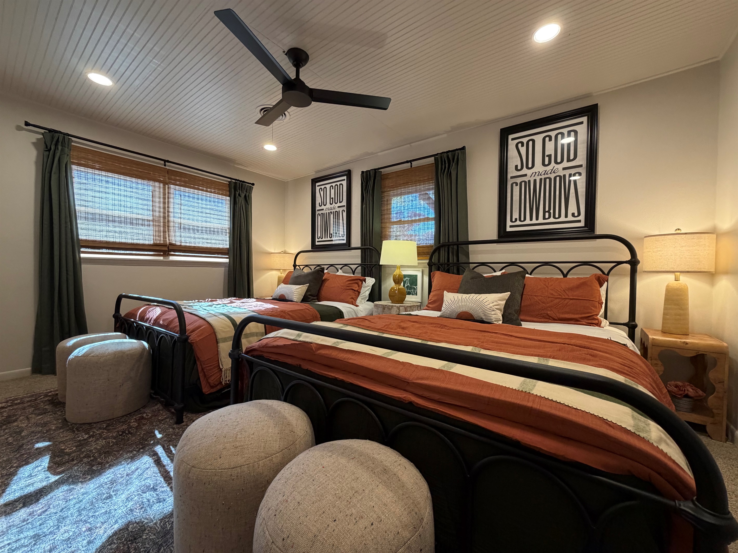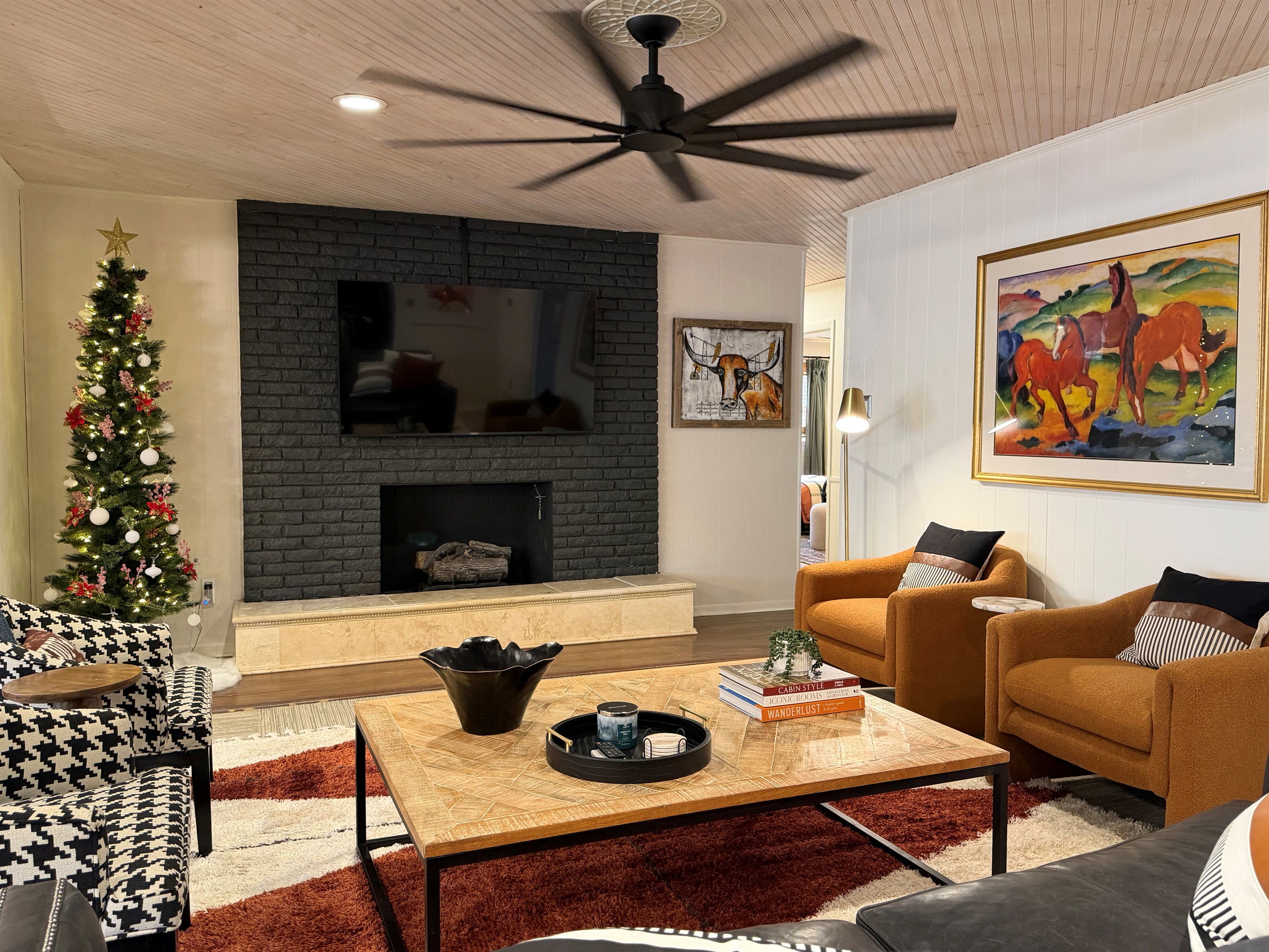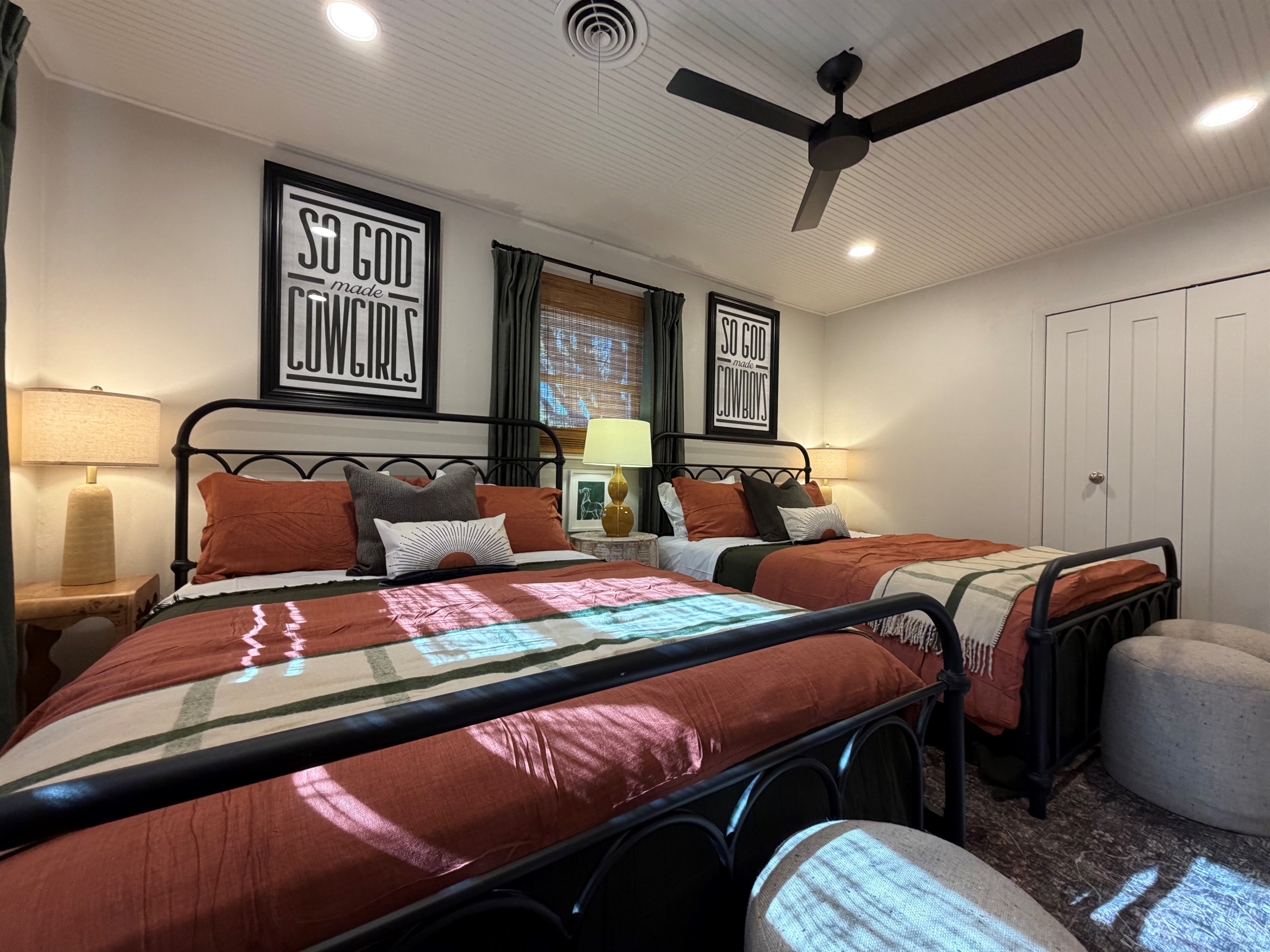 This isn't just a rental - it's a living canvas. Original western artwork fills the walls like a curated gallery, from geometric horses that would make Picasso proud to longhorn portraits worthy of any ranch. Someone painted this place with imagination and fun! Every room tells its own story.