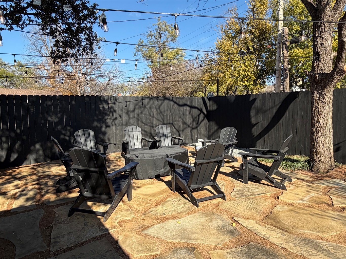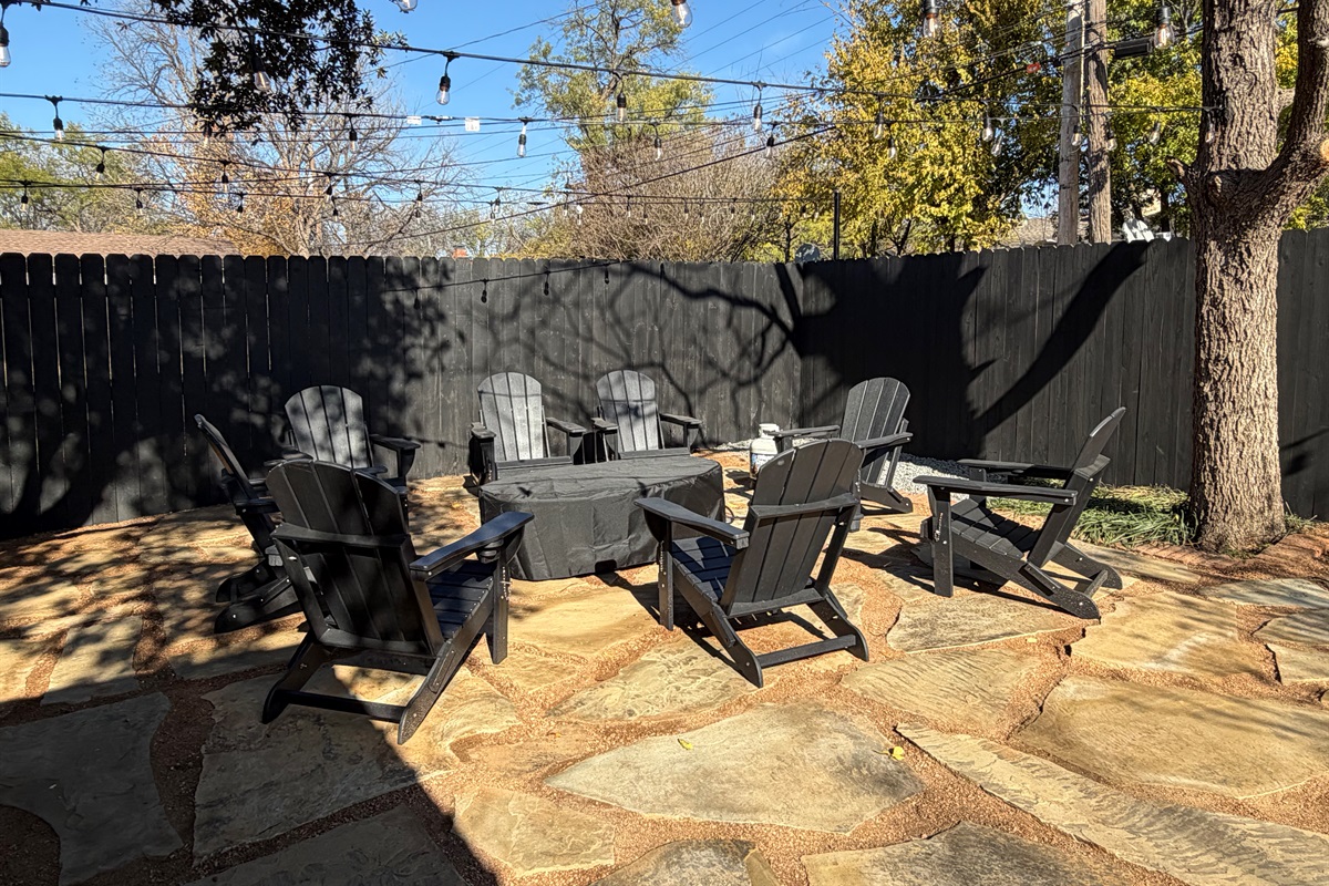*Fire pit circled by Adirondack chairs for stargazing