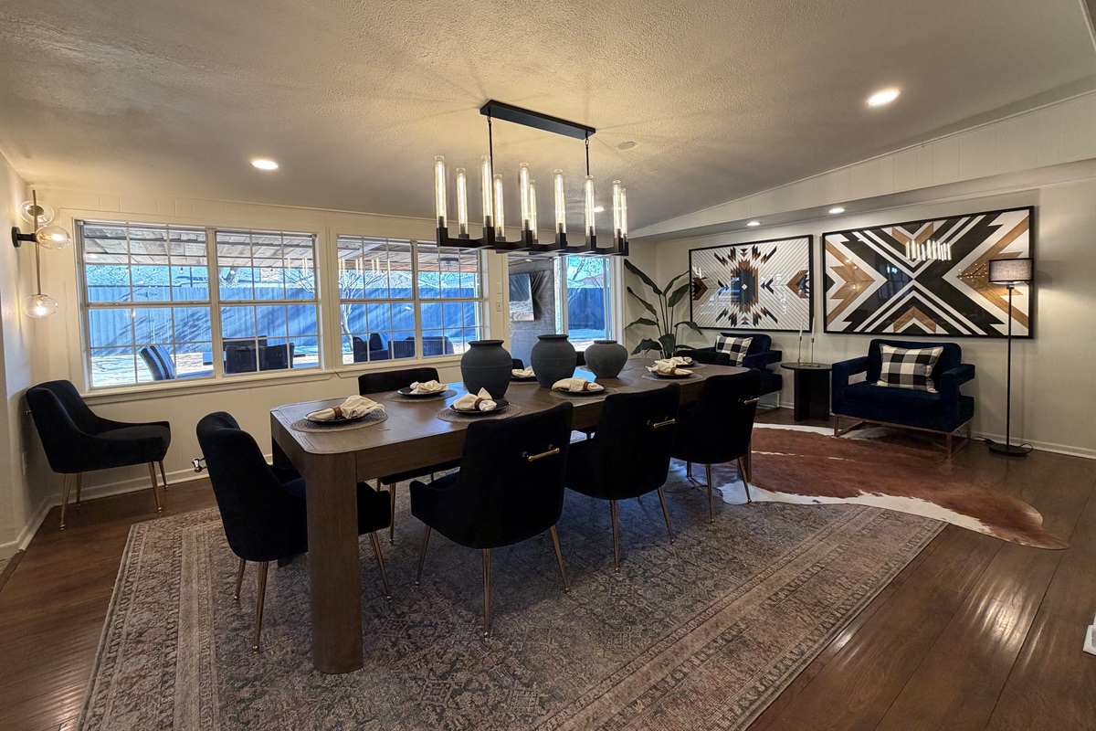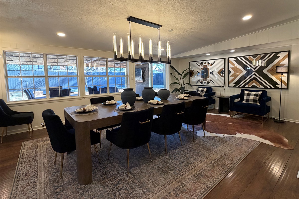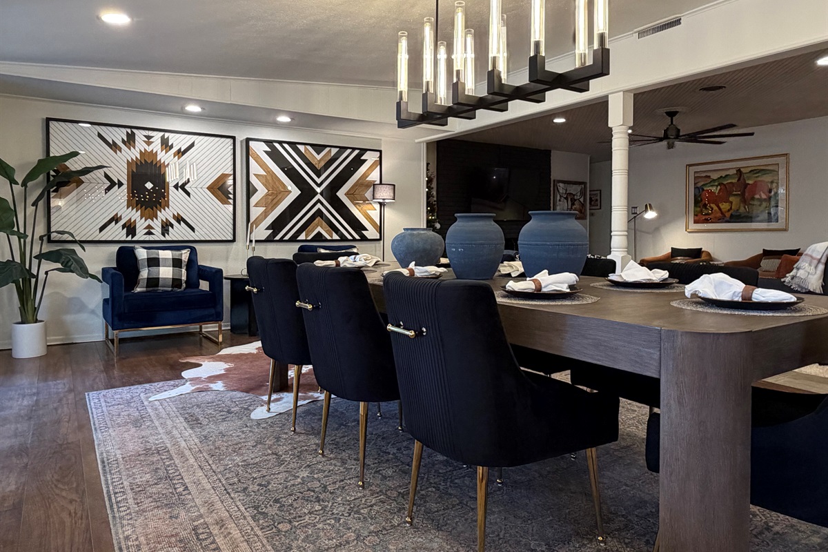 *Bar seating plus formal dining table for 8 cowboys and cowgirls (or artists, or both)