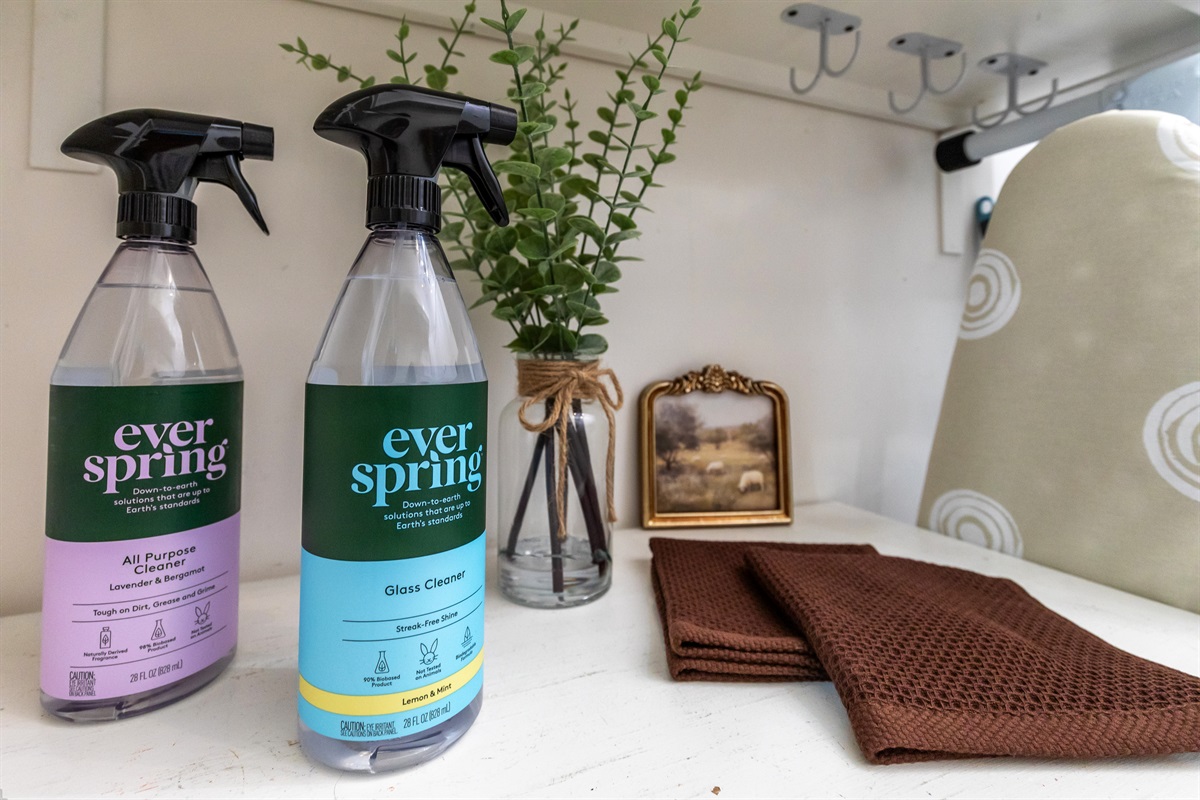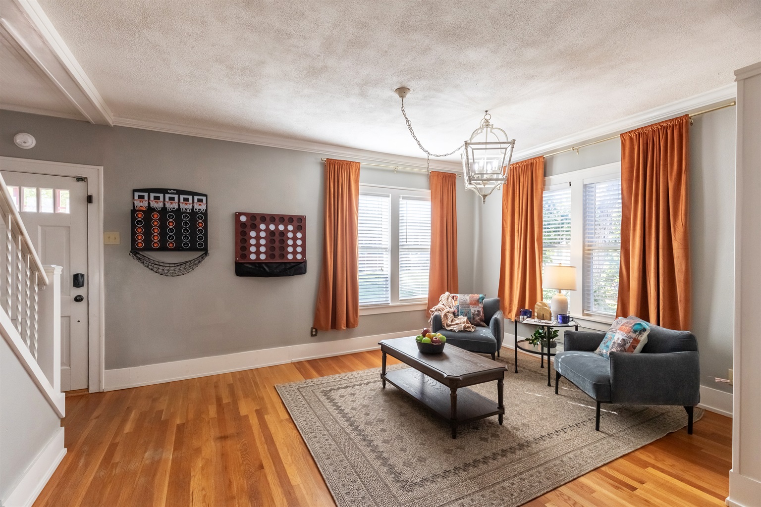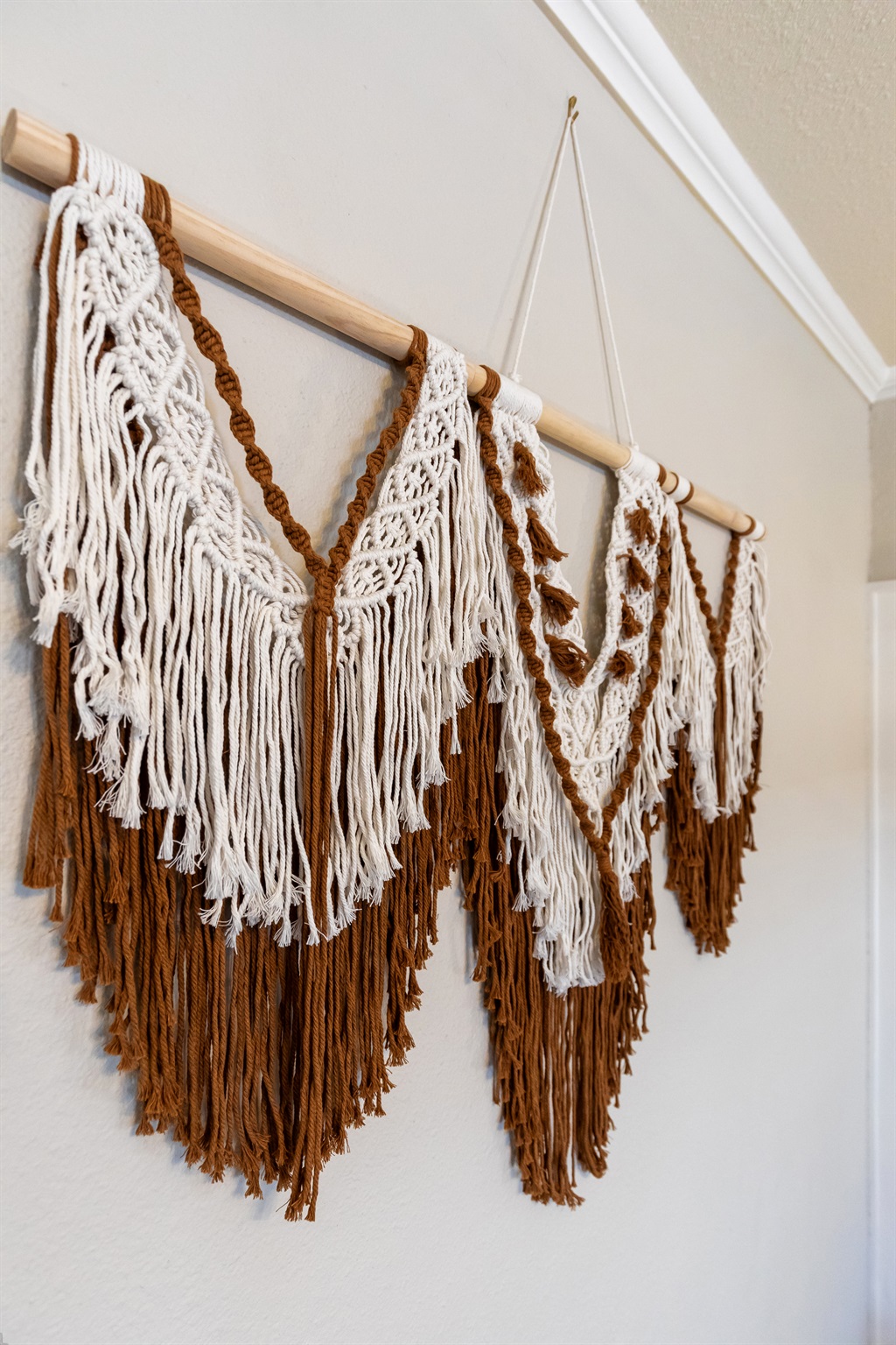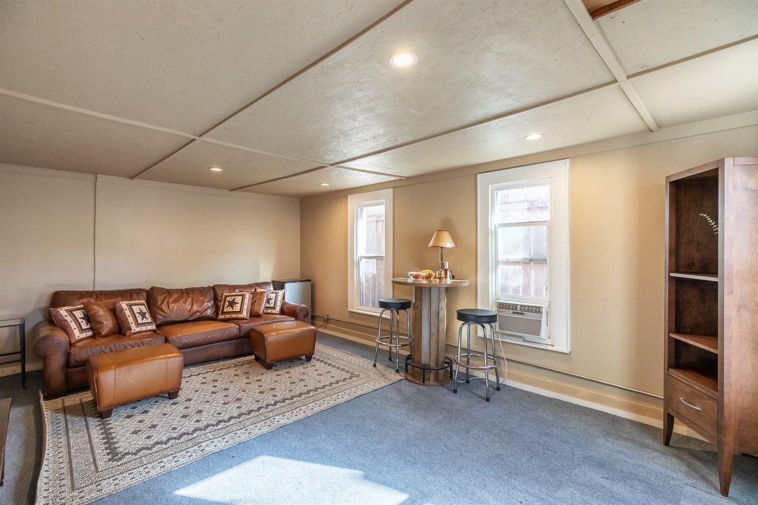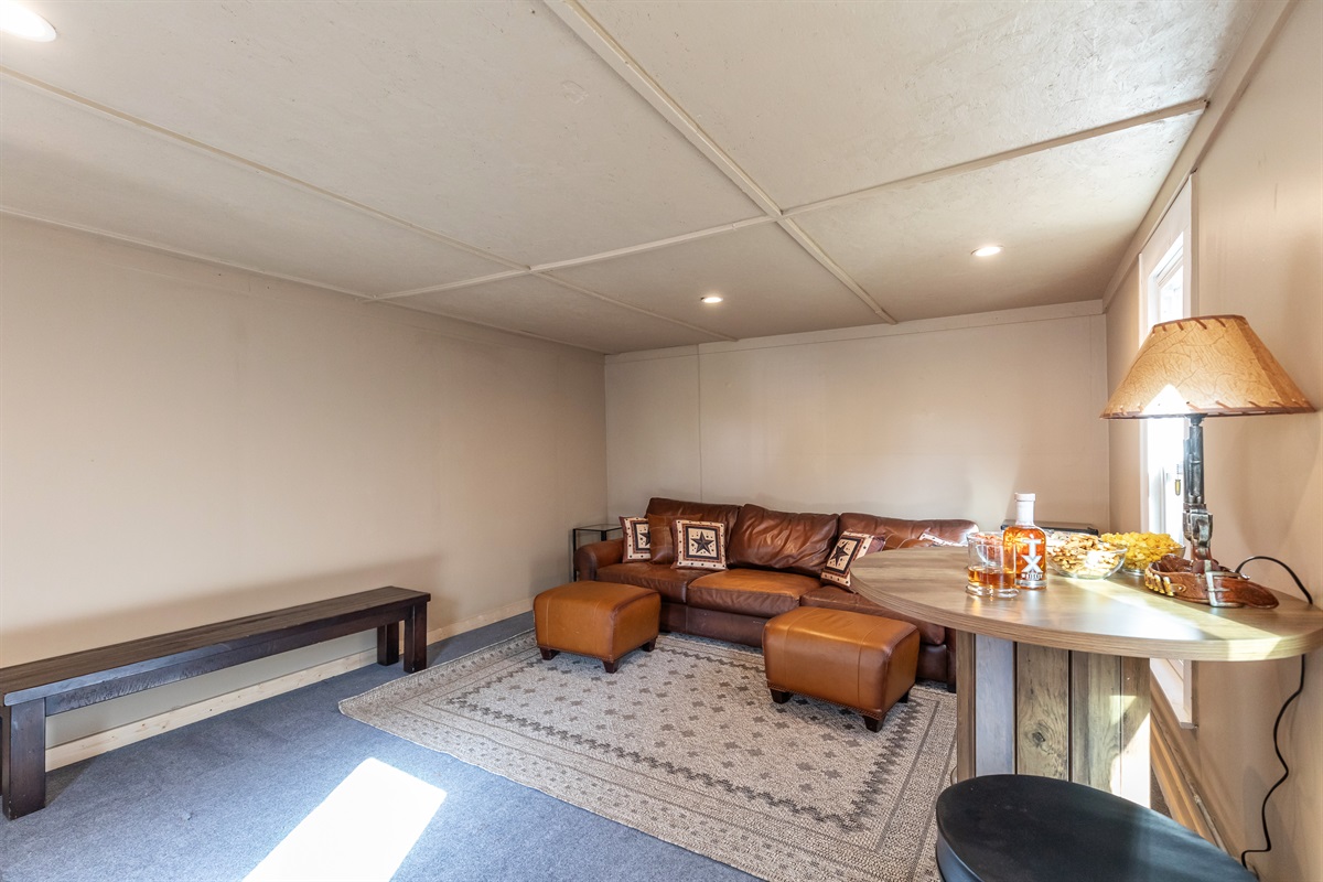 Step into the main living room and sink into saddle-brown leather chairs beneath a custom Cowboys and Fairytales mural — part frontier, part fantasy, all Abilene. A shiplap feature wall frames the fireplace and flat-screen TV while cowhide pillows and a Texas star rug keep things rooted in the land that built this town. This is the kind of room where boots come off and stories start.