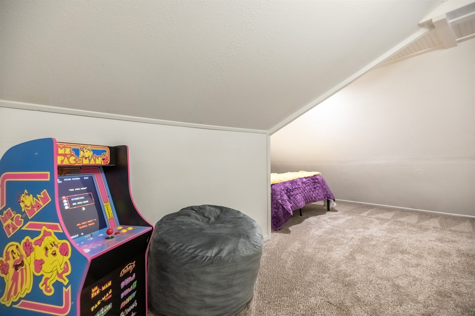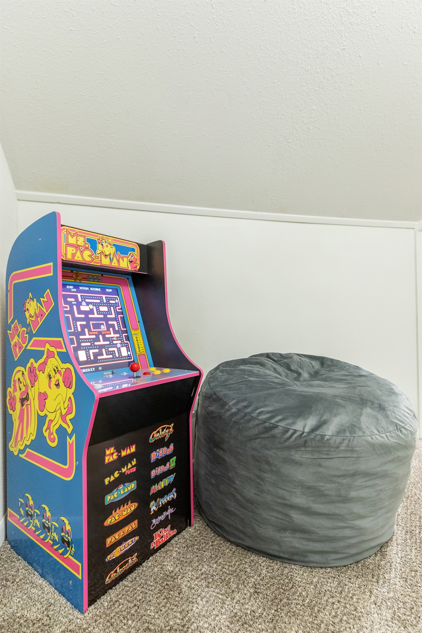 And tucked into its own corner — a full Ms. Pac-Man arcade cabinet. Quarters not required.