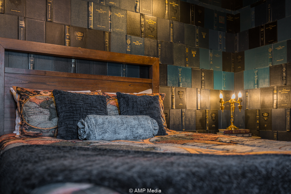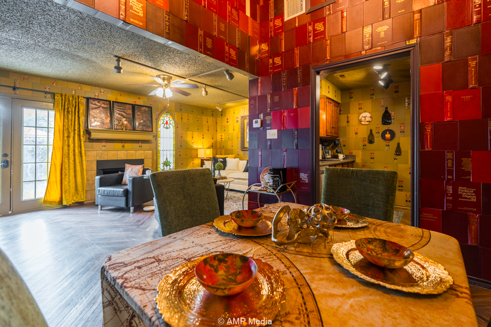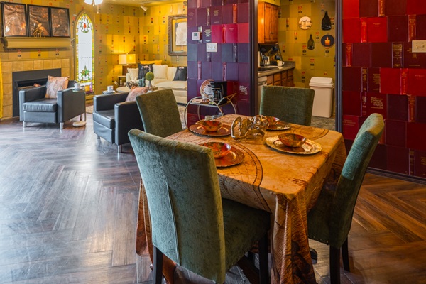 2 Bedrooms • 2 Bathrooms 2 Baths • Sleeps 2-4Our exquisite Edwardian English Library-style residence that transports you to the refined elegance of a bygone era. Adorned with the backs of 3,000 vintage law books from the esteemed library of a century-old local law firm, every wall tells a story, maintaining an English Library aesthetic infused with the DNA of Abilene.