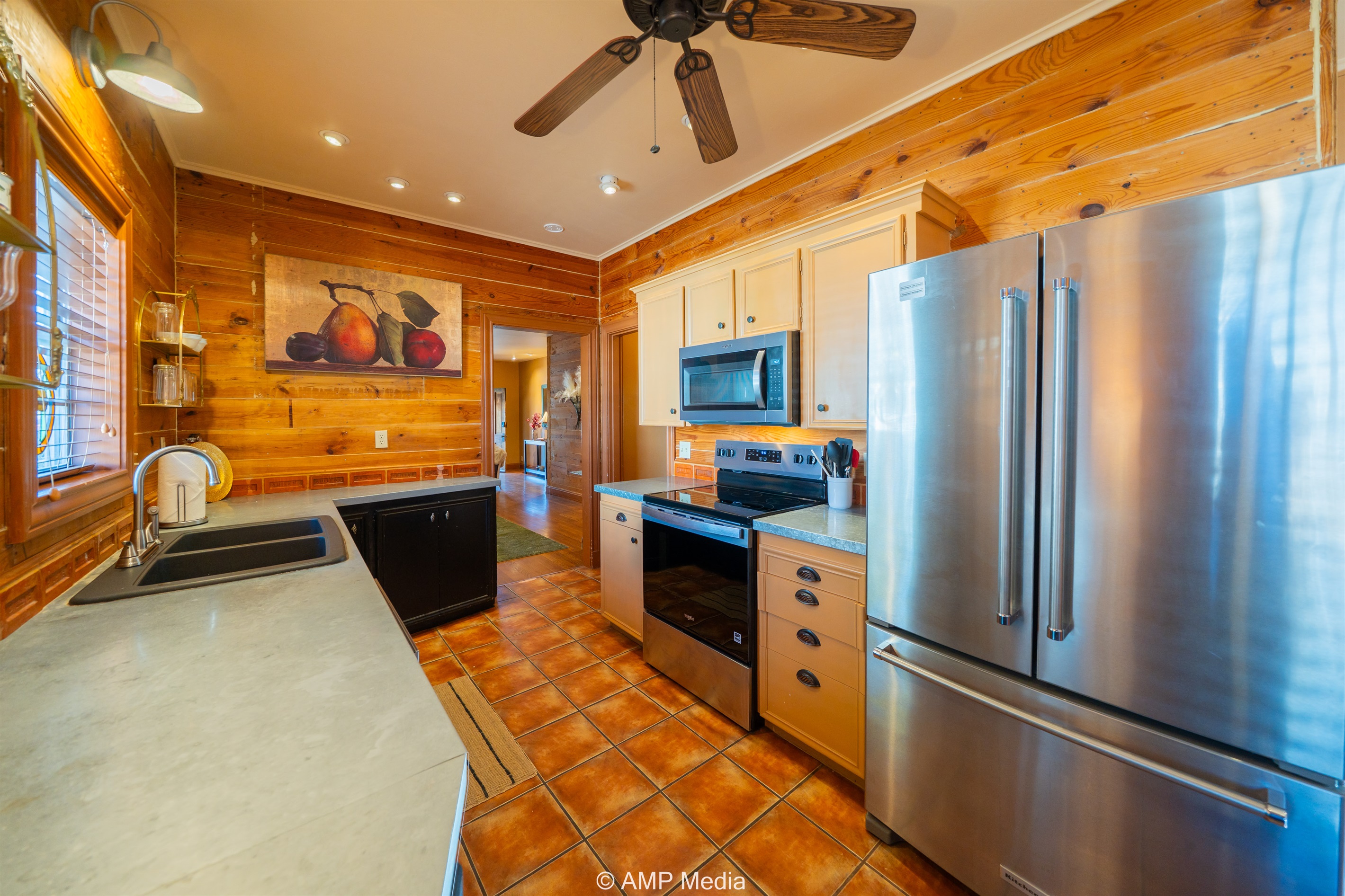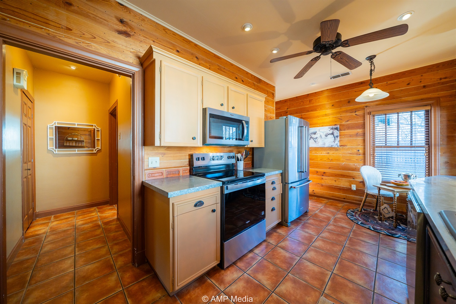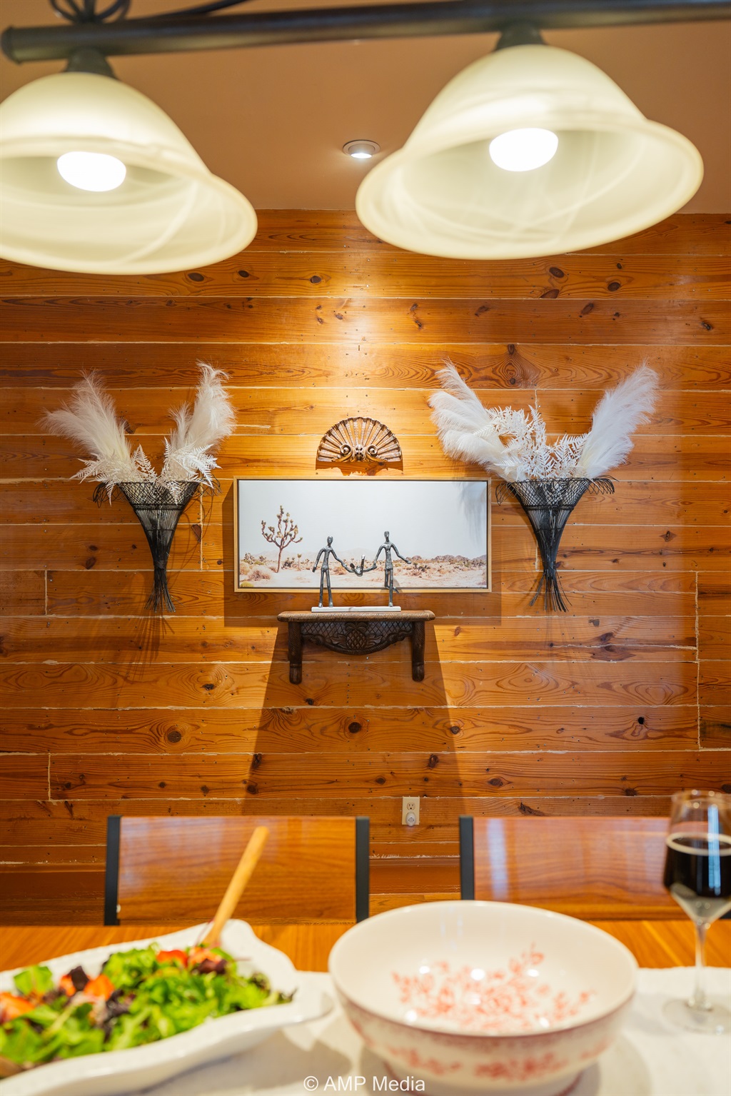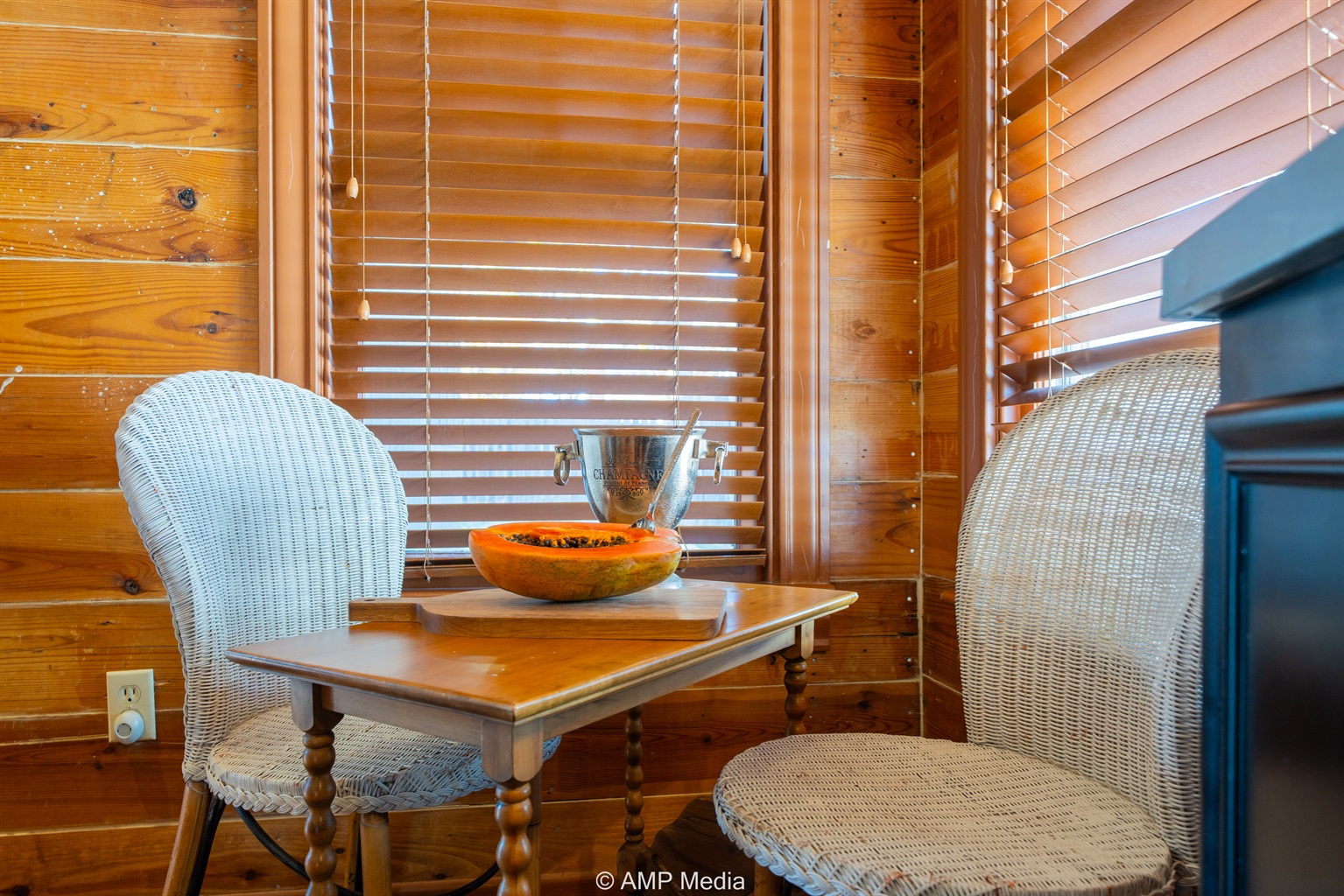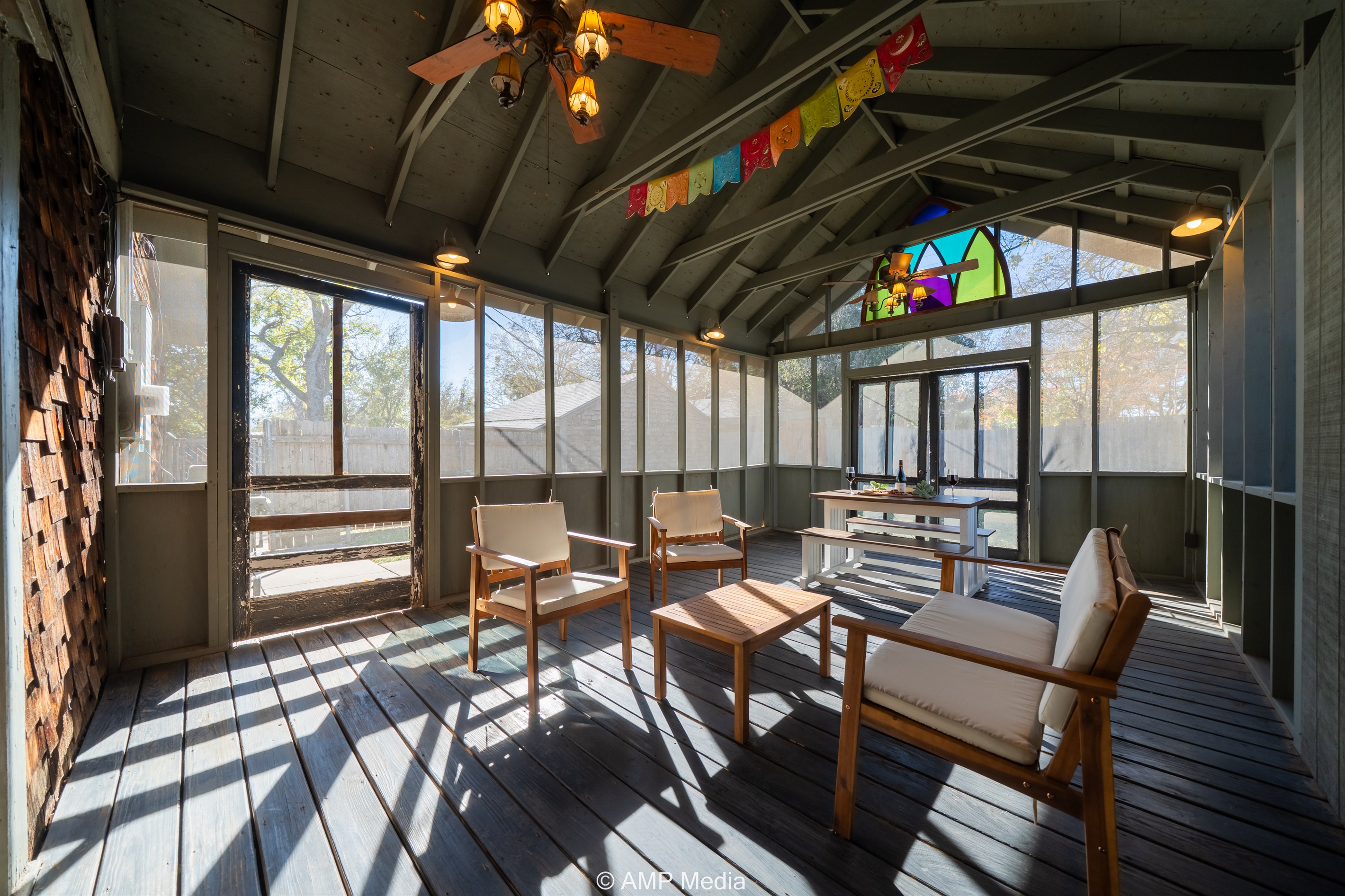 Step into a space where history meets comfort, with a king, queen and 2 single beds adorned the 3 bedrooms. The décor in the first bedroom is a tribute to our Native American heritage, with antique Navajo rugs, artwork, and captivating imagery. Hardwood floors, original wooden shiplap walls, and rustic, antique accessories create a warm log cabin ambiance, inviting you to unwind and make lasting memories.