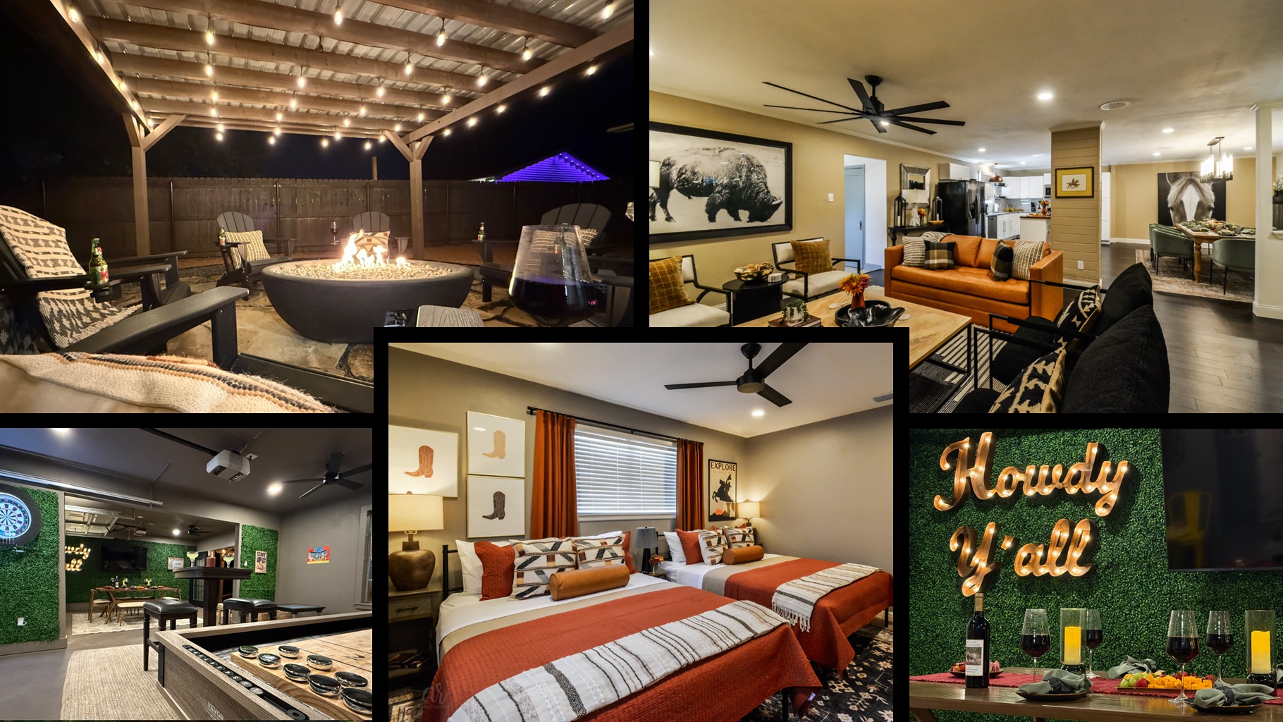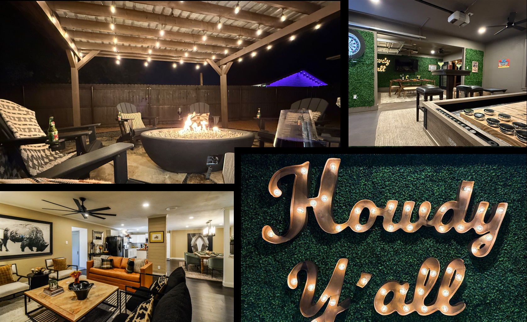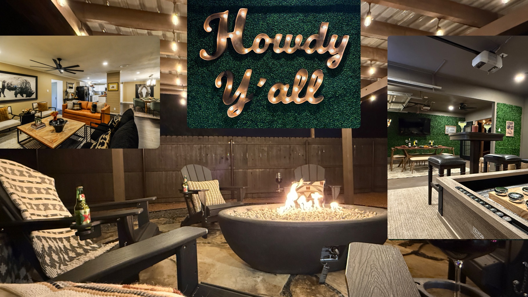 Step into Howdy Y’all Ranch, where Texas spirit meets modern luxury. This stunning 3-bedroom, 2-bath retreat comfortably sleeps up to 10 guests and delivers a one-of-a-kind blend of western heritage, elegant design, and all-out fun.