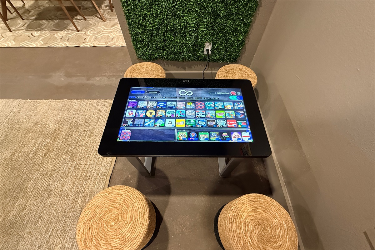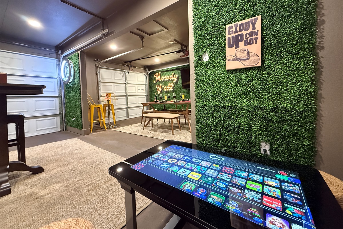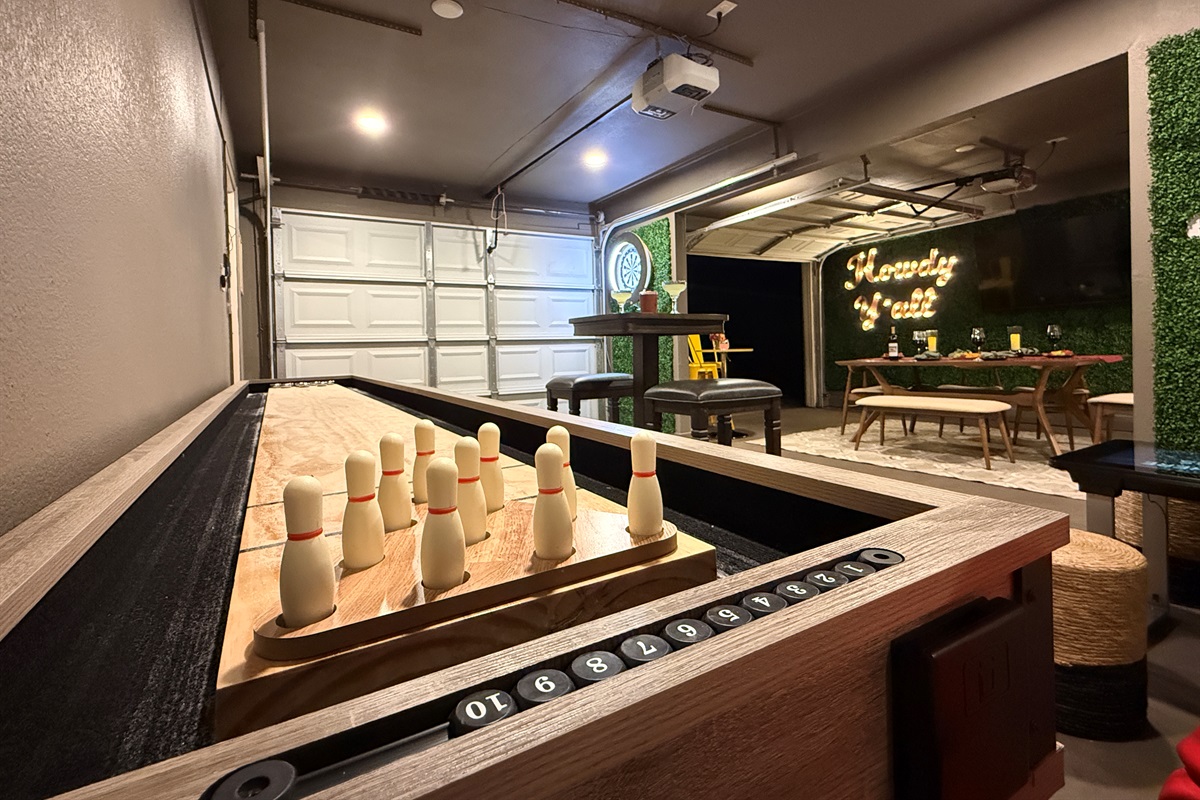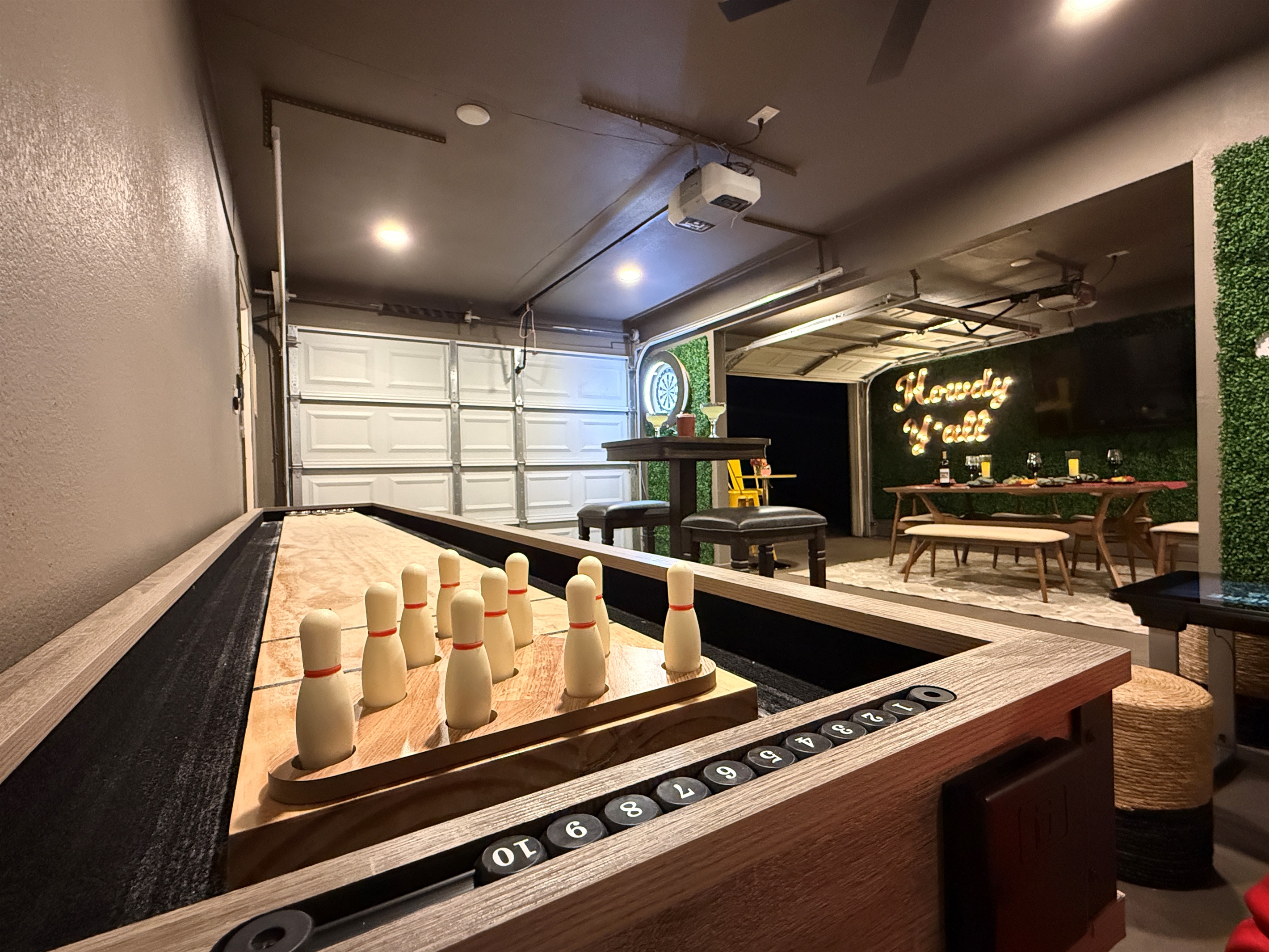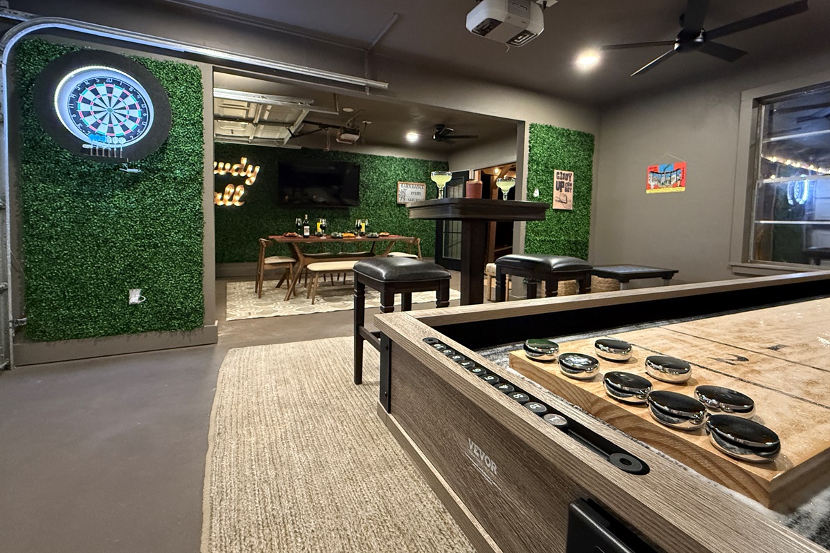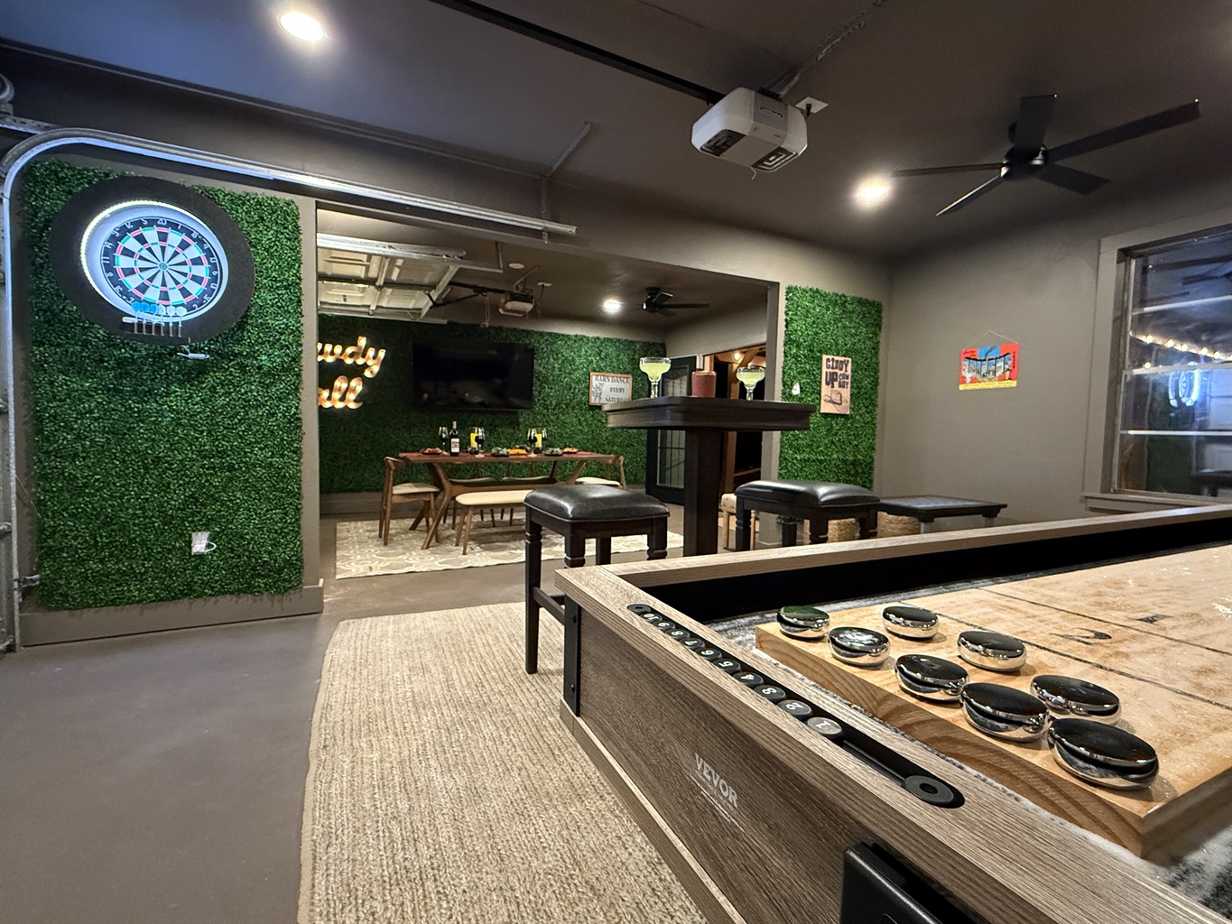 🎯 Epic Game Room – Shuffleboard, Infinity Game Table, big-screen TV & cozy lounge seating