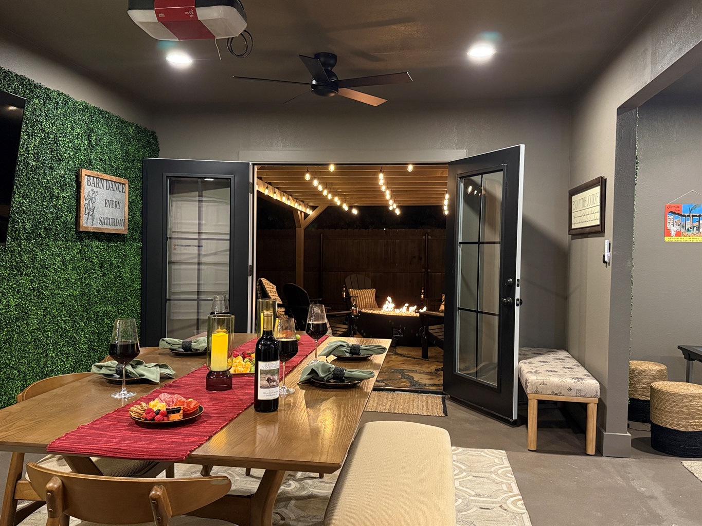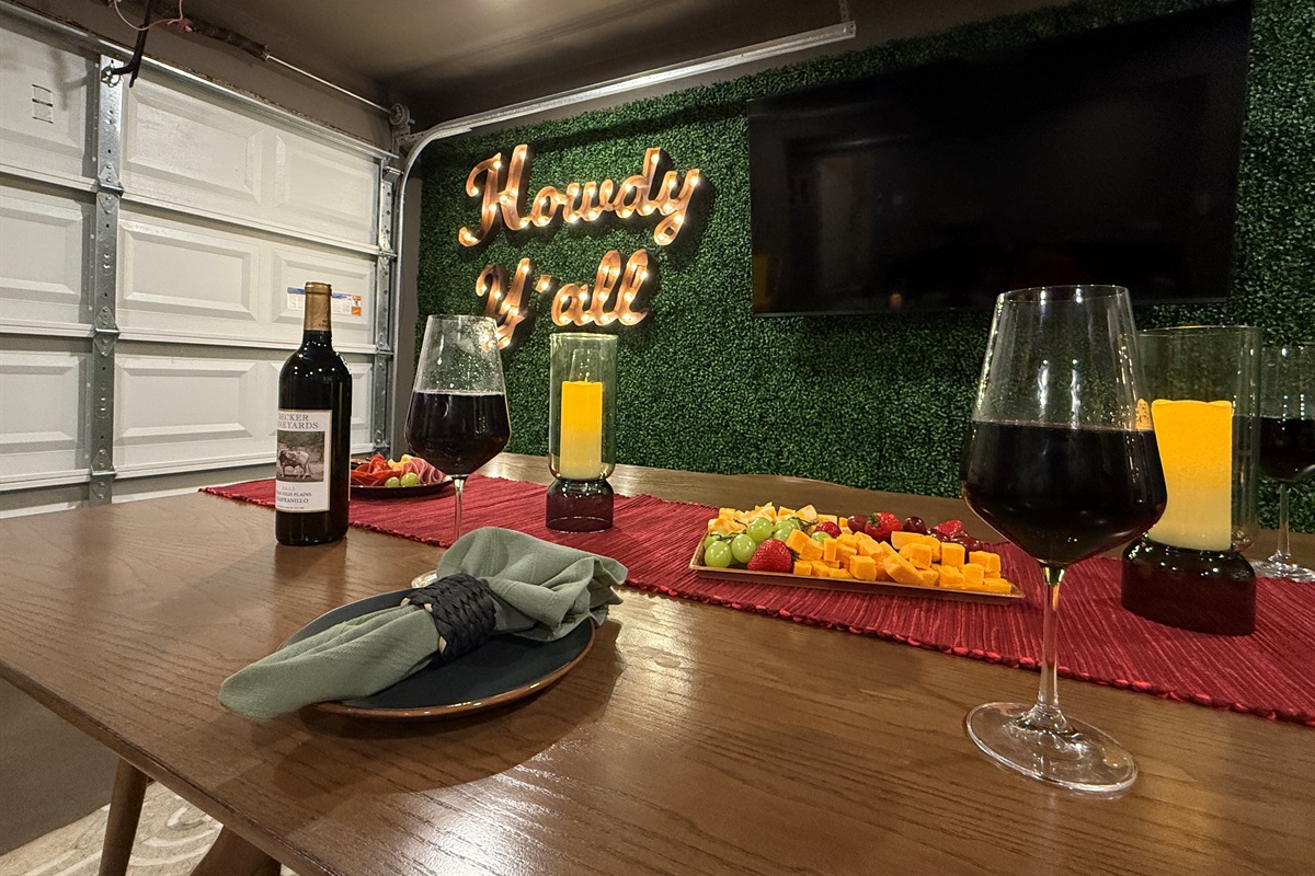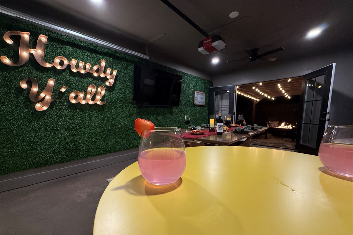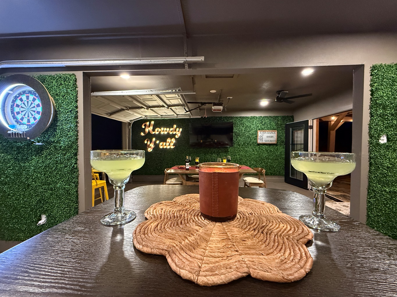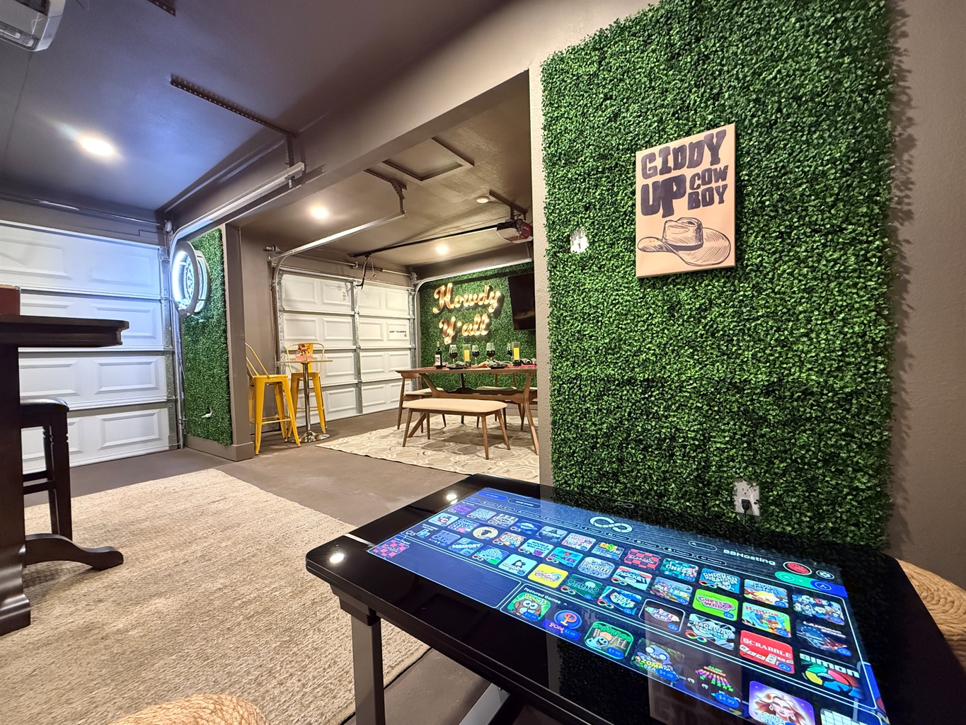 Inside, you’ll find warm wood tones, longhorn and buffalo art, and that signature “Howdy Y’all” glow — a photo-worthy nod to Abilene’s frontier roots. Gather for laughter and games in the epic entertainment room, featuring a full shuffleboard table, Infinity Game Table, and a massive smart TV for movie nights or sports weekends.