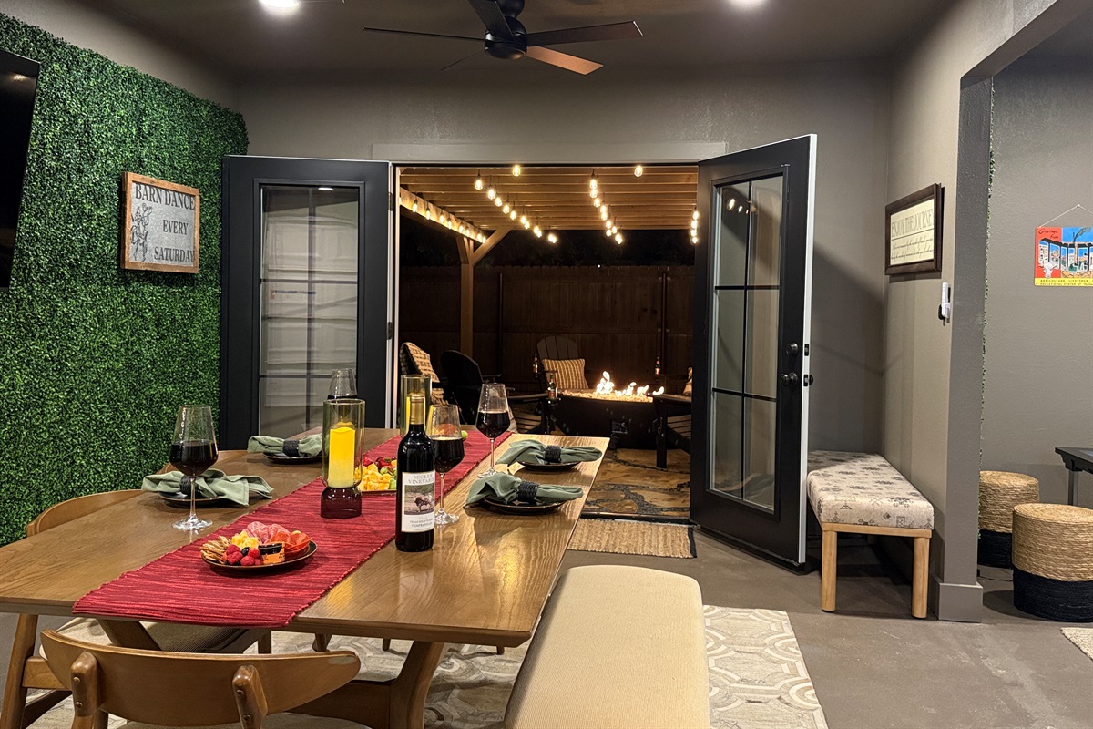 When the sun sets, head outdoors to your private fire pit oasis under a custom lighted pergola, surrounded by eight Adirondack chairs and the scent of mesquite on the grill. It’s not just a stay — it’s the start of your favorite Texas story.