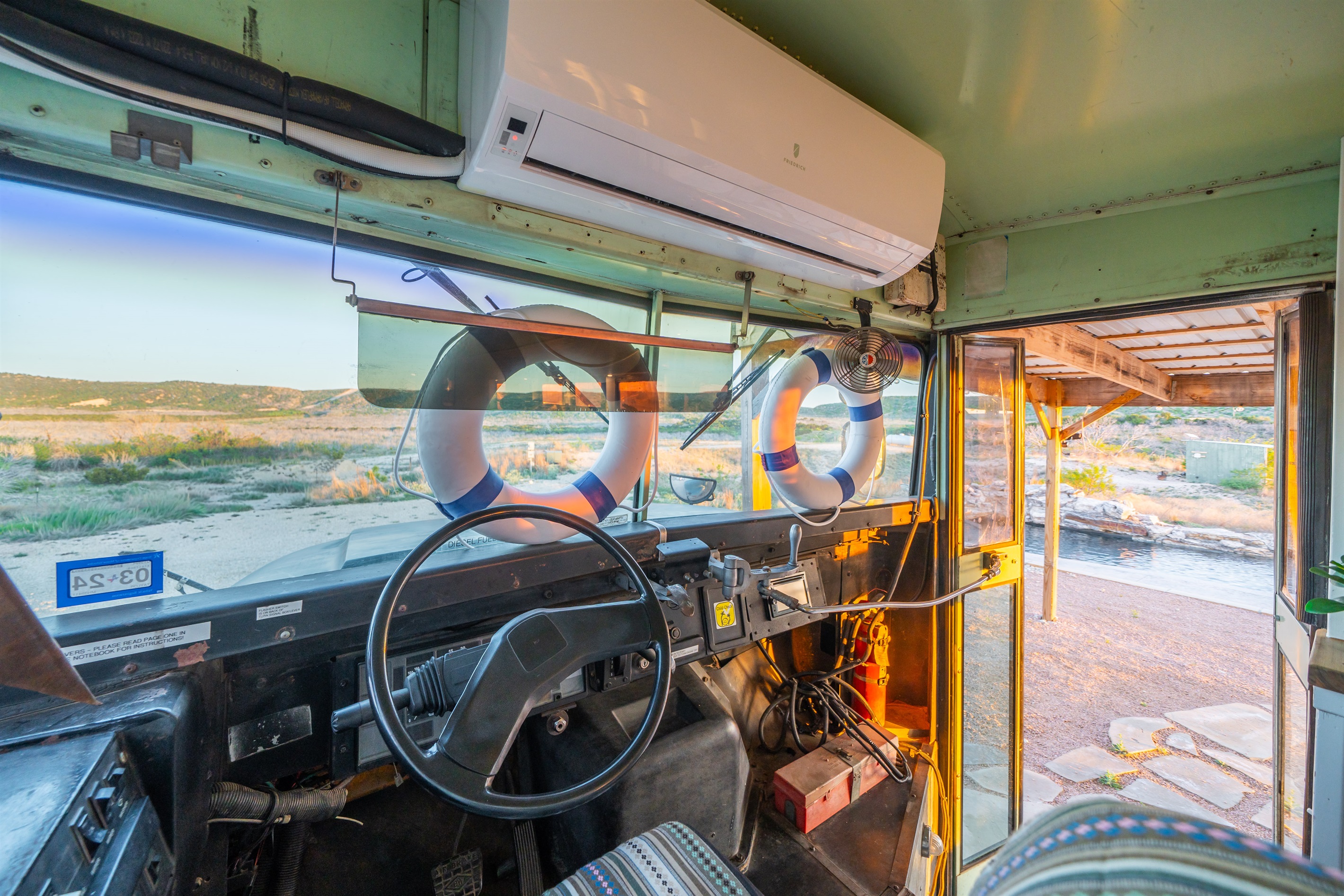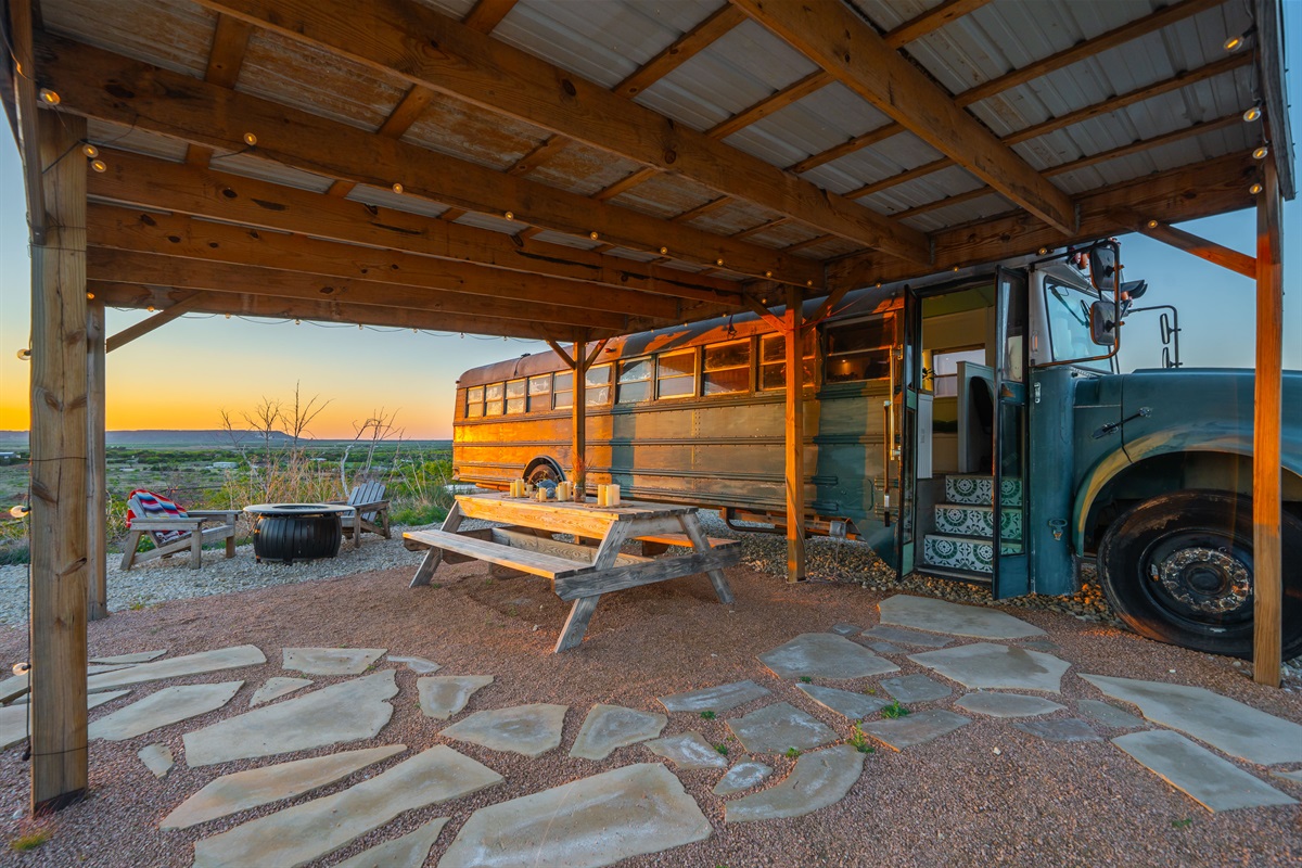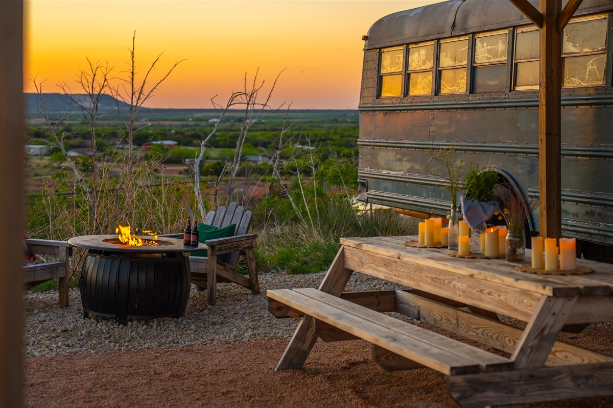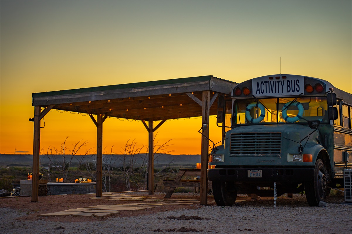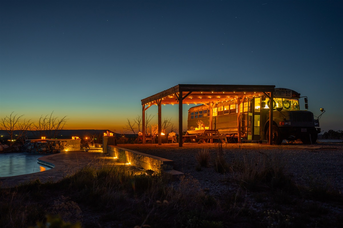 The bus is on our 12 acre ranch, and you’ll have the whole place to yourself, plus some roaming donkeys. Next to Sabrina Cedars and only 15 minutes from Abilene.
