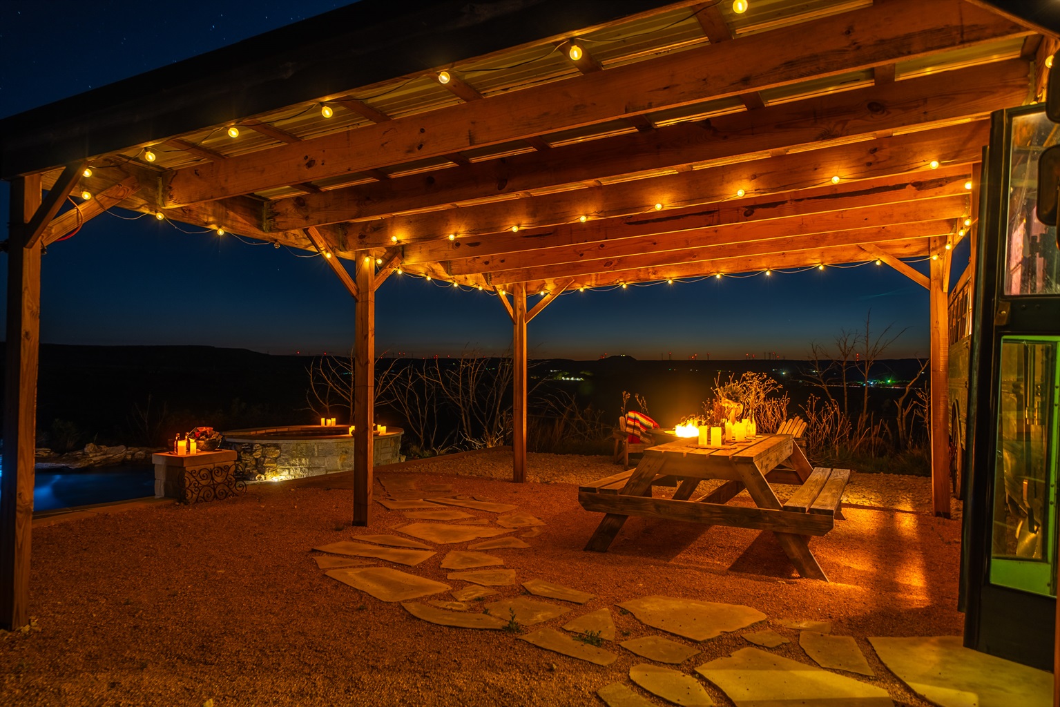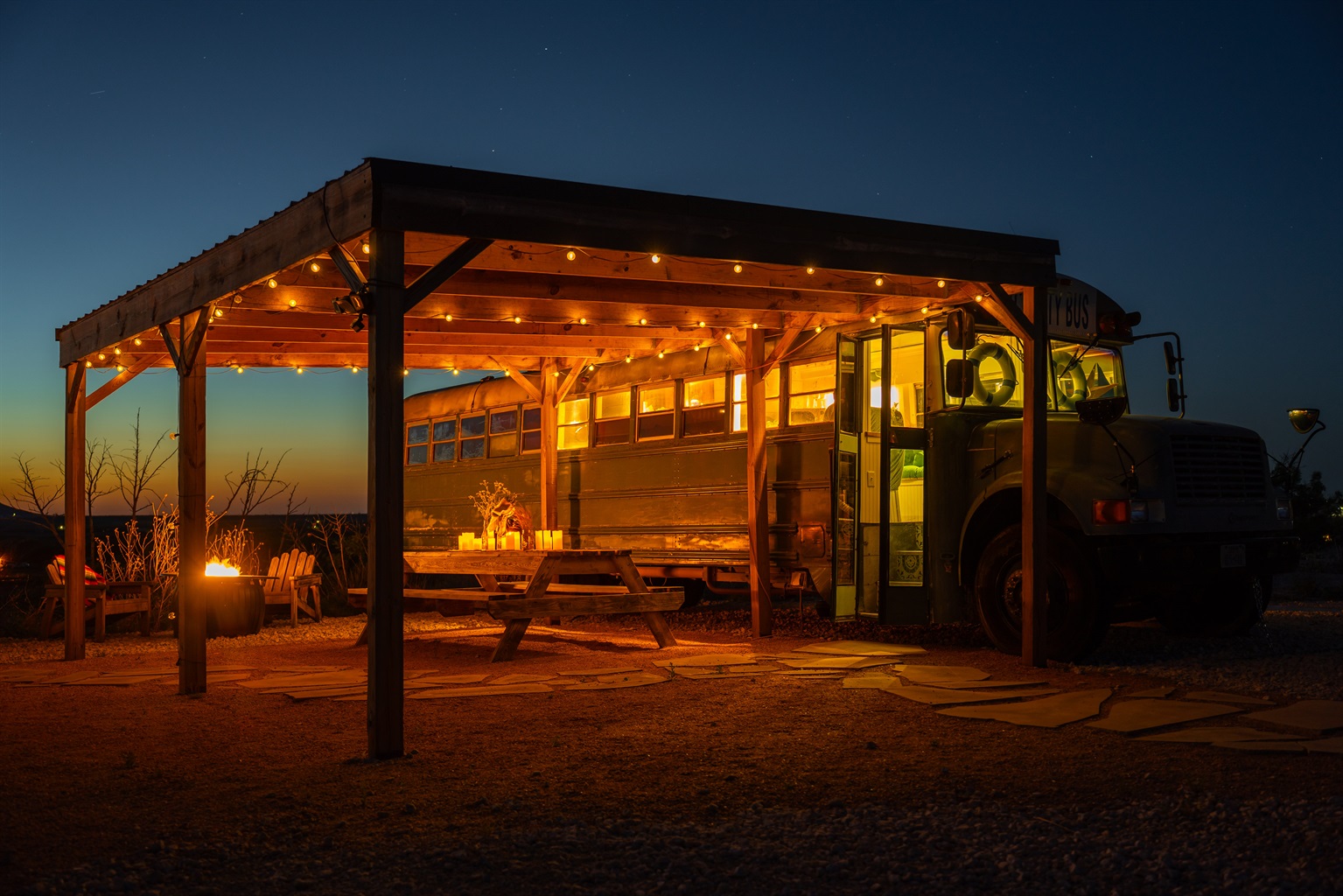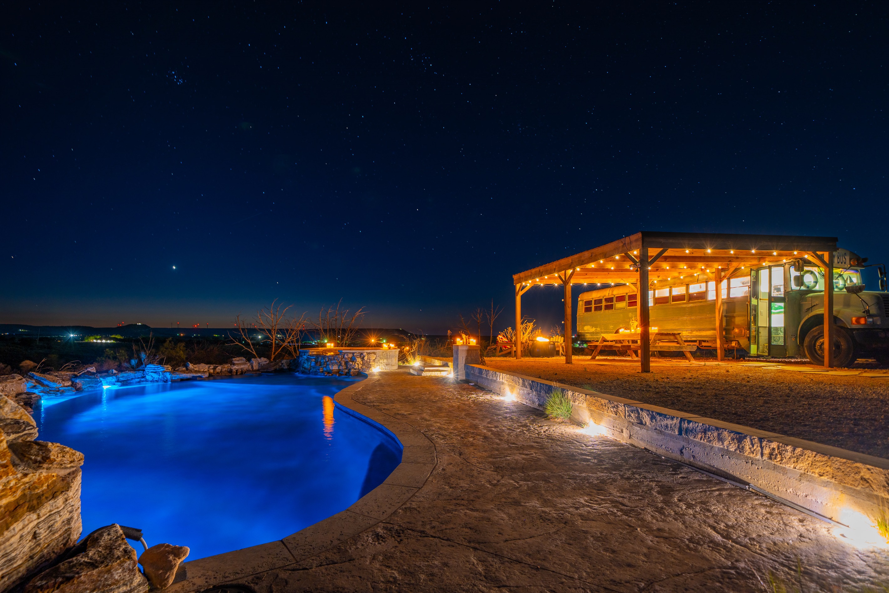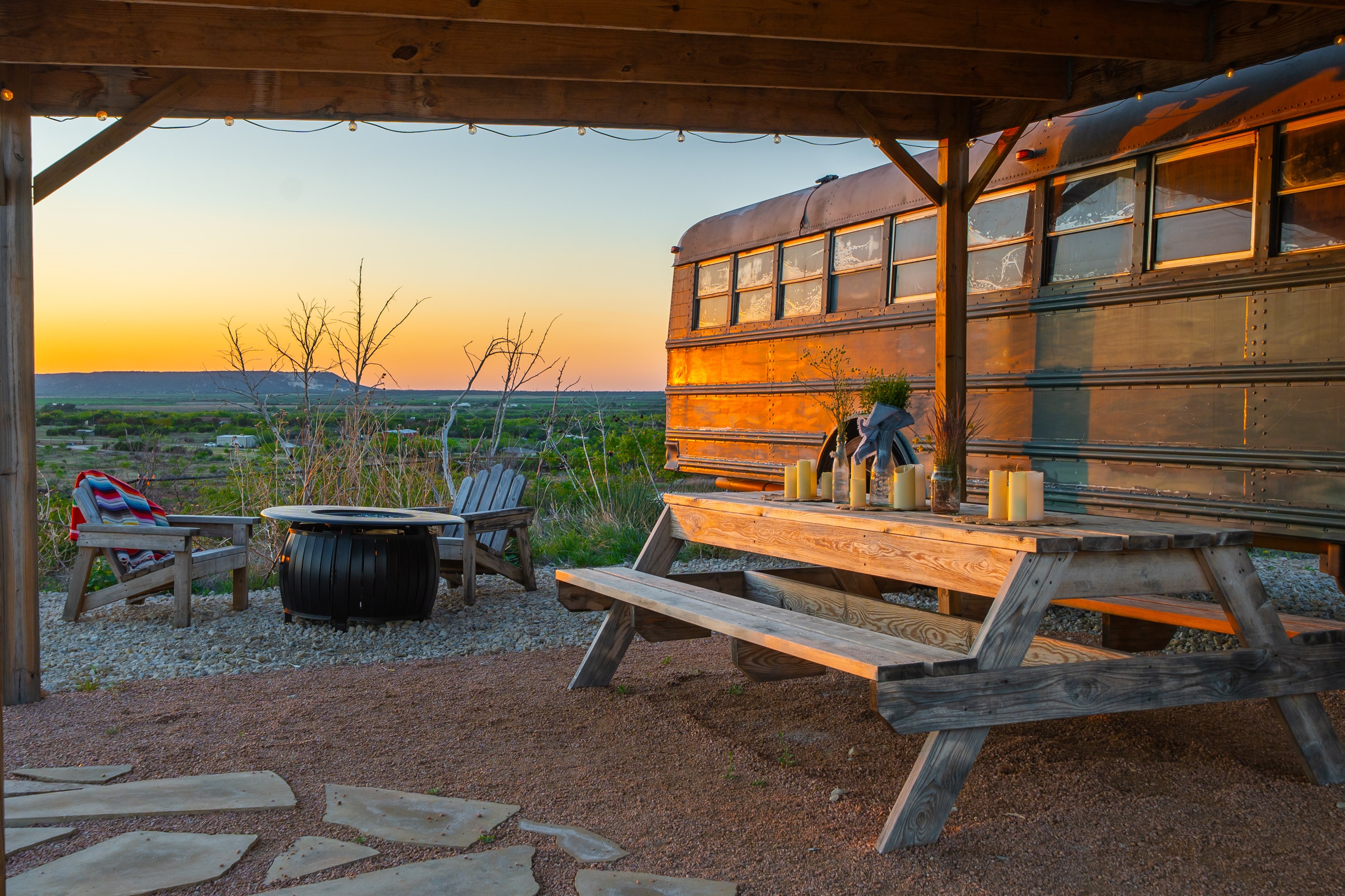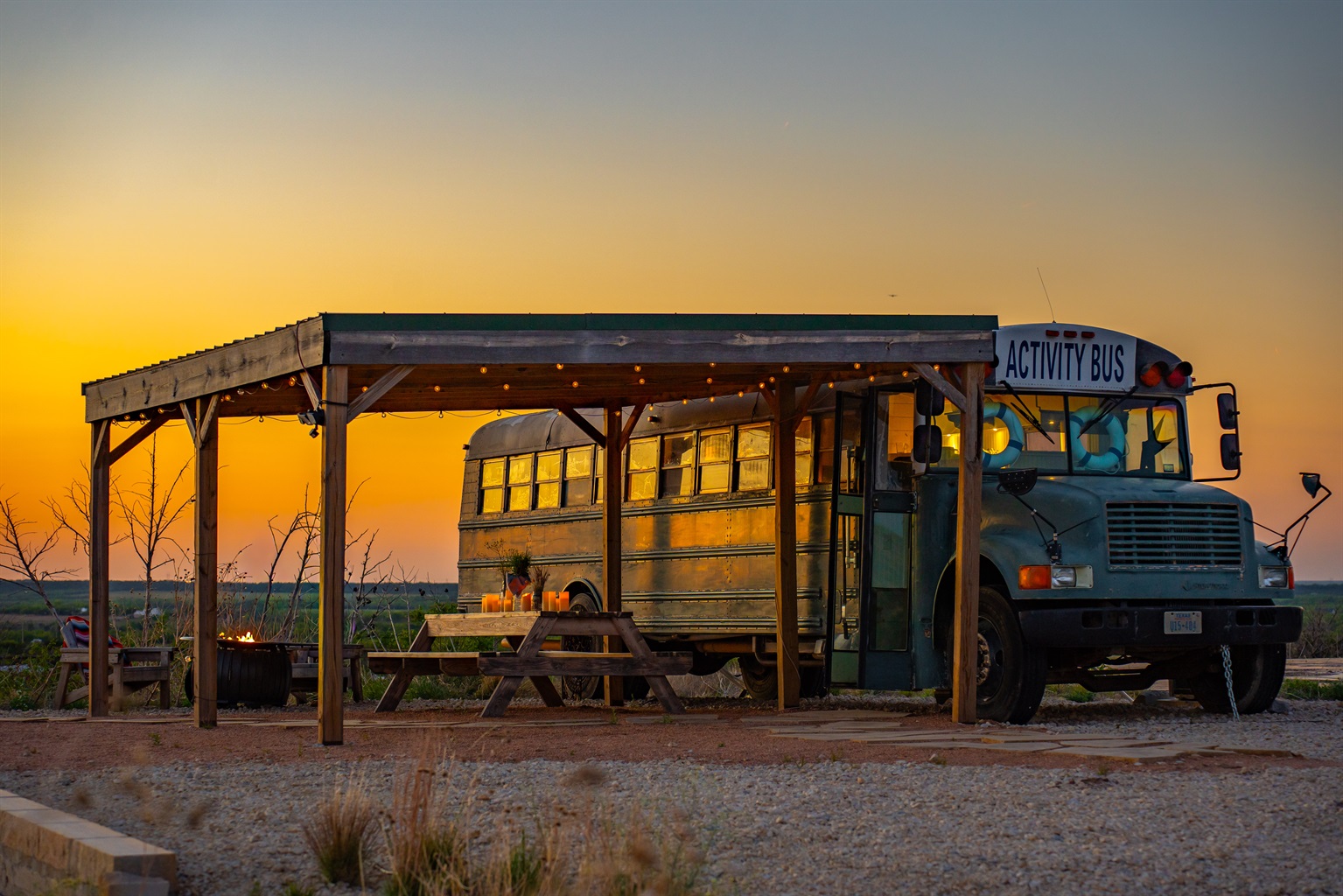 The bus is on our 12 acre ranch, and you’ll have the whole place to yourself, plus some roaming donkeys. Next to Sabrina Cedars and only 15 minutes from Abilene.