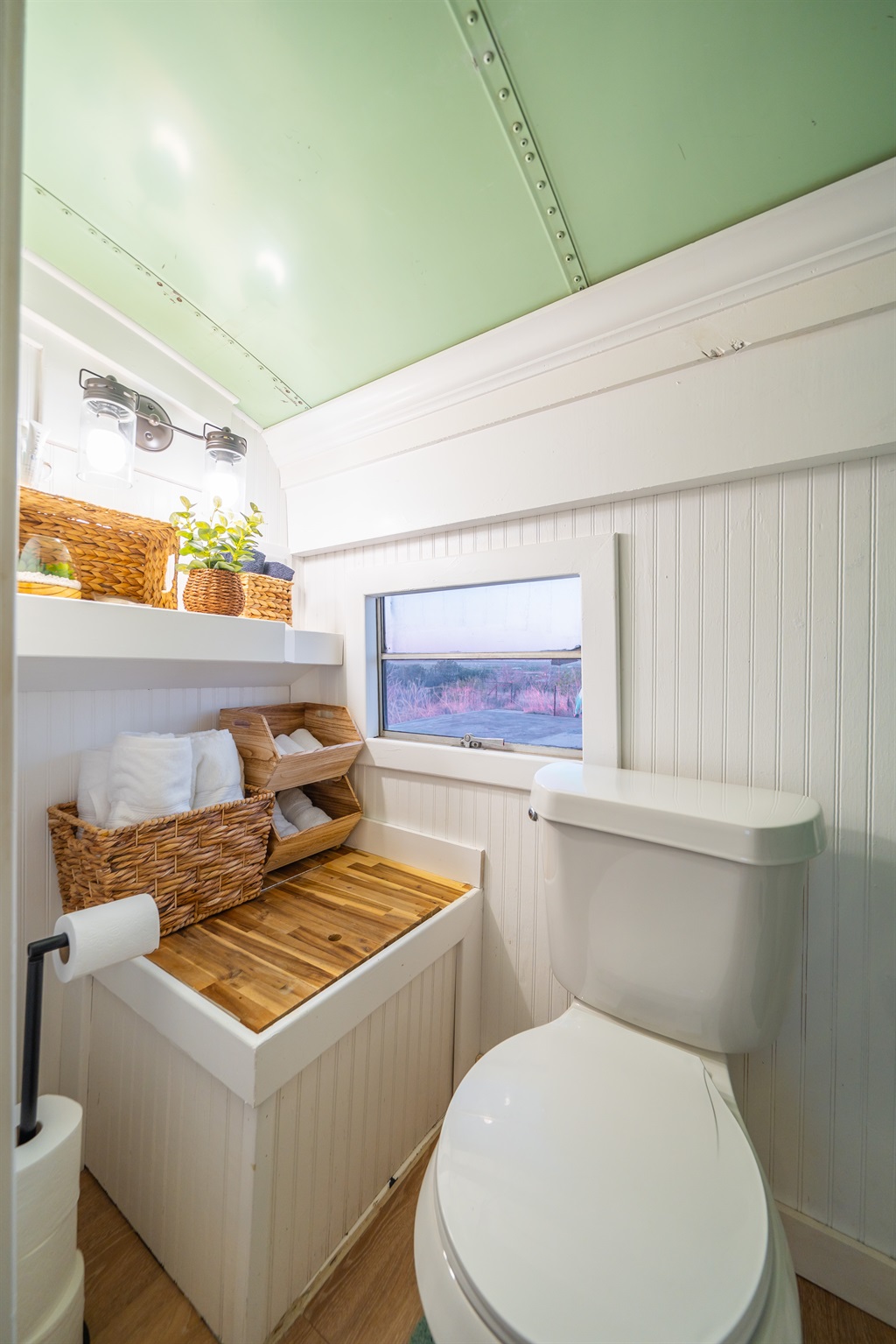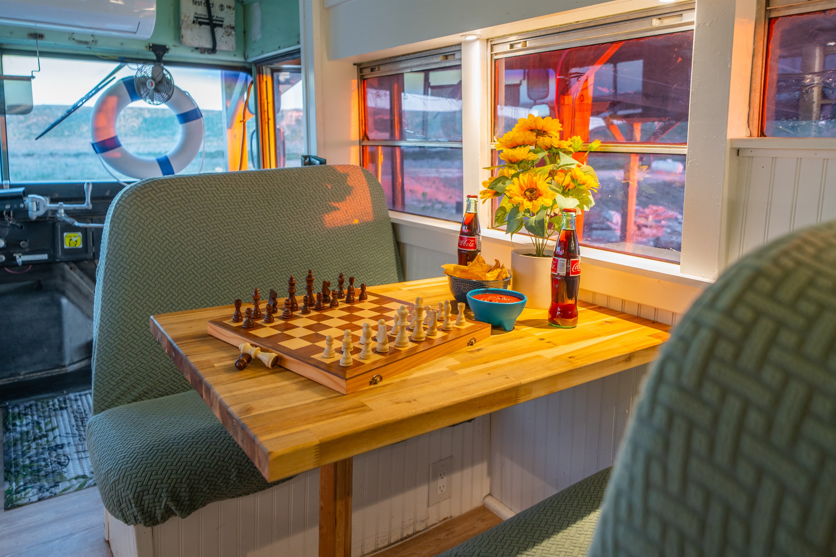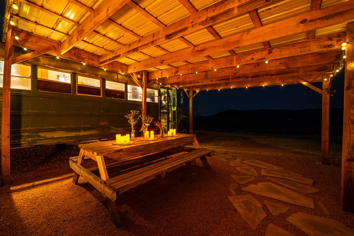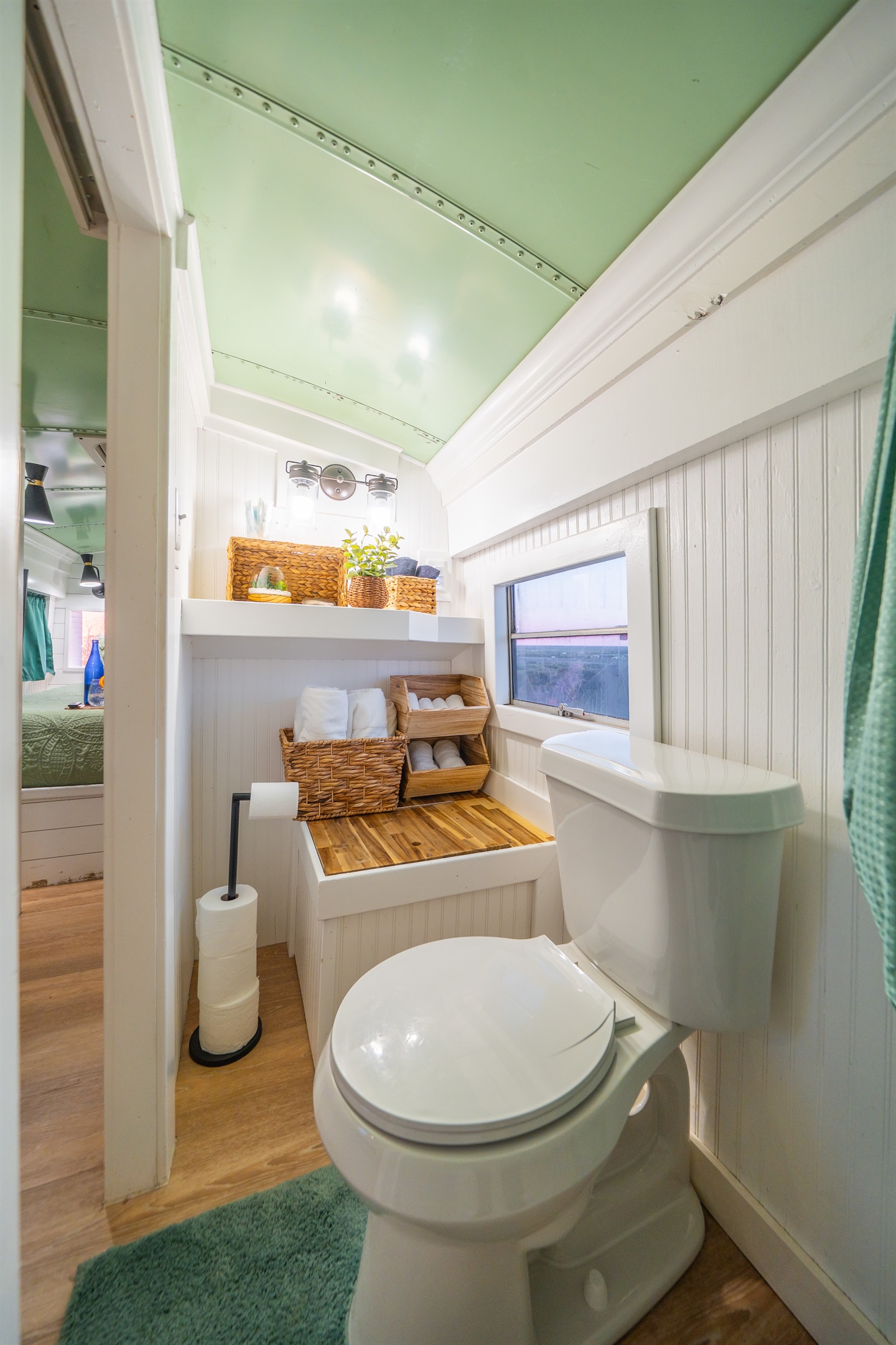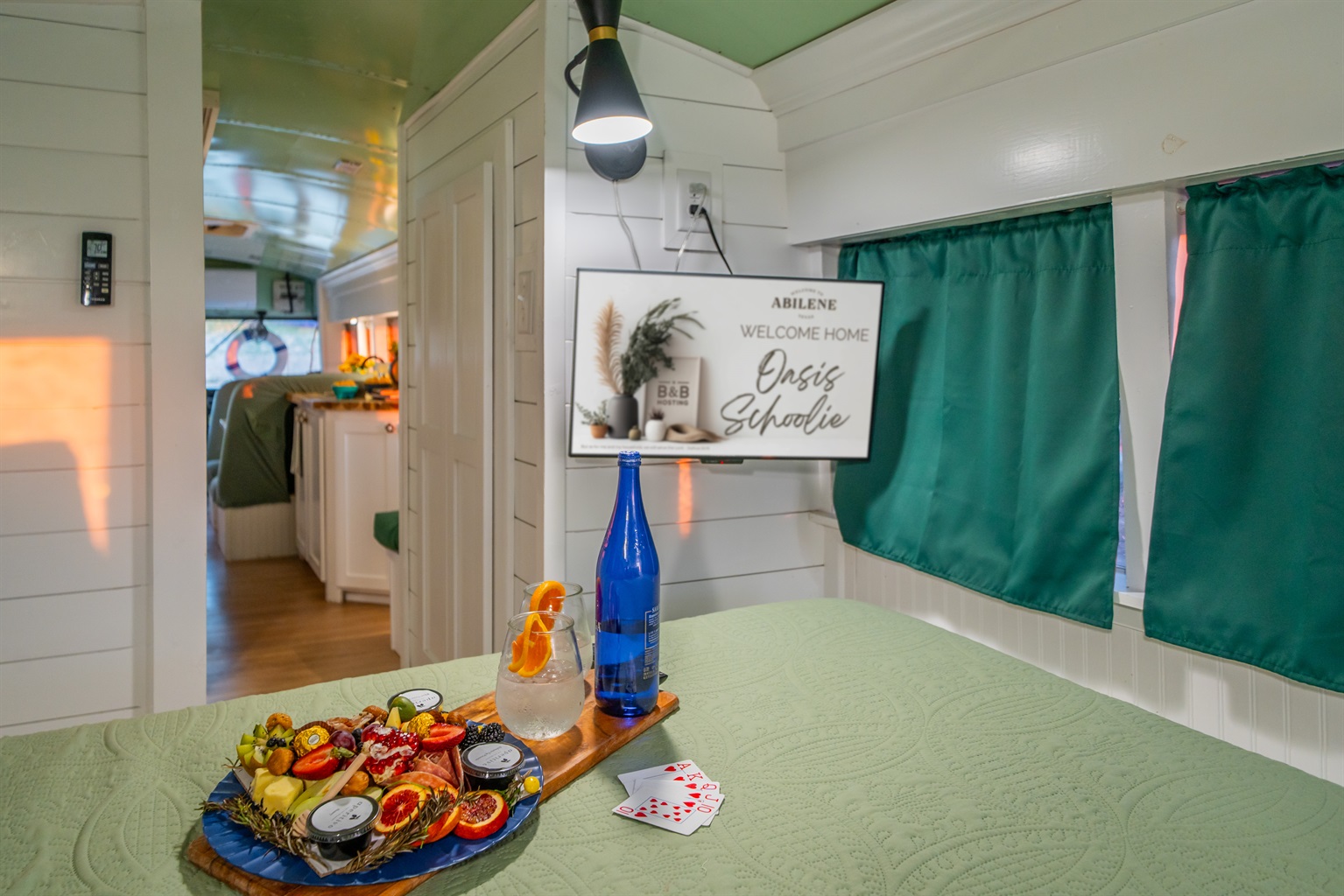We converted an old school bus into a tiny home that packs a punch. King sized bed, mini kitchen, dining area, and bathroom with shower. Don’t let the small size fool you, it is cozy and comfortable!