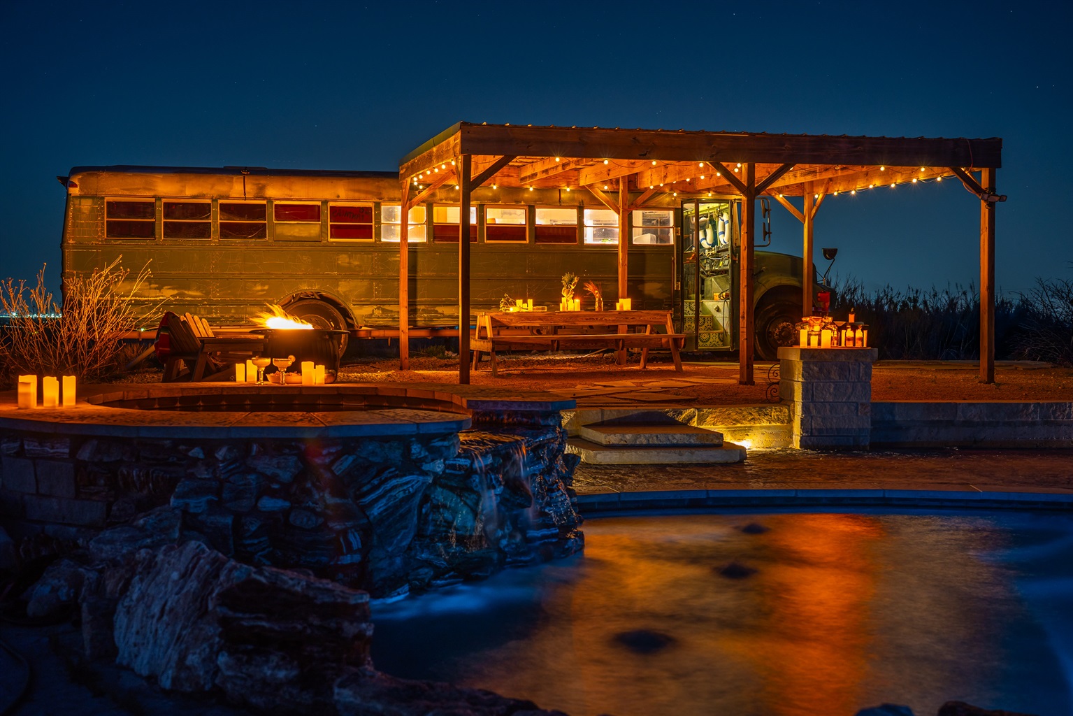 1 Bedroom • 1 Bathroom 1 Bath • Sleeps 1-2Heated pool and hot tub (see prices below)! Stay in our converted schoolie in your own private oasis, nestled in the hills. Romantic getaway for 2, complete with a private pool.
