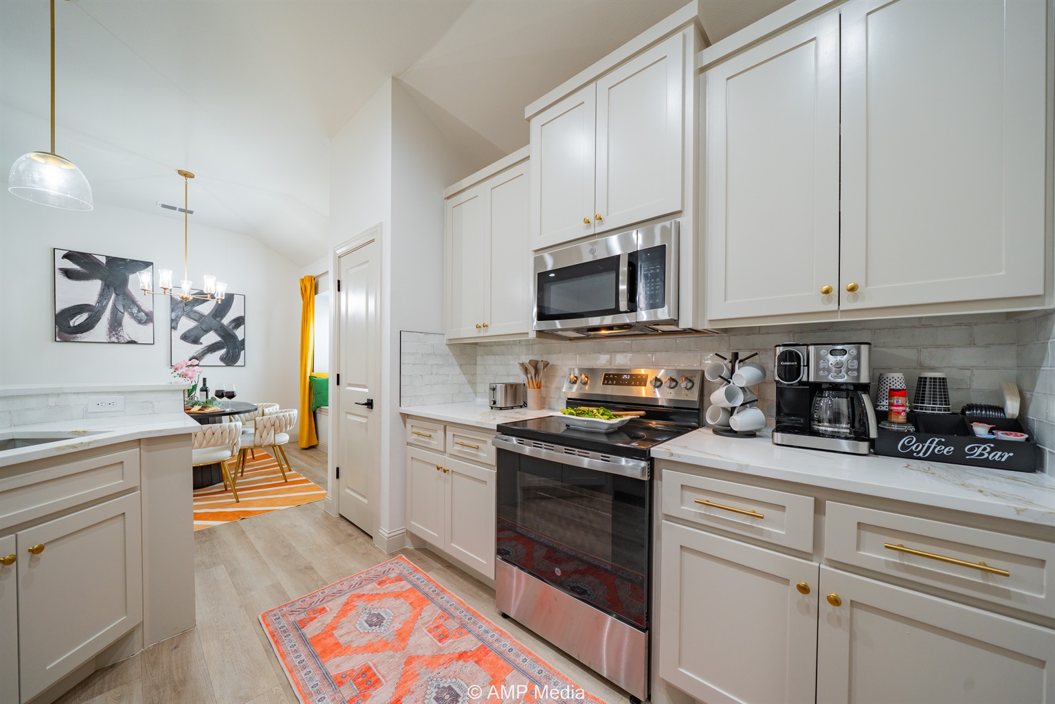 Prepare your favorite recipes in a fully-equipped kitchen stocked with everything from cookware to coffee makers. Whether you're whipping up breakfast before heading out or enjoying a home-cooked dinner, you'll find the space both functional and inviting. The adjacent dining area provides the setting for memorable meals together.