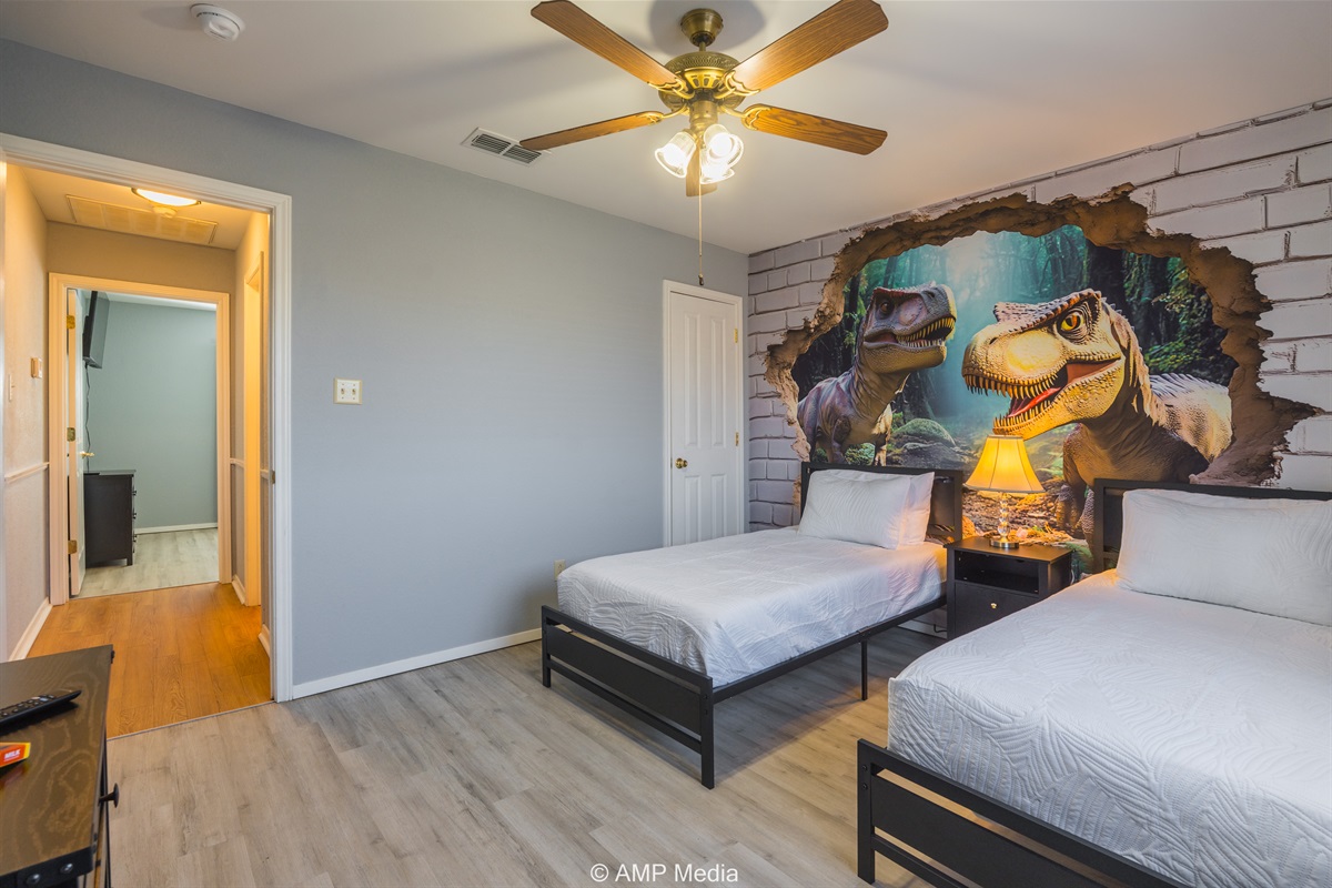 Step into adventure at Raptor Ridge, a uniquely themed 3-bedroom home in Abilene, Texas that brings prehistoric wonder to modern comfort. Perfect for families seeking an unforgettable stay, this explorer's paradise combines playful dinosaur decor with all the amenities you need for a relaxing getaway.