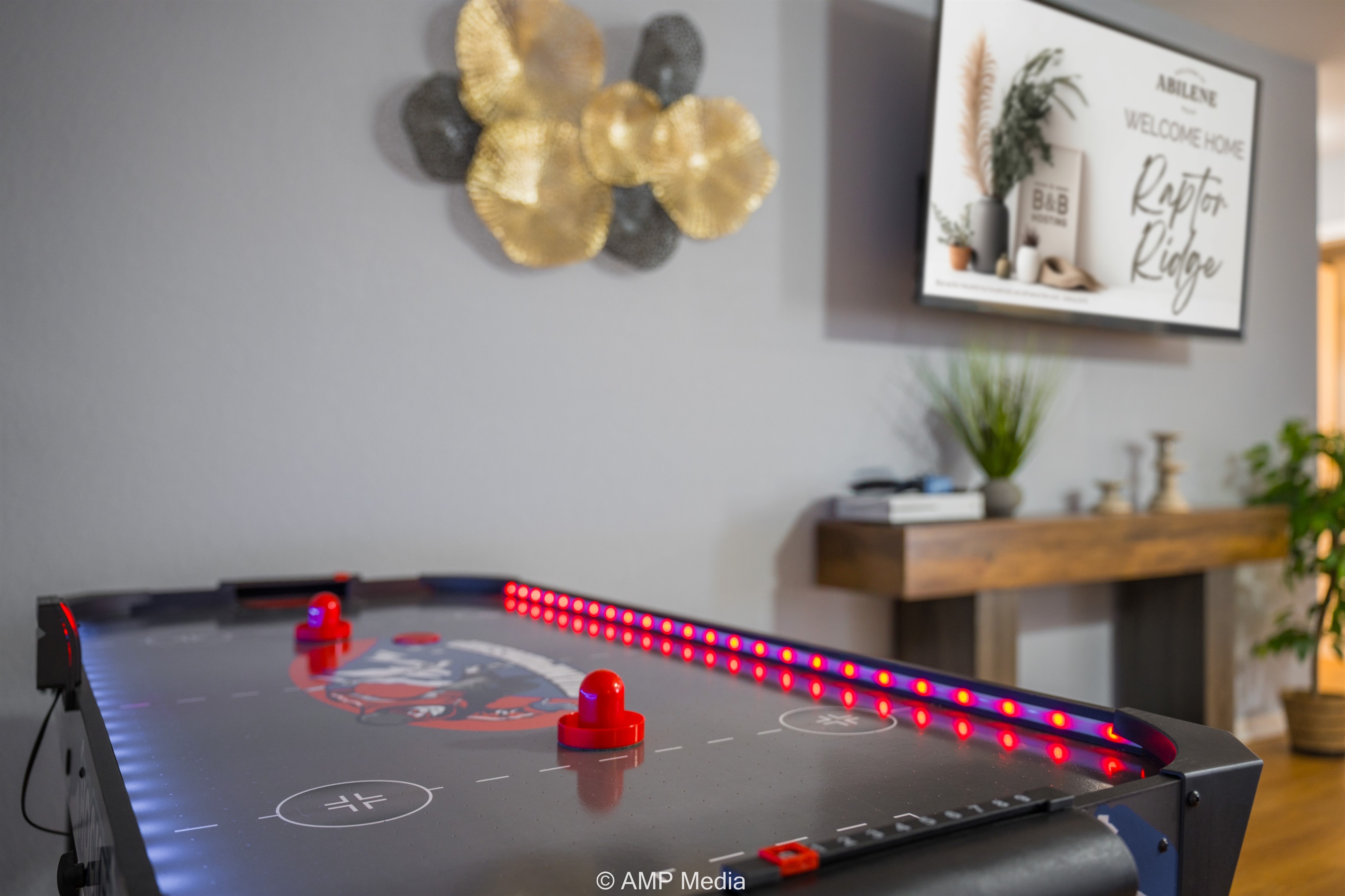 Air hockey table with LED lights
