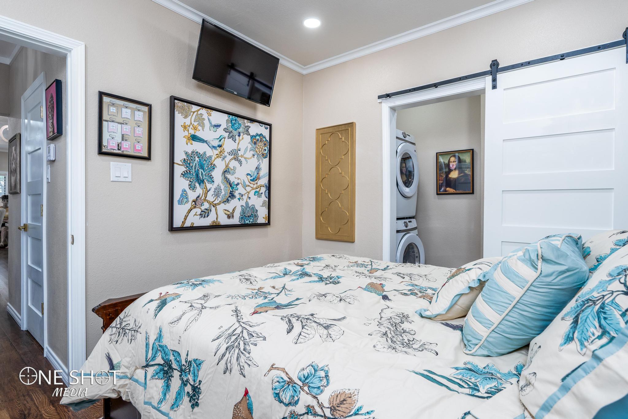 The second bedroom is accessed through the primary bedroom or can be accessed from the back door.