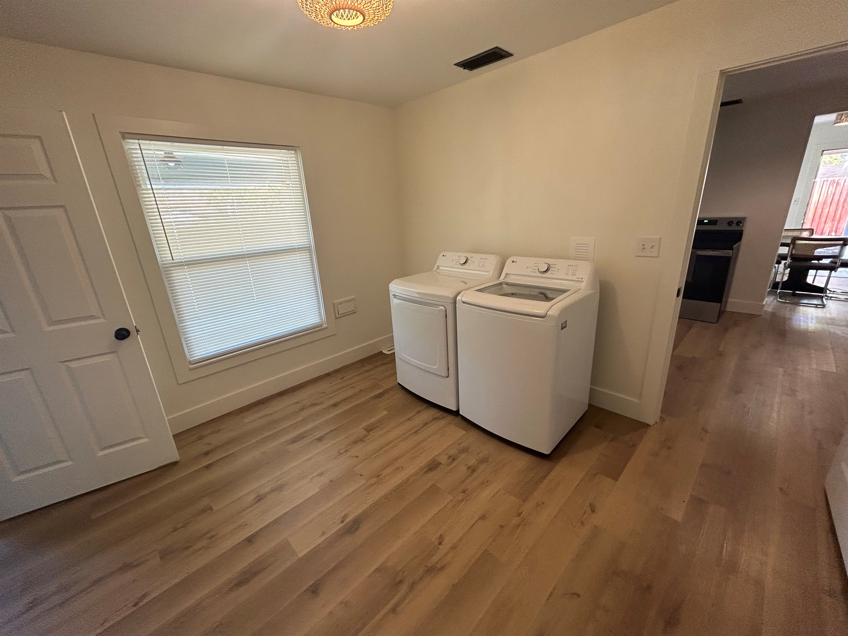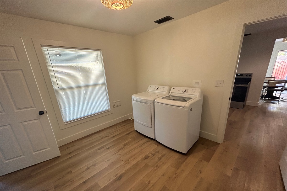 Convenient Laundry: Full-size washer and dryer in dedicated laundry room